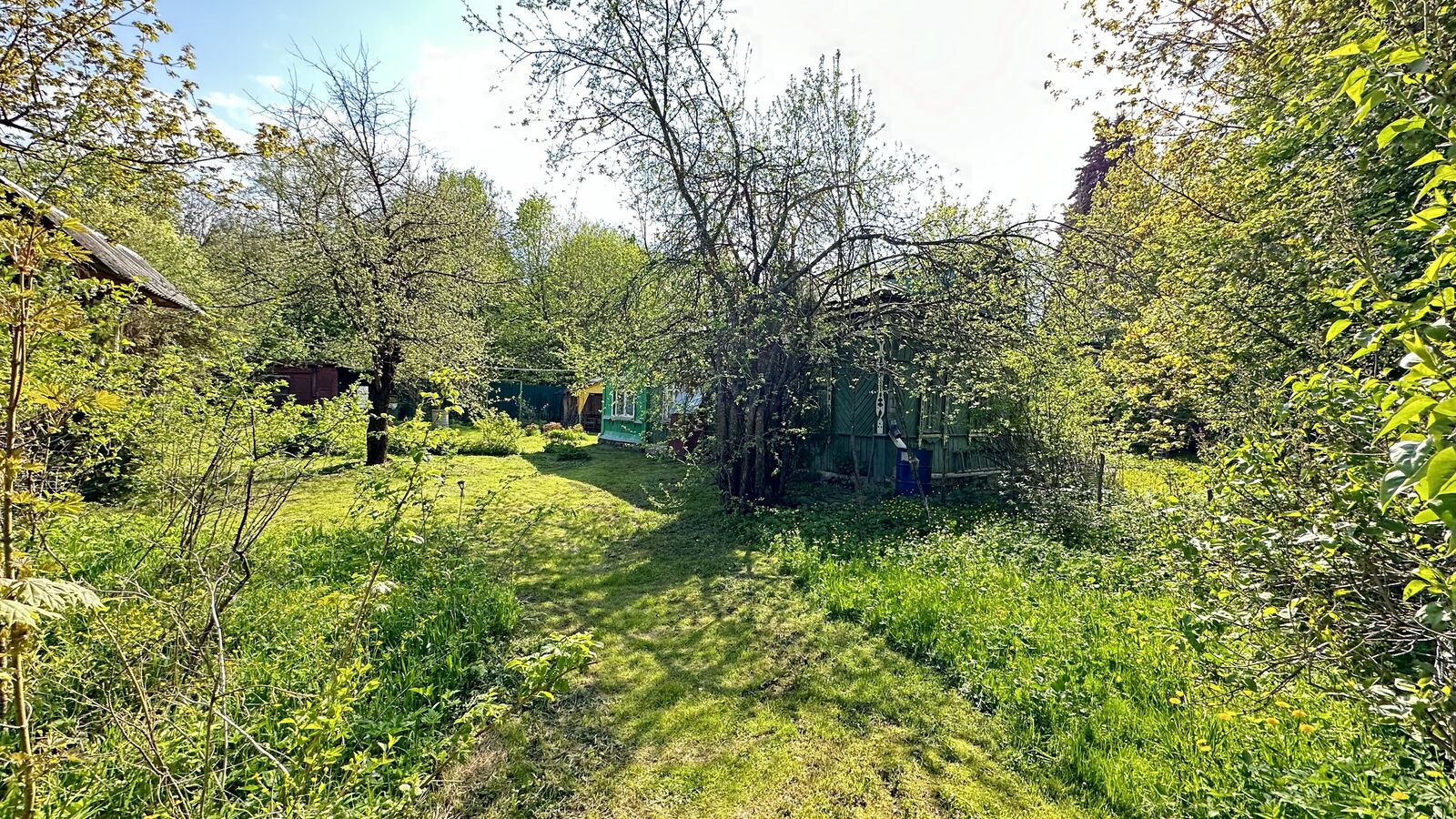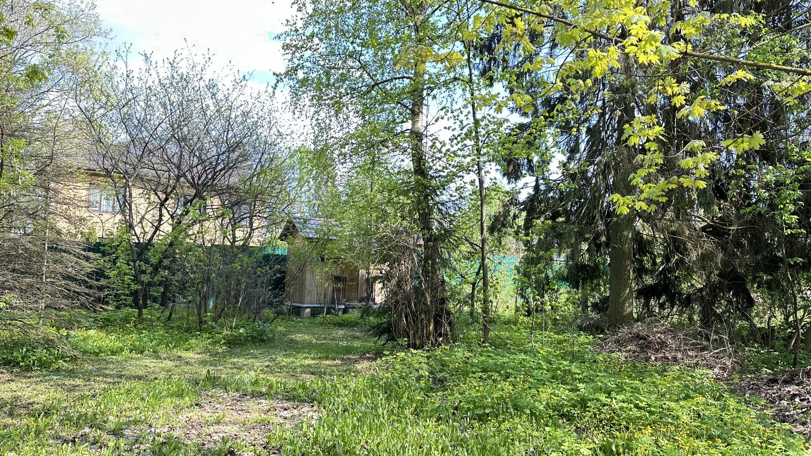 Участок отмежеван, практически правильной прямоугольной формы, размером 46х22 м, ИЖС, огорожен забором. Также на участке яблони и взрослые лесные деревья.