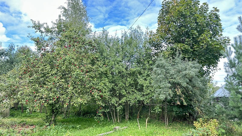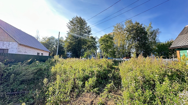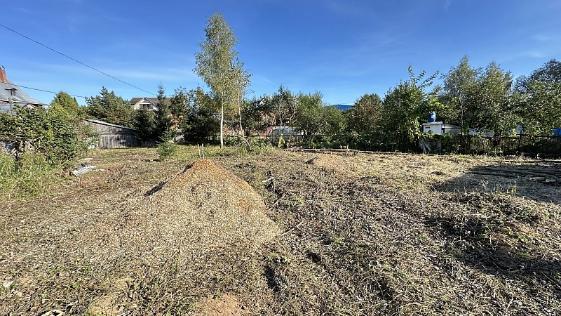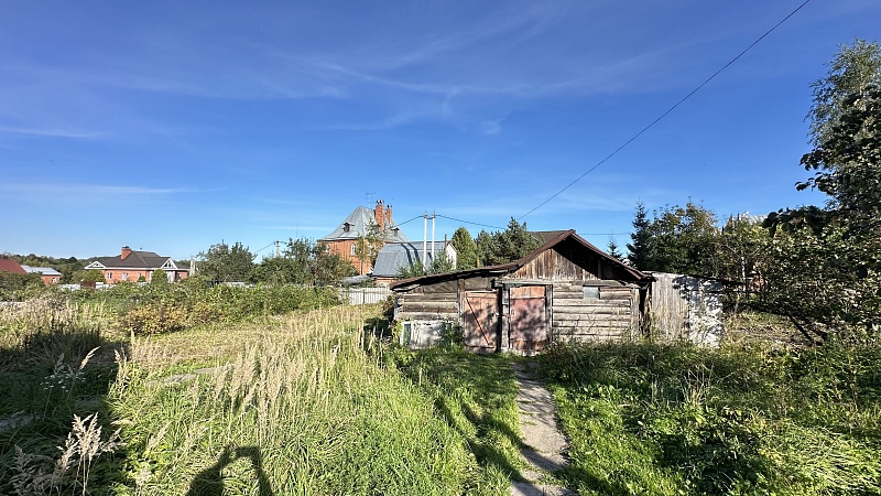 Участок с межеванием (его кадастровый номер 50:05:0000000:87377), для ИЖС. На участке береза, две ели и старый сарай.