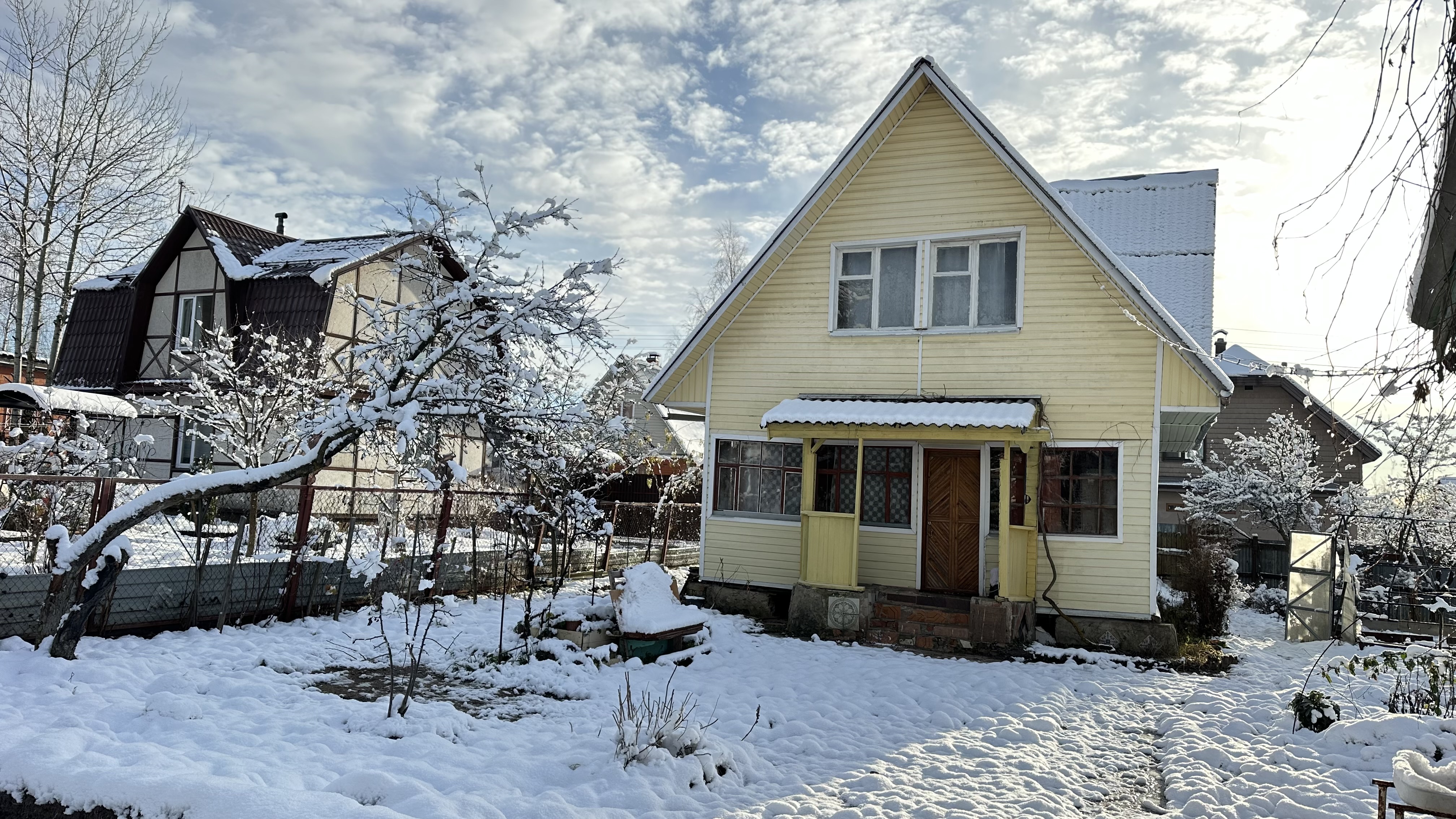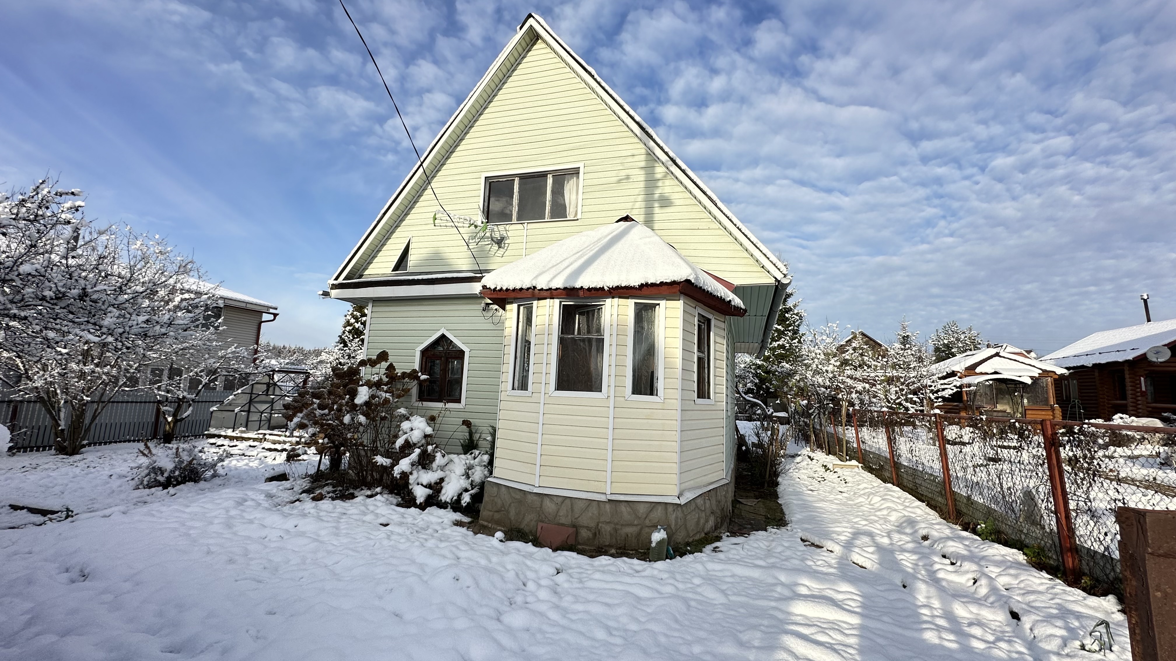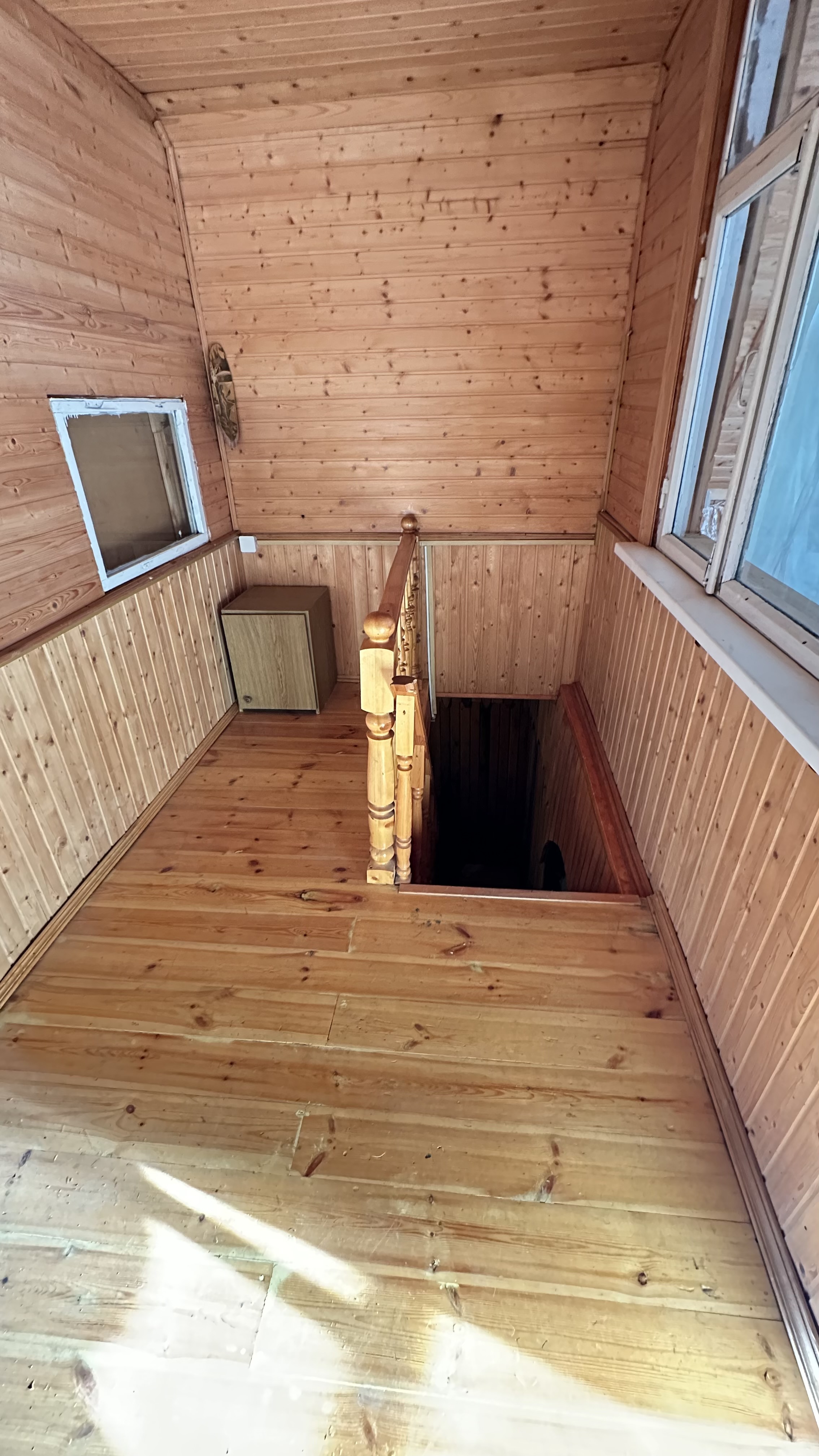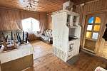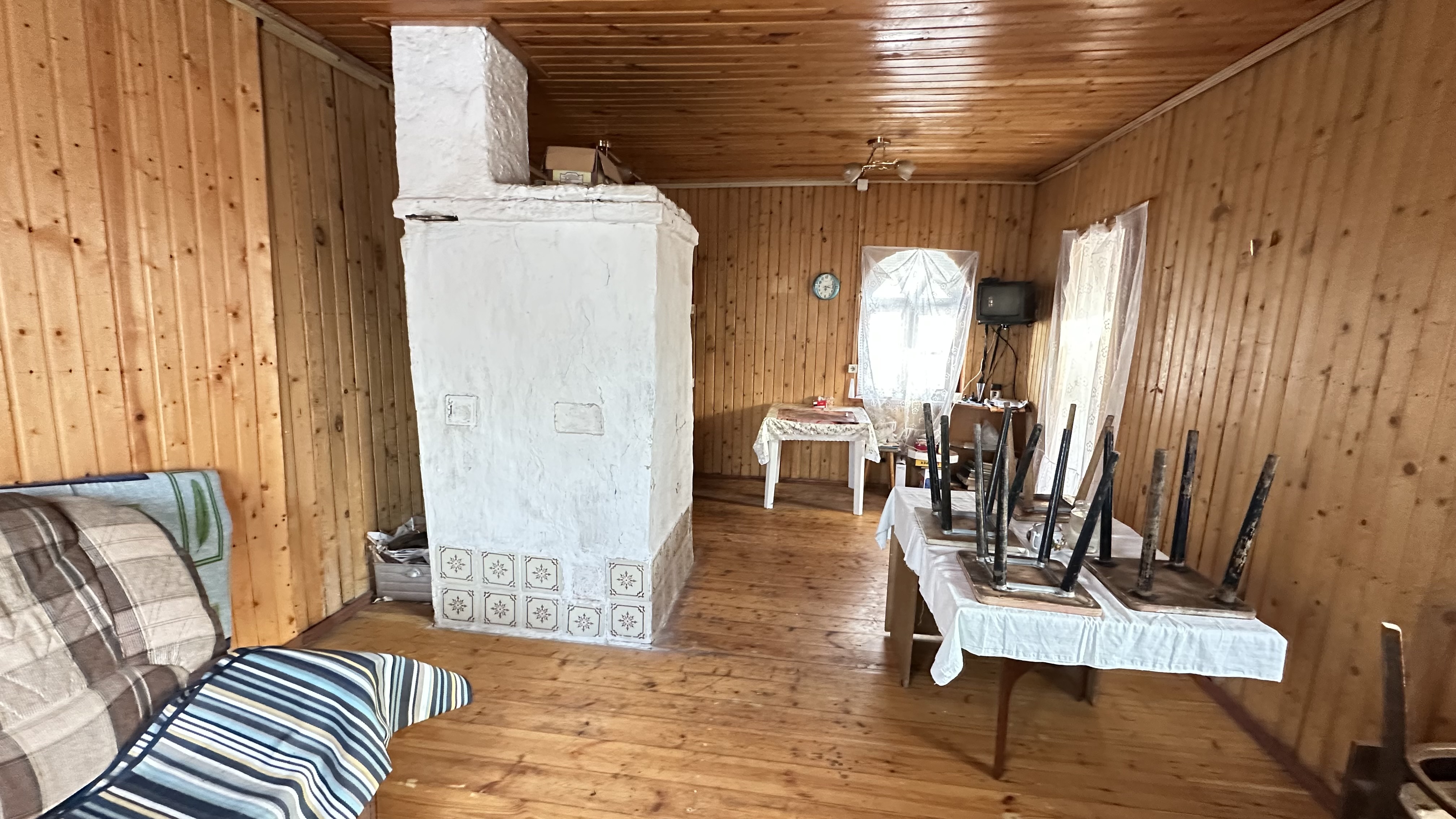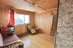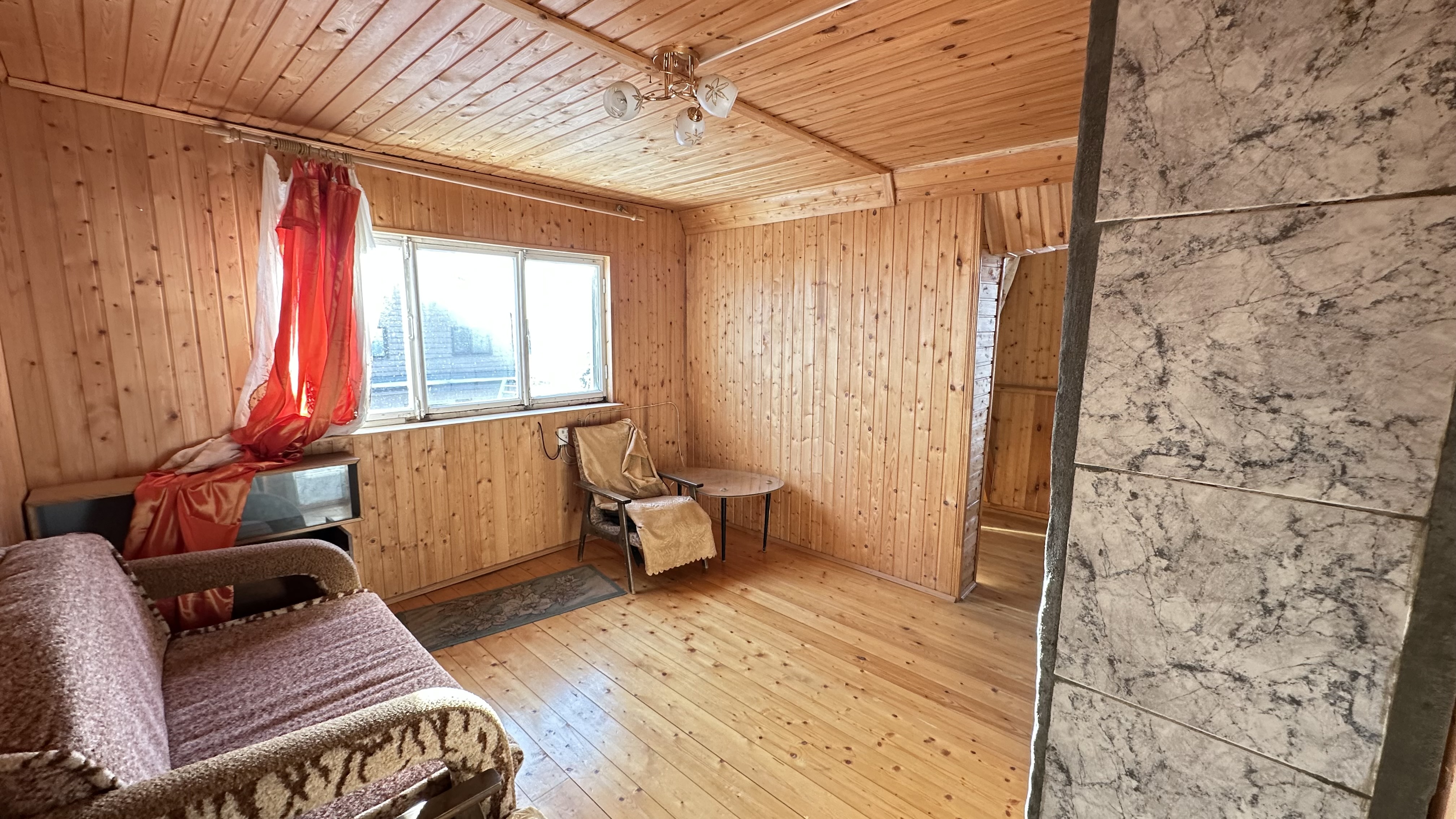 Дом 2006 года постройки, площадью 50 кв.м. (без террасы), бревенчатый, 2-х этажный, на ленточном фундаменте. По планировке: на 1-м этаже: терраса, холл с лестницей на 2-й этаж, большая комната с печкой; на мансарде: холл и две изолированные комнаты.