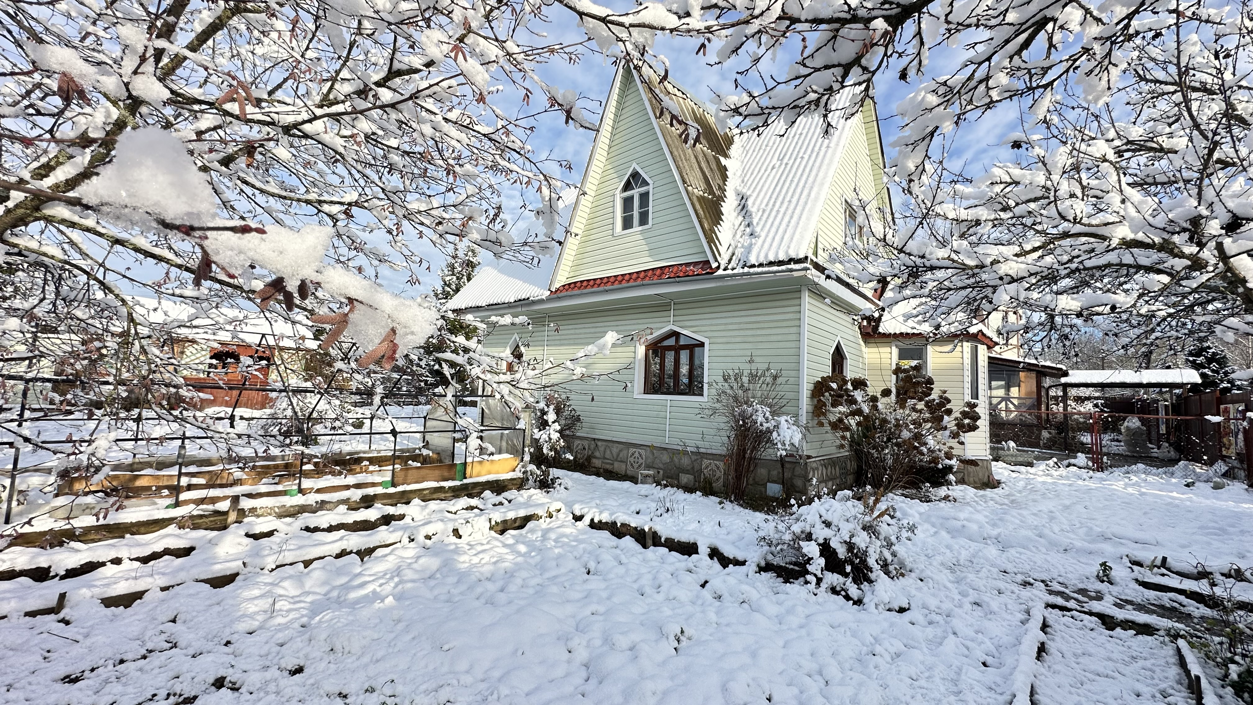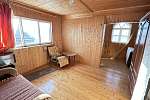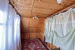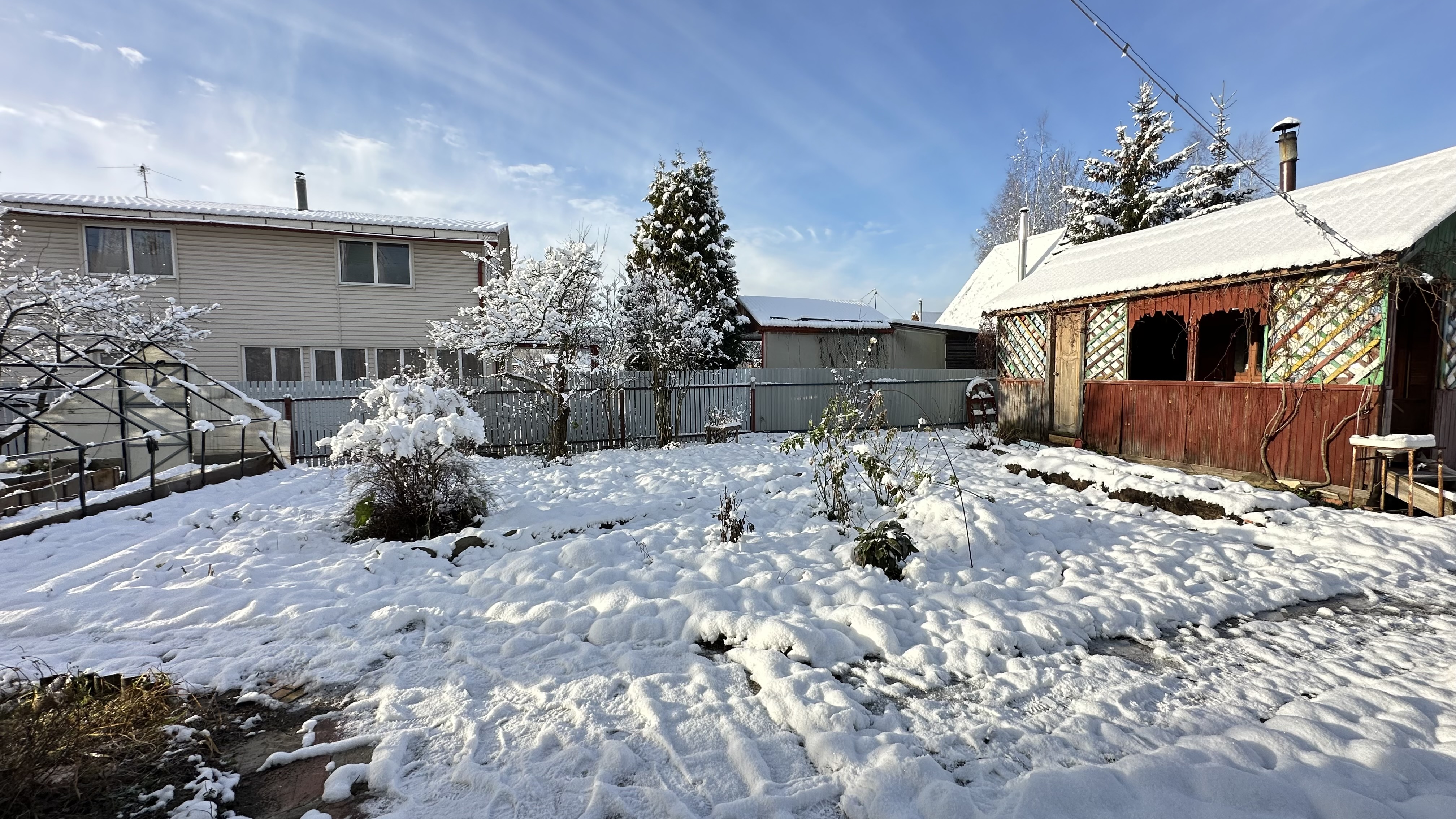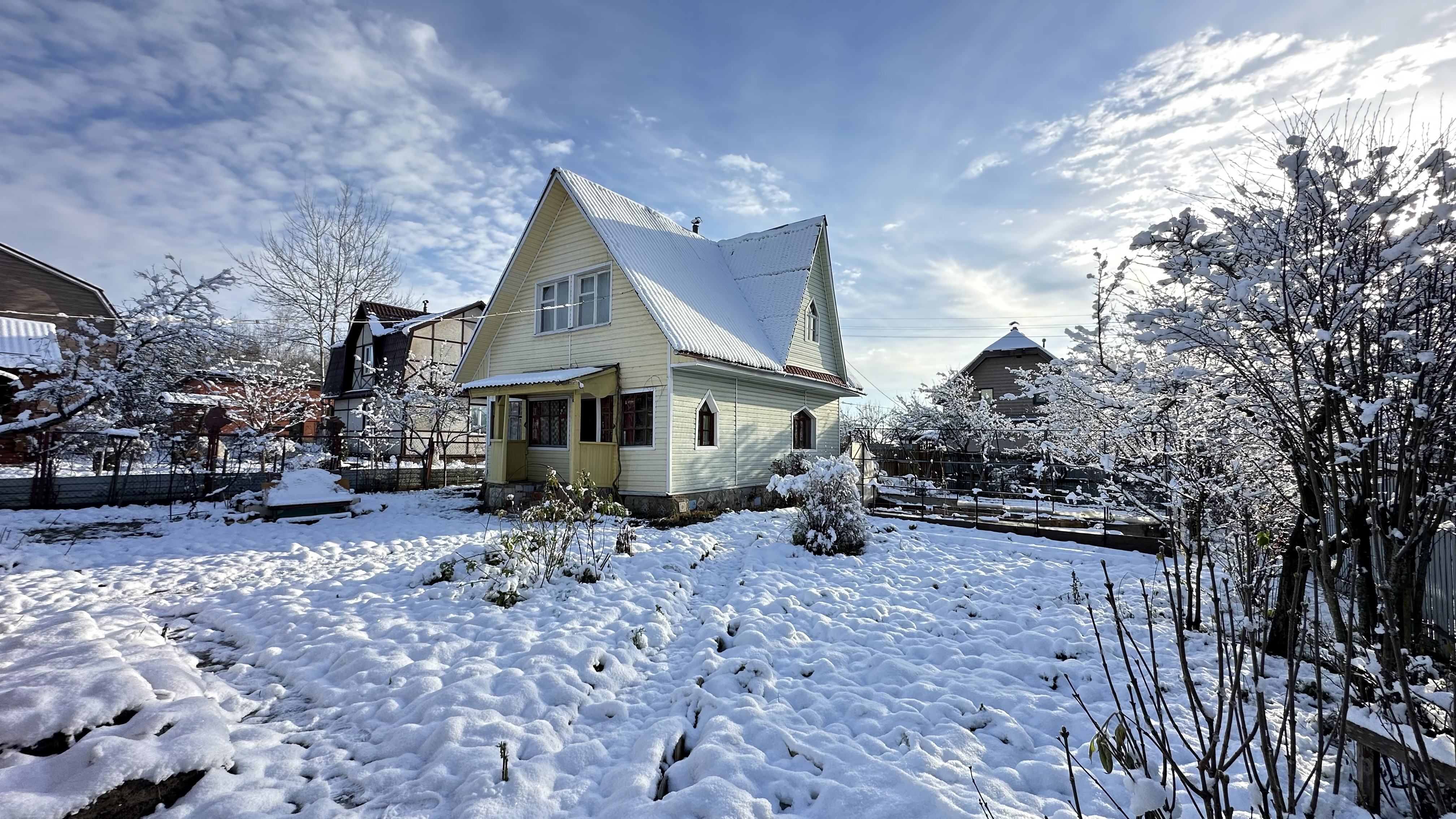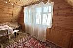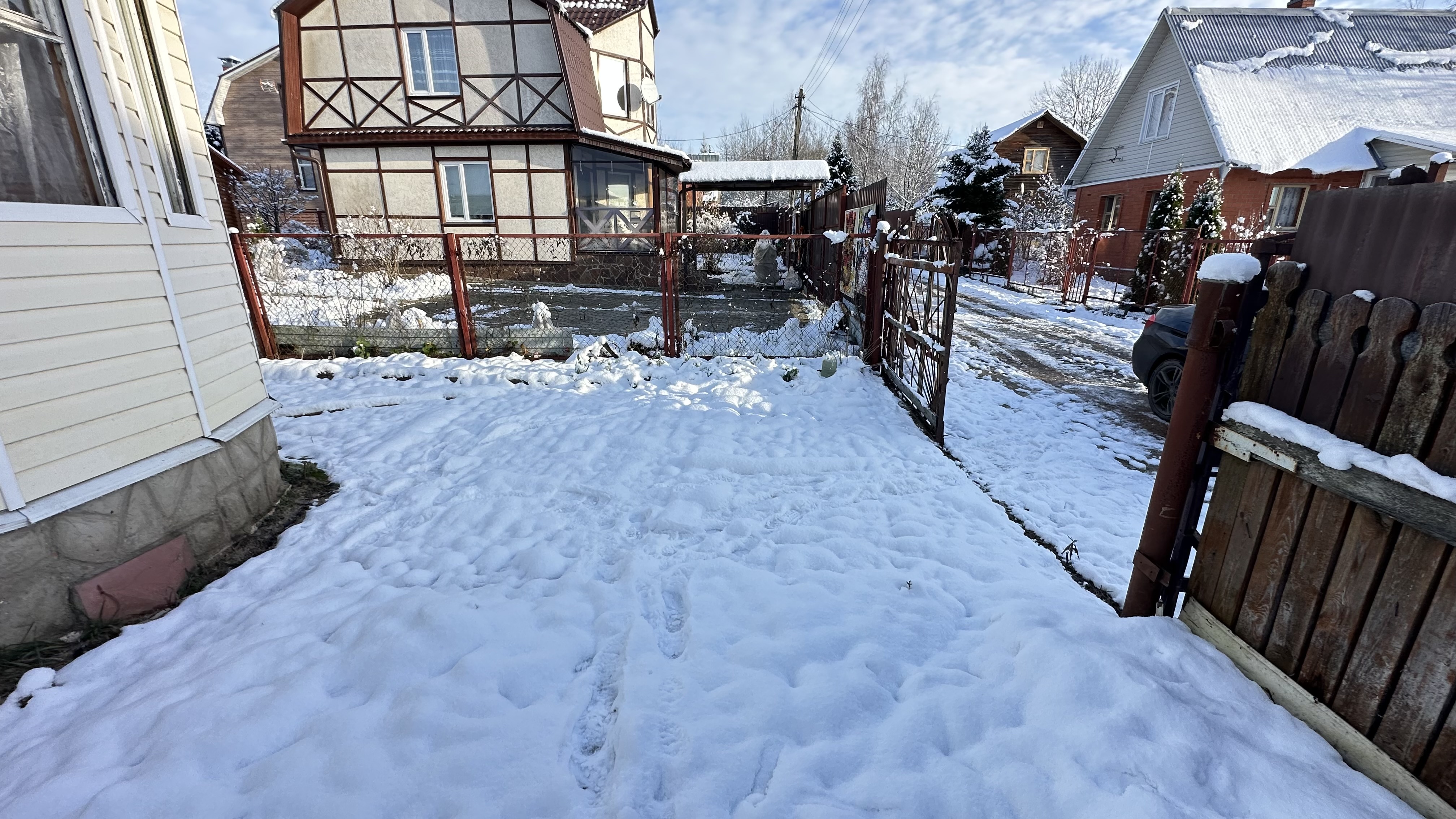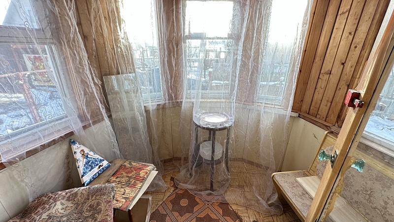 Дом 2006 года постройки, площадью 50 кв.м. (без террасы), бревенчатый, 2-х этажный, на ленточном фундаменте. По планировке: на 1-м этаже: терраса, холл с лестницей на 2-й этаж, большая комната с печкой; на мансарде: холл и две изолированные комнаты.