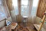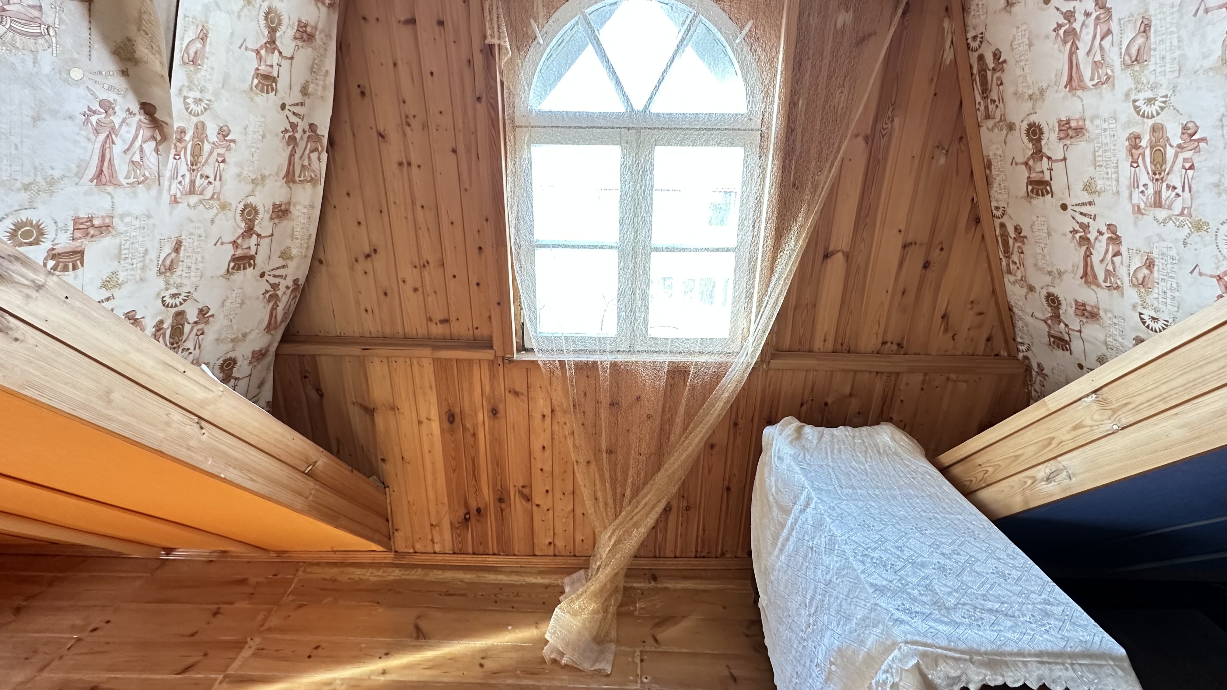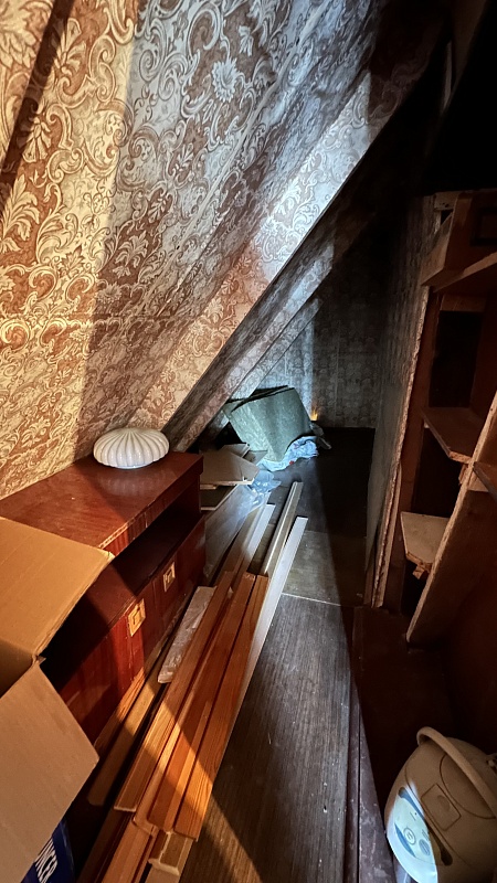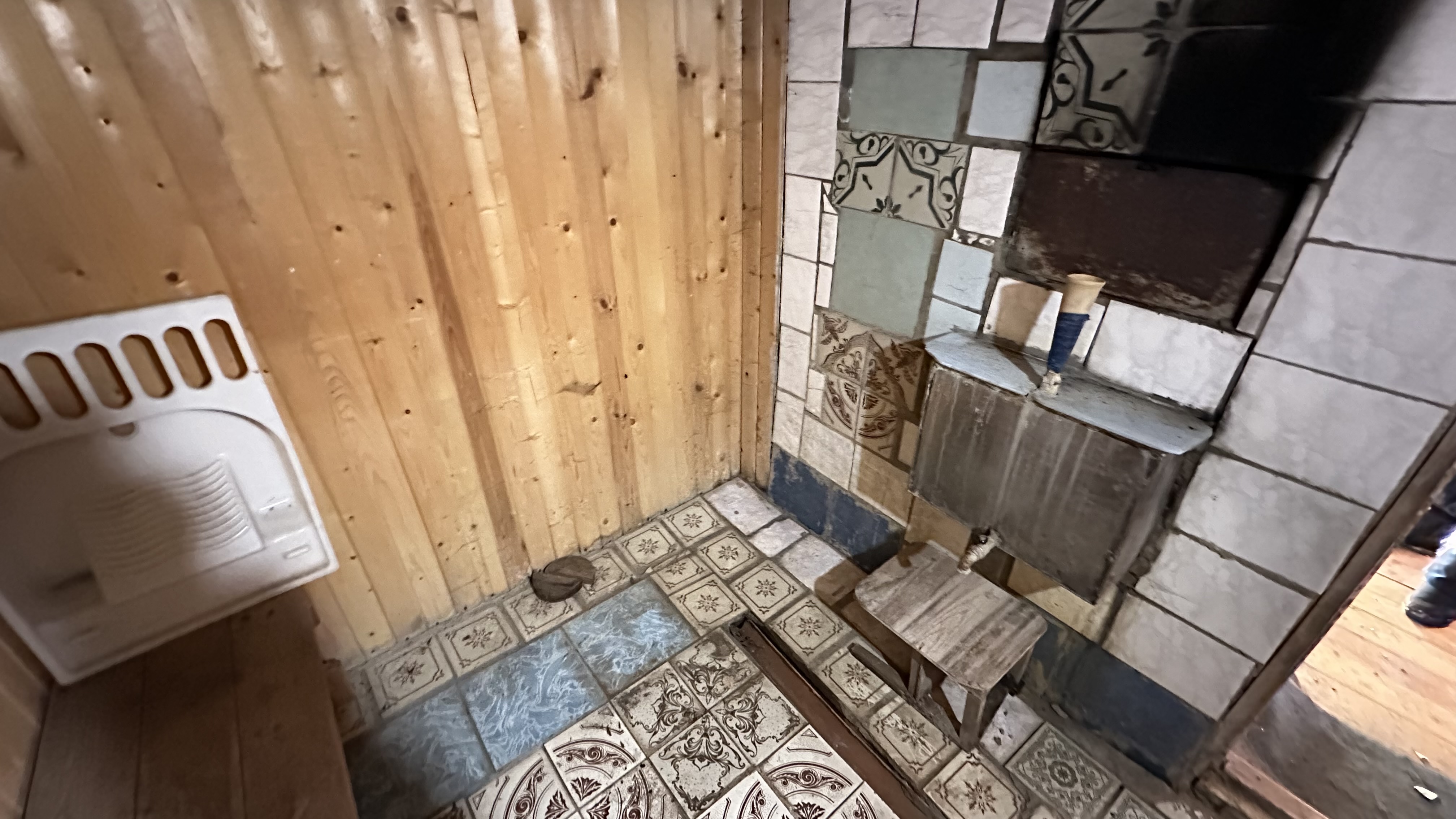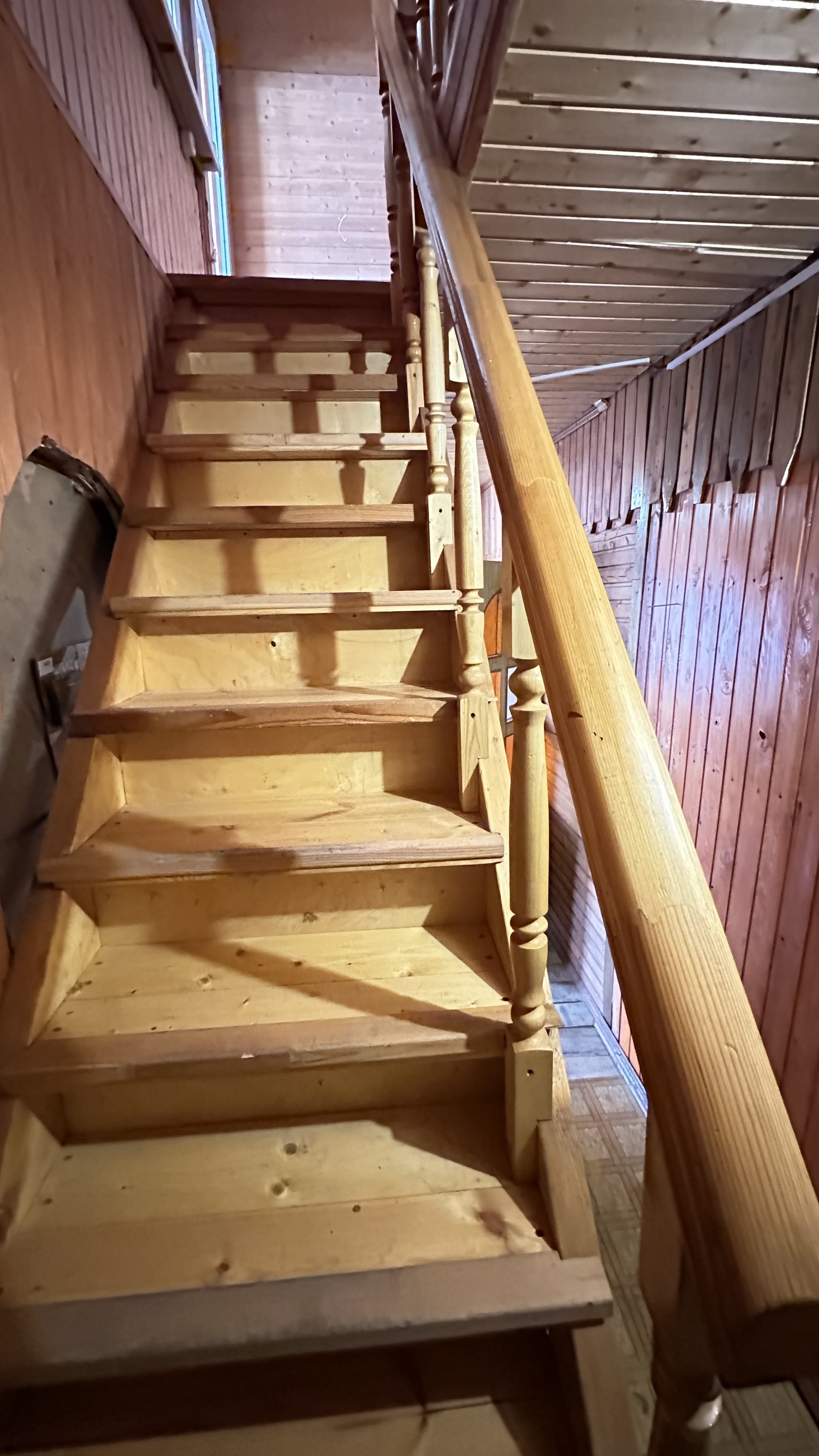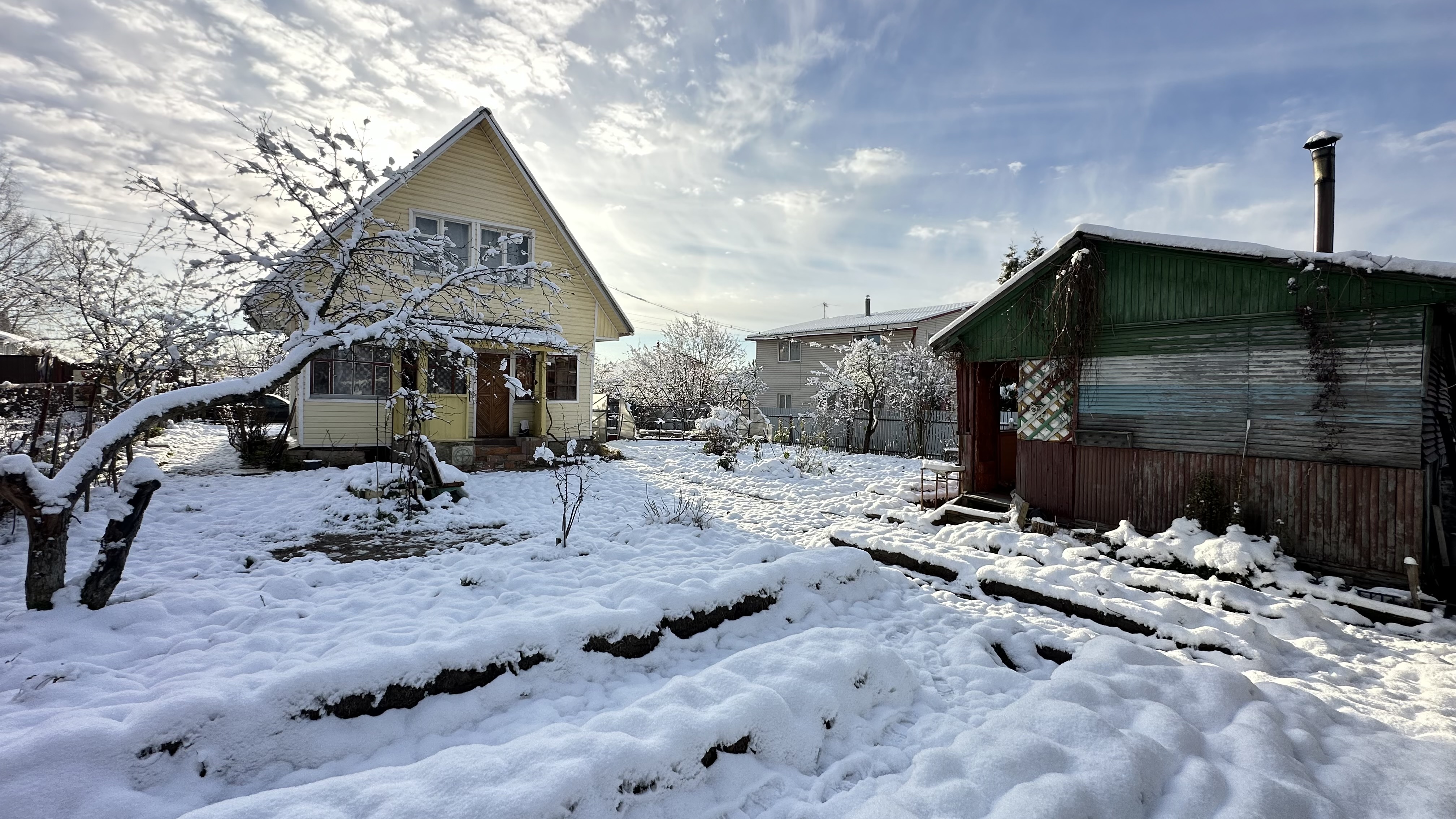 Дом 2006 года постройки, площадью 50 кв.м. (без террасы), бревенчатый, 2-х этажный, на ленточном фундаменте. По планировке: на 1-м этаже: терраса, холл с лестницей на 2-й этаж, большая комната с печкой; на мансарде: холл и две изолированные комнаты.