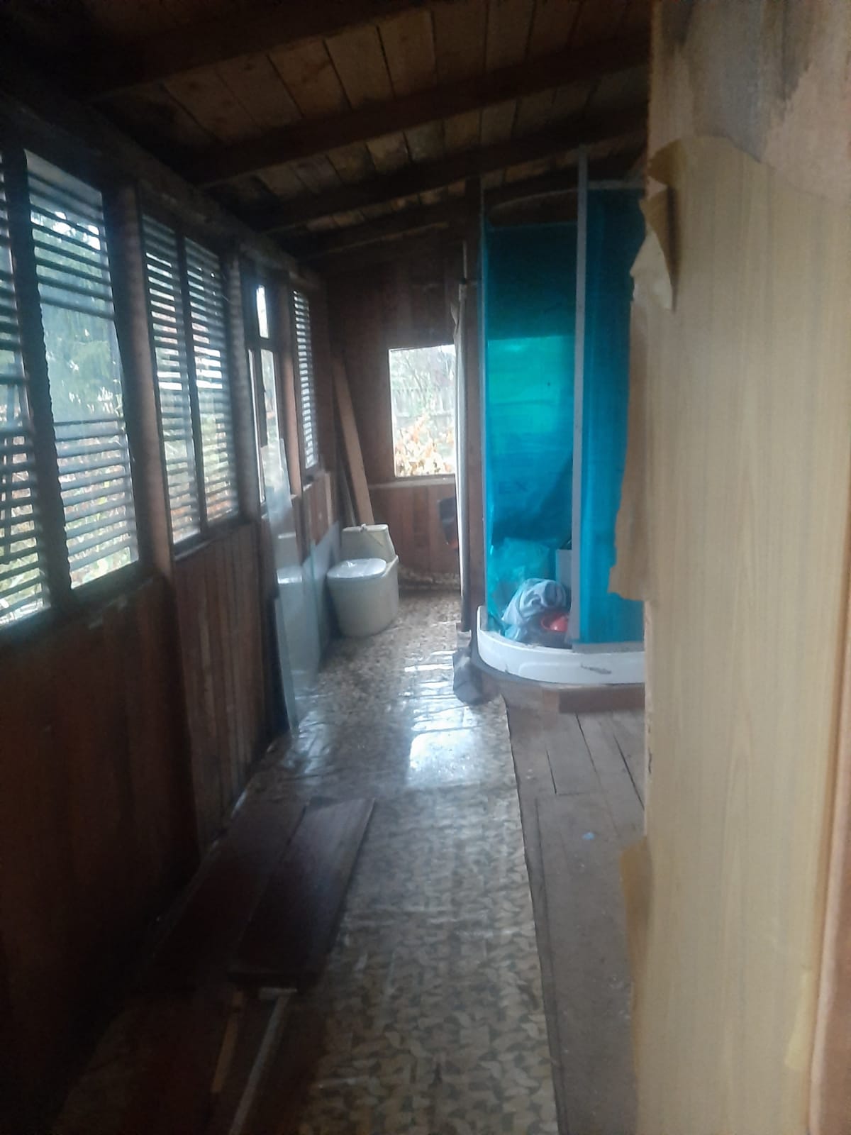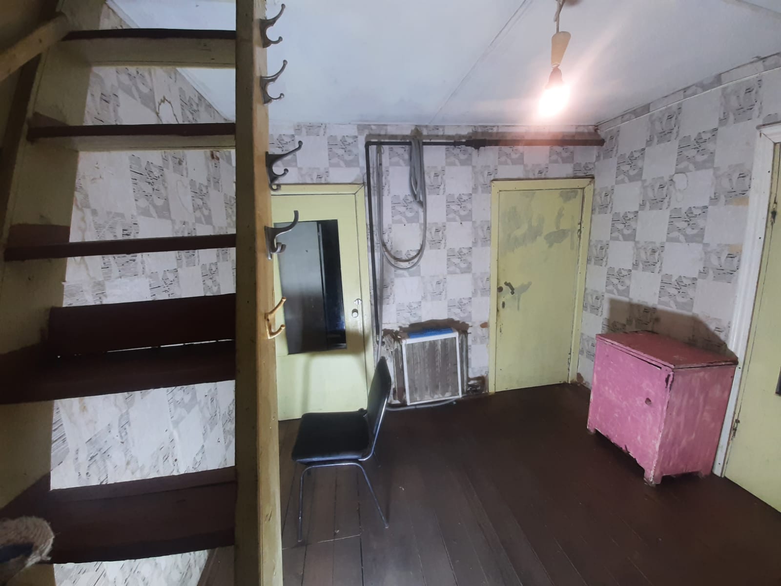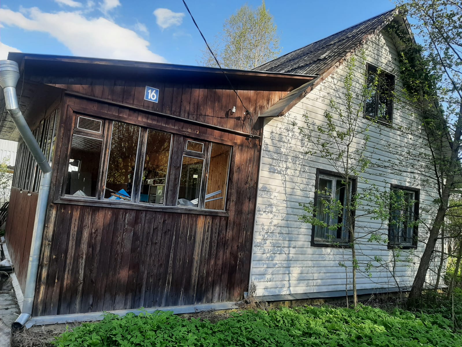 Дом деревянный, щитовой на ленточном фундаменте. Отопление разведено по 1 этажу. Требует небольших вложений. B доме на 1-м этаже: веранда, прихожая, кухня, две комнаты, на 2-м этаже: комната. ГАЗ в доме. Электричество заведено, летний водопровод на участке и заведен в дом.