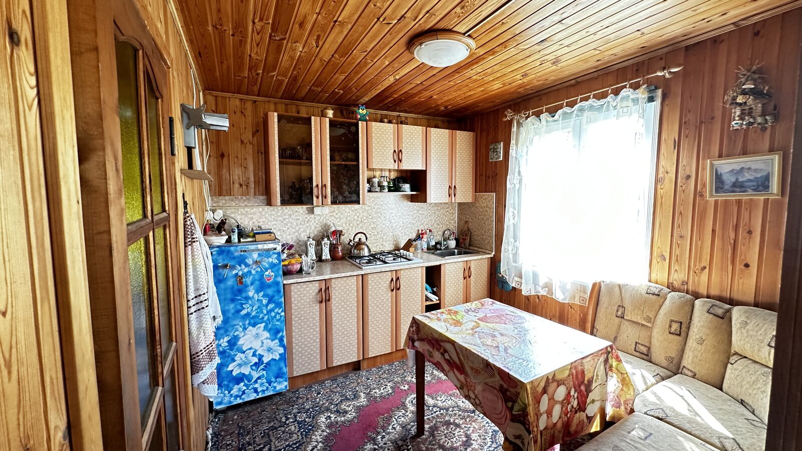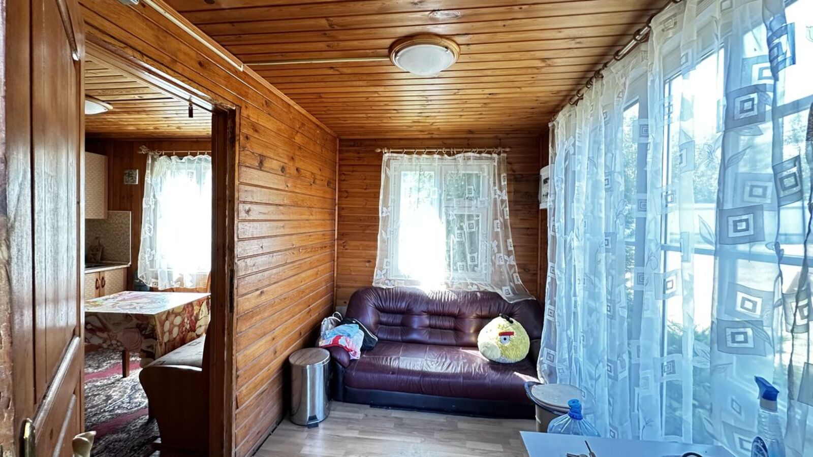 Планировка: веранда, кухня, комната.