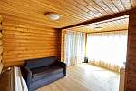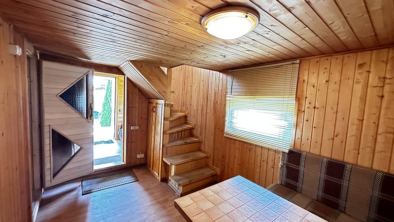 - Одноэтажный гостевой дом. Дом деревянный, построен на свайно-винтовом фундаменте, утеплен, внутри обшит вагонкой, кровля-металлочерепица.