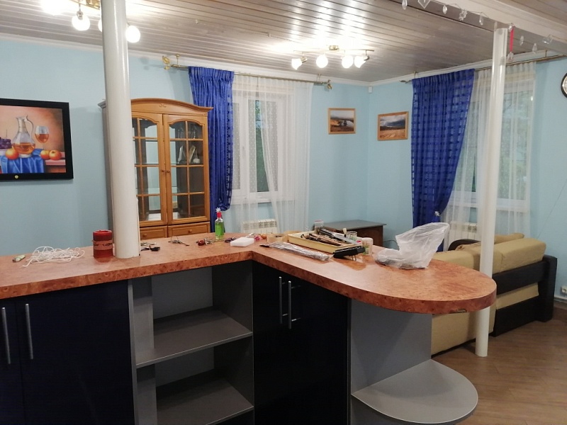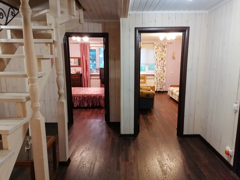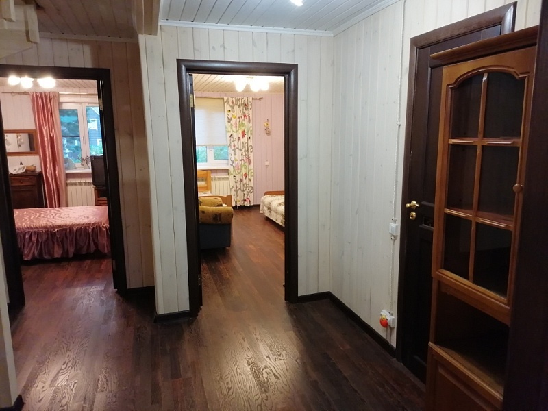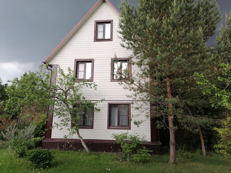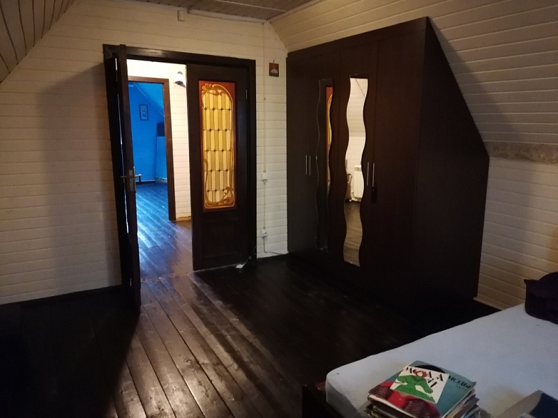 55 км от MКАД по Ярoслaвскoму шоcсе, Сеpгиeвo-Пocaдский рaйoн, г.п. Хотьково, д. Жучки, СНТ МАЙ, продается жилой дом 162 кв.м., (жилое строение, назначение не жилое) с баней 45 кв.м., электрическая печь, зона барбекю с беседкой, бассейн, участок 1377 кв.м., (сельхозназначения, для садоводства) с межеванием, состоит из 2 участков. Дом из бруса, на бетонной плите, три этажа. Первый этаж, (теплый пол) прихожая, спальня, кухня-гостиная – 30.5 кв.м. и санузел. Второй этаж холл и три изолированные спальни: 19.8; 13 и 10.9 кв.м. и санузел. Третий этаж две изолированные спальни. Есть печь.