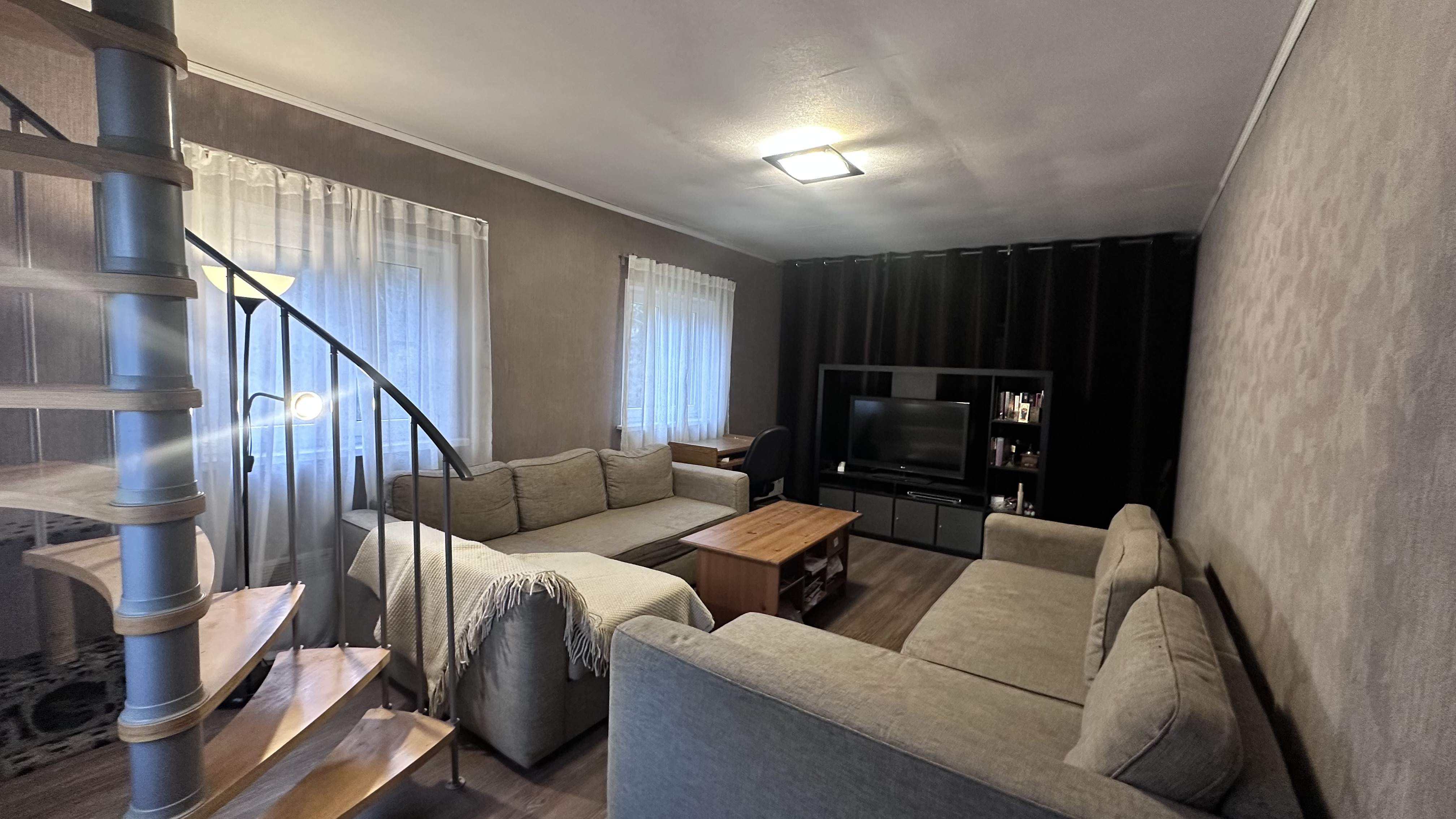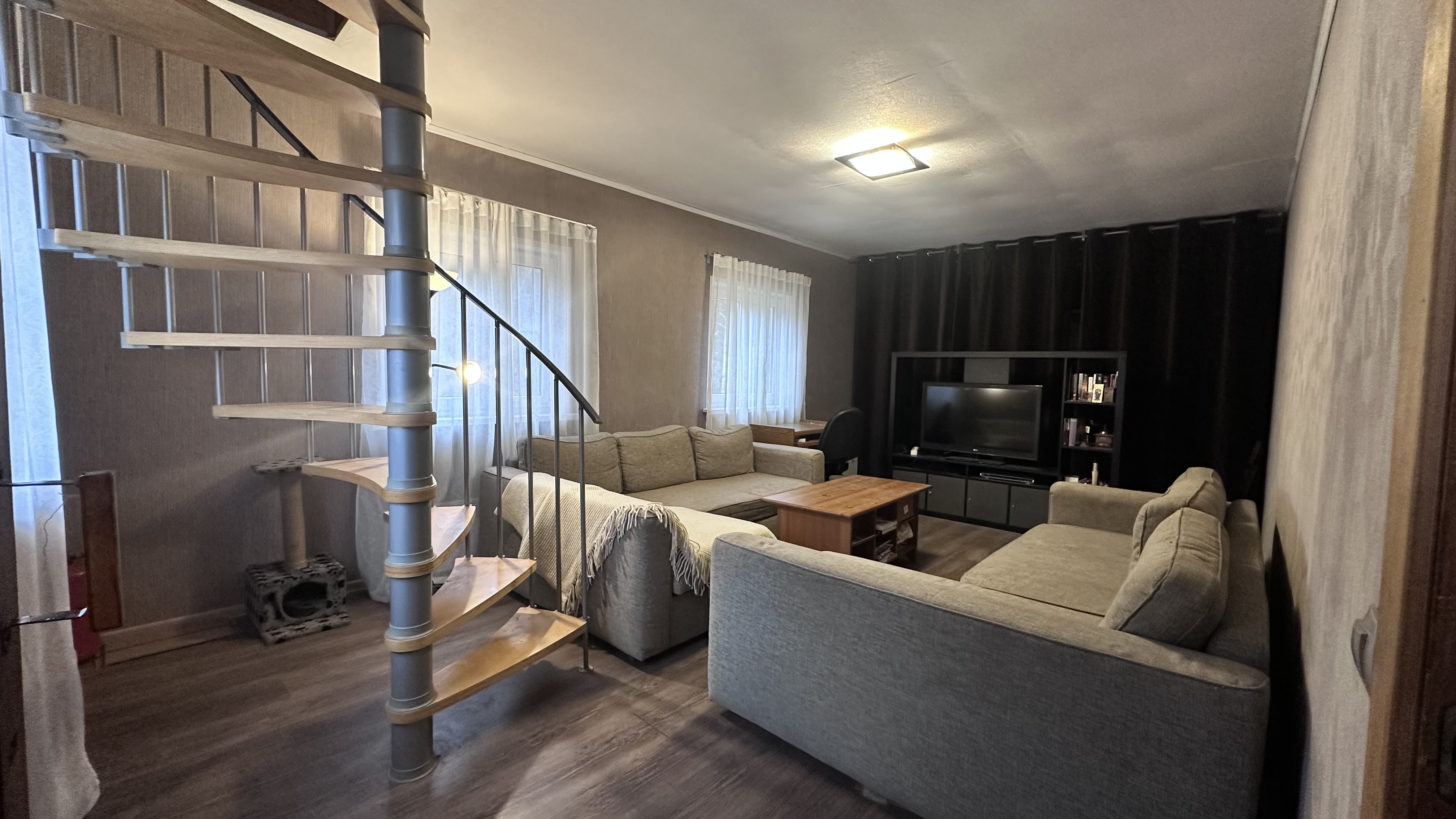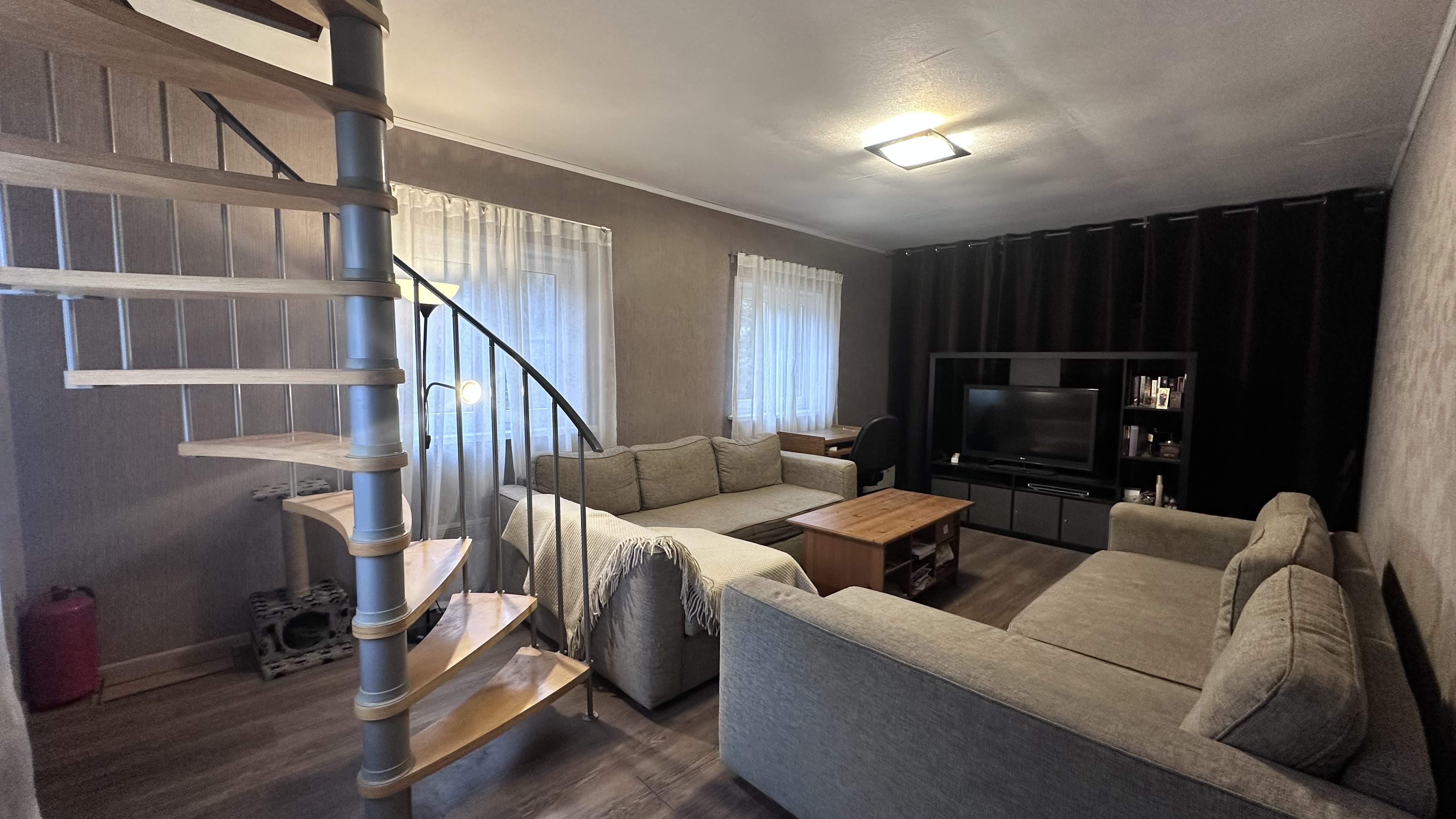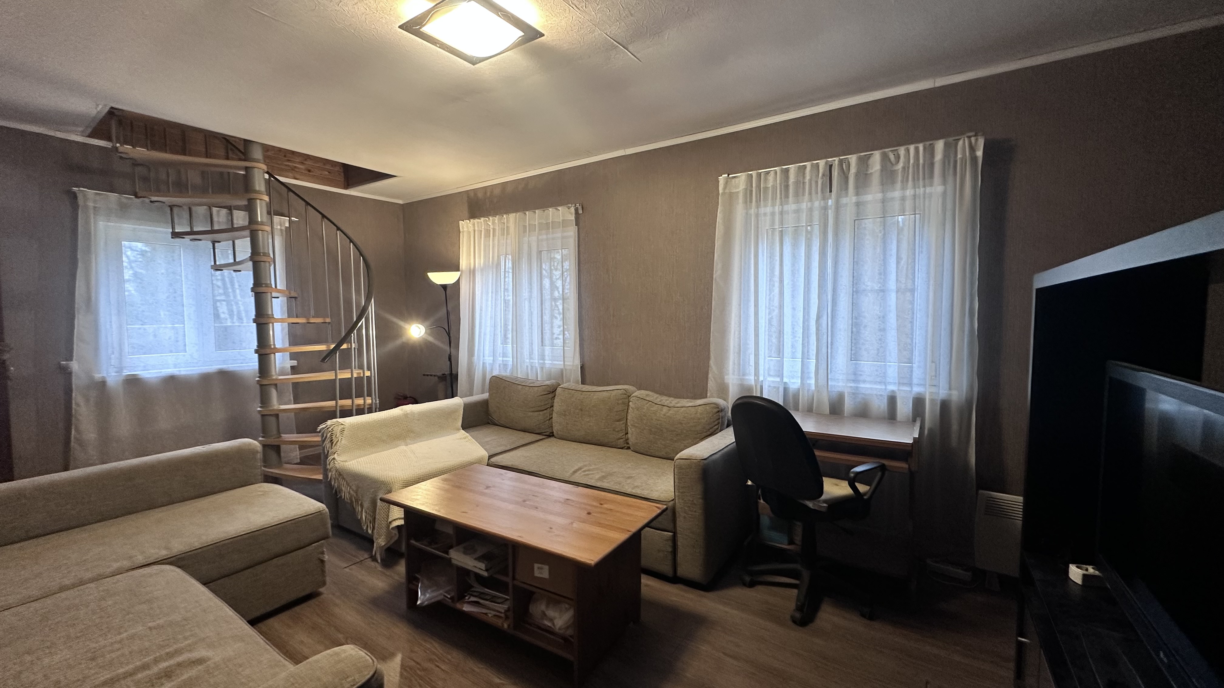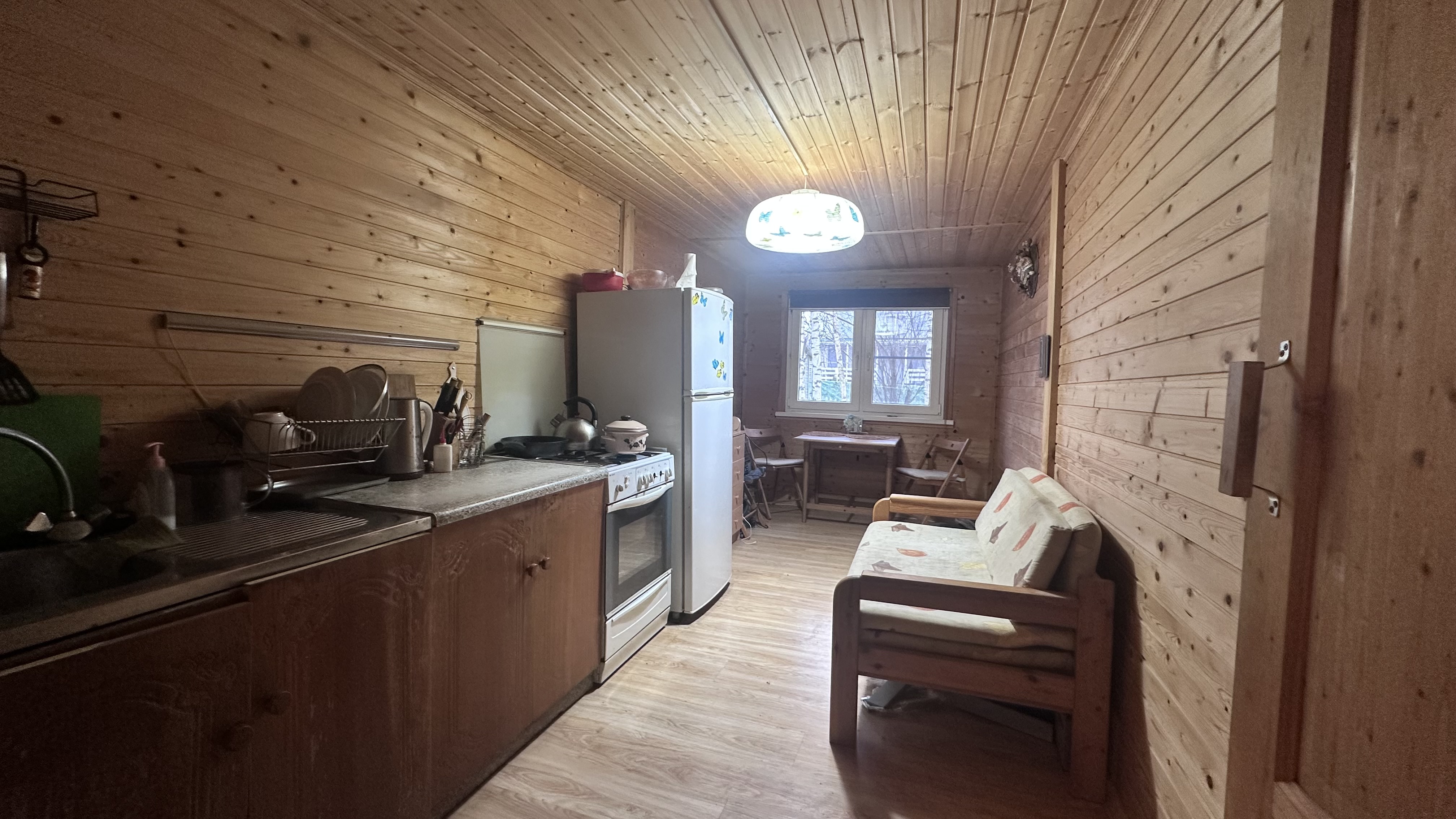 Коммуникации: свет-заведен и разведен по дому (8кВт-прямой договор с Мосэнерго), вода-летняя от СНТ(заведена в дом и душевую), газ-привозной в баллонах, септик-переливной, отопление - электрические конвекторы.