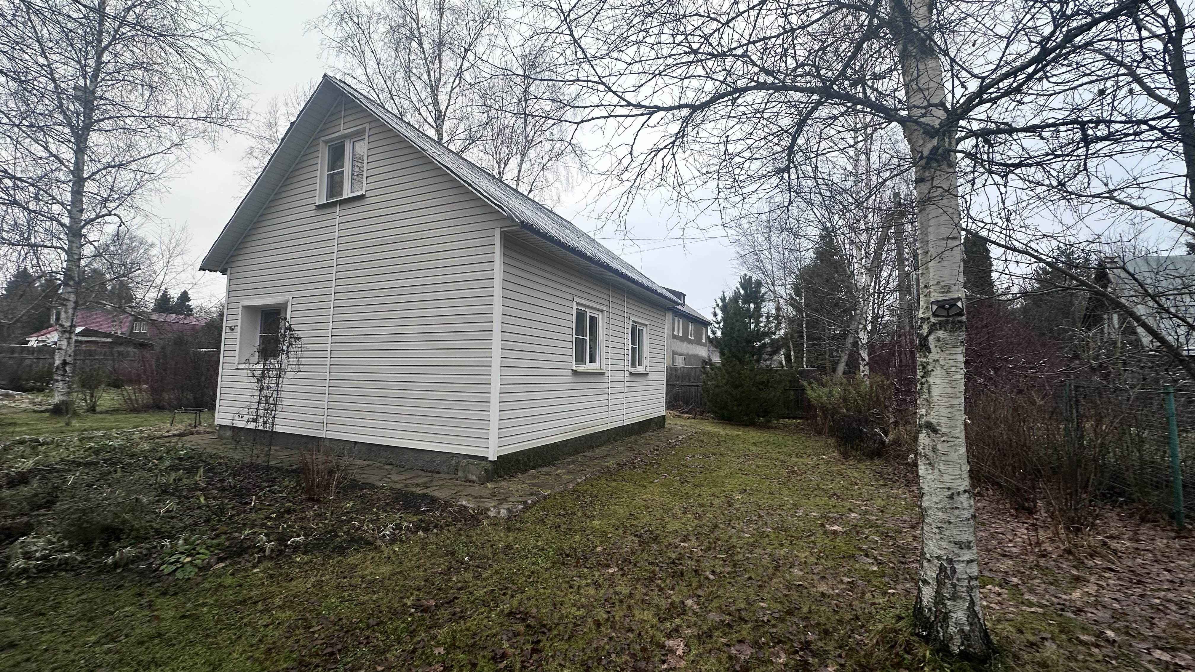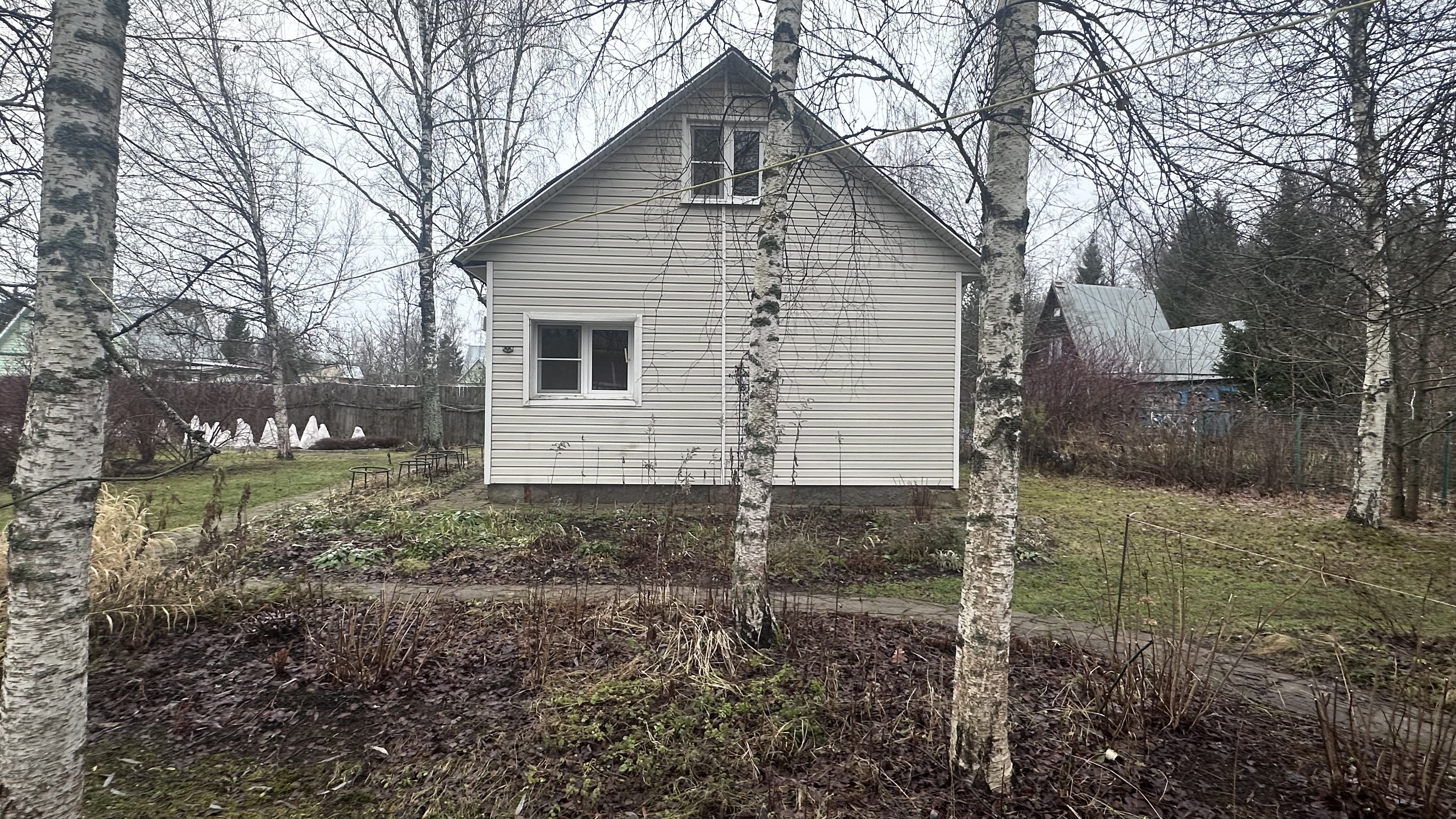 На участке 2-х этажная каркасная дача 2014 года постройки, на ленточном фундаменте. Дача утеплена, установлены пластиковые окна. Внутренняя отделка: зал- гипсокартон и поклеены обои все остальные помещения обшиты вагонкой, на полу ламинат, снаружи дача обшита сайдингом.