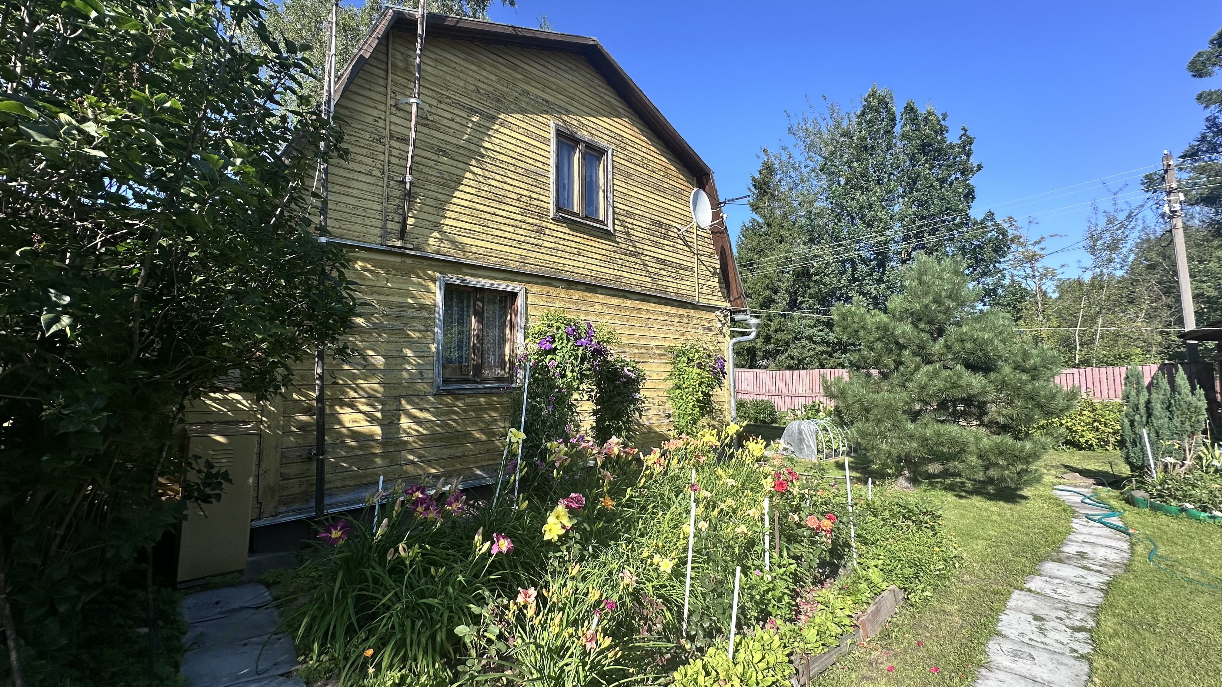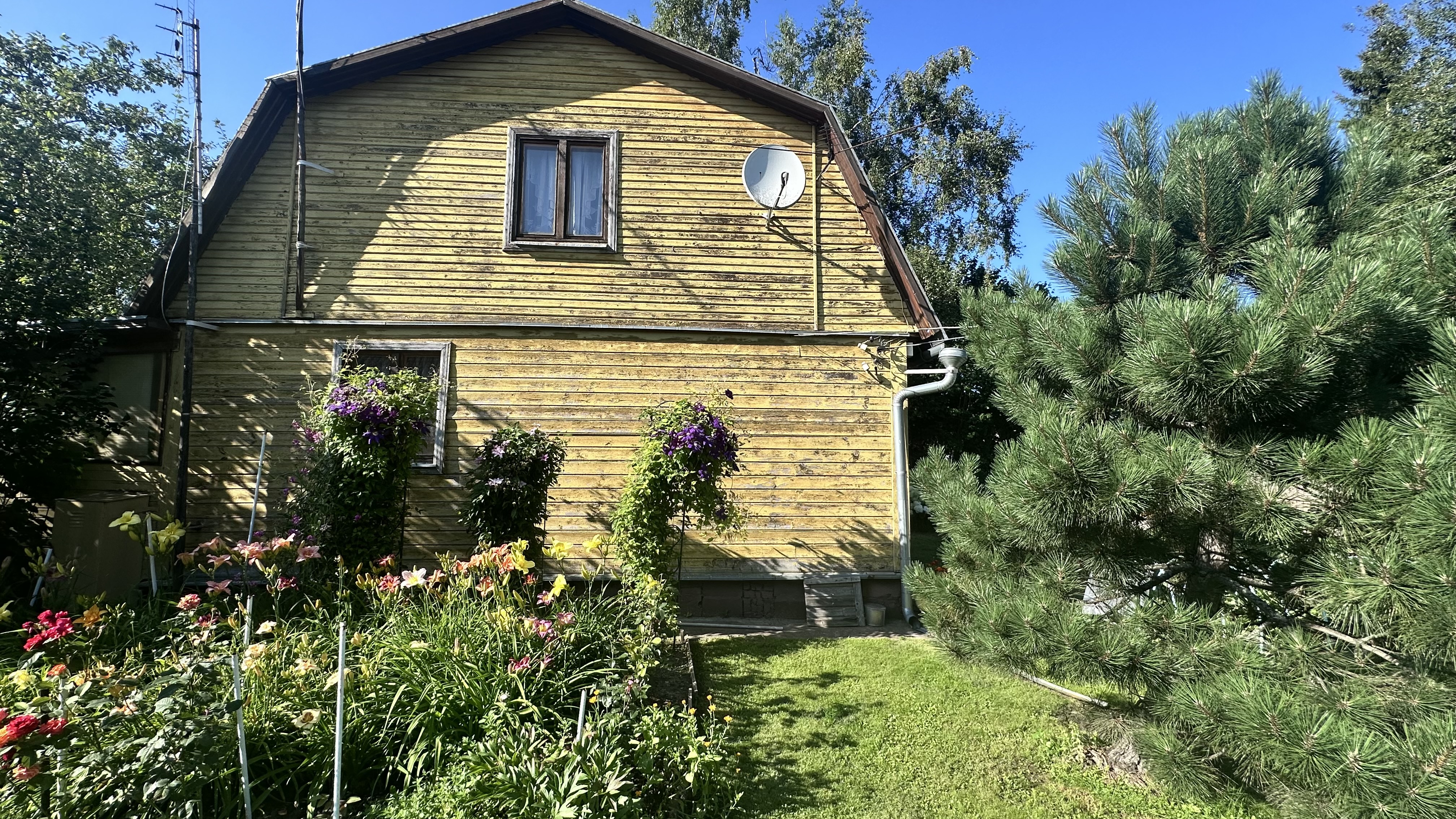 2-х этажная дача 2007 года постройки, общая площадь дома 80 кв. м. Построен дом на ленточном фундаменте, из бруса (150/100), утеплен. Внутри дом частично обшит вагонкой, пол половая доска, окна везде деревянные.