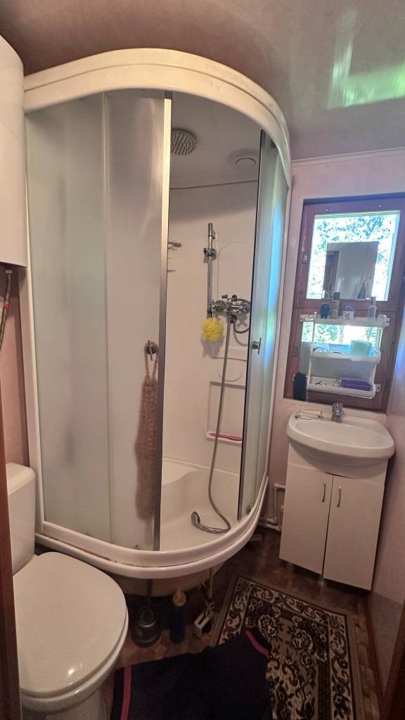 Коммуникации: свет-заведен, разведен по дому и в летней кухне , вода-летний водопровод-заведен в дом, туалет- септик, отопление-электрическое и камин, электричество-6 кВт, газ-баллонный.