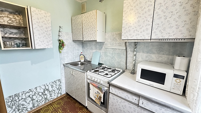 Общая площадь квартиры 32,8кв. м., жилая 18,4 кв. м., кухня 5,6 кв. м.