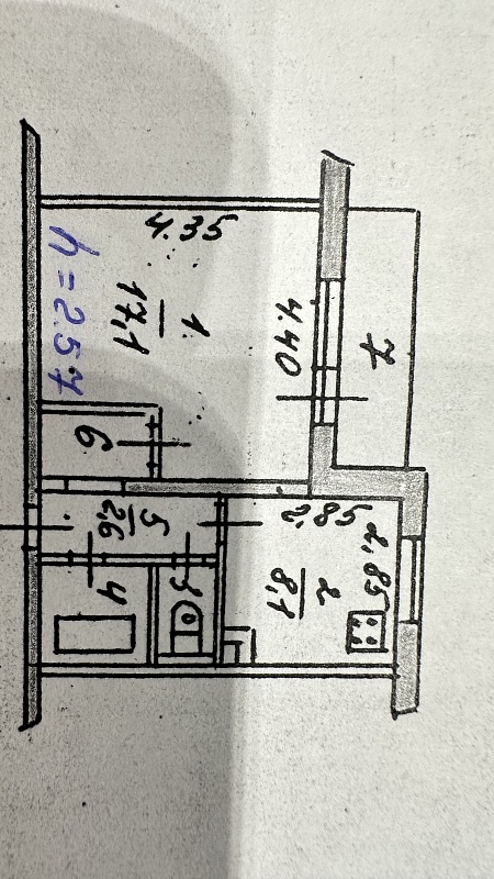 По площади: общая – 35,8 кв. м., жилая – 17,1 кв. м., кухня - 8,1 кв. м.