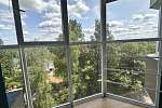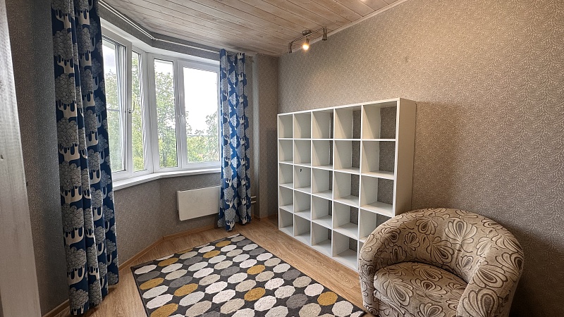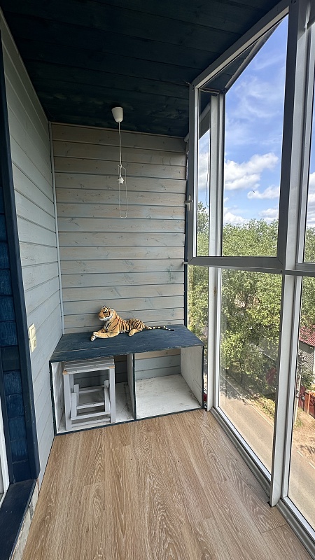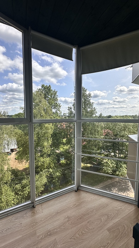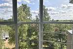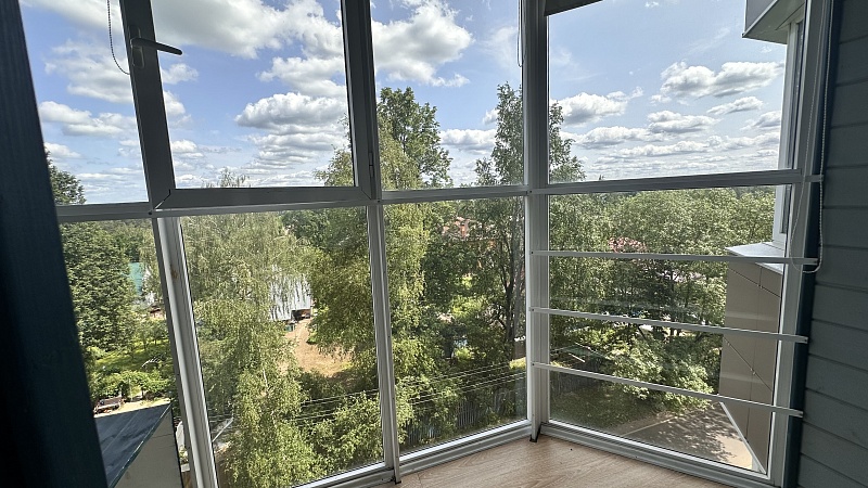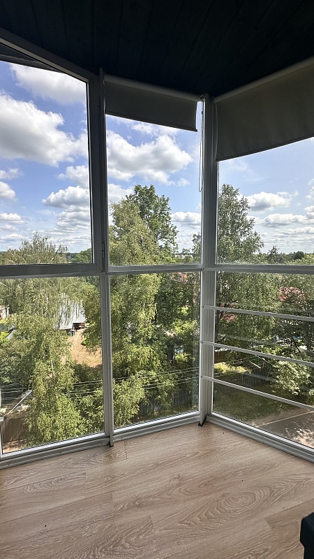 Квартира сухая, светлая, с большой утеплённой и застеклённой лоджией. Окна выходят на частный сектор, который закрывают кроны деревьев. Зимой и осень, когда деревья скидывают листву, открывается красивый вид на Покровский монастырь.
