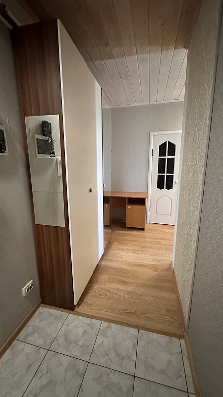 Везде установлены пластиковые окна. В квартире остается встроенная кухонная мебель и большой гардеробный шкаф в прихожей.
