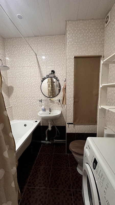 Квартира очень просторная, состоящая из большого коридора- 8,4 кв., кухни – 9,7 кв., комнаты – 16,4 кв. м. и совмещенного с/у.
