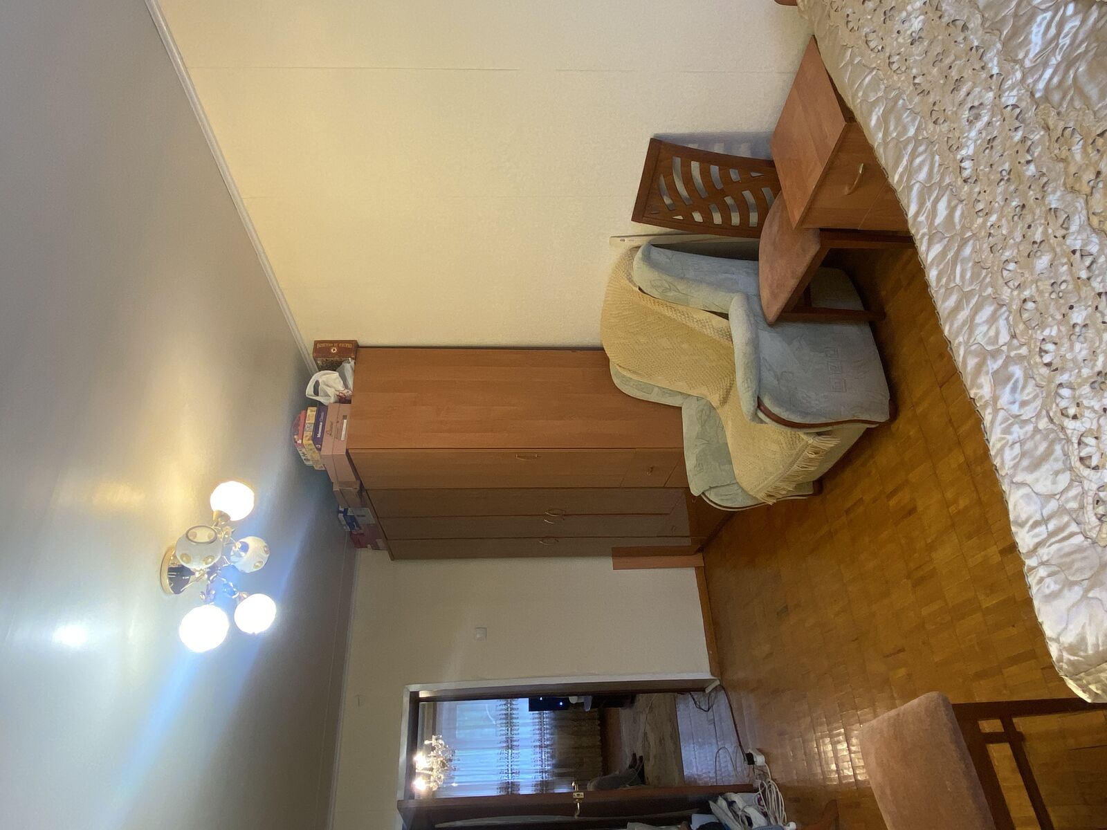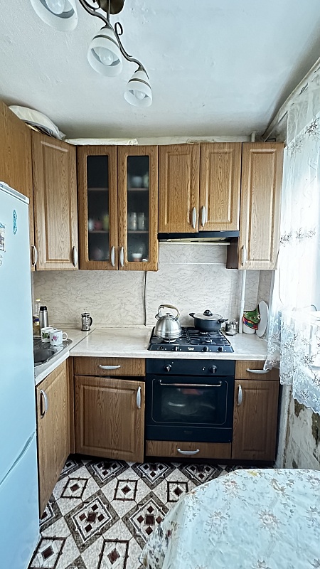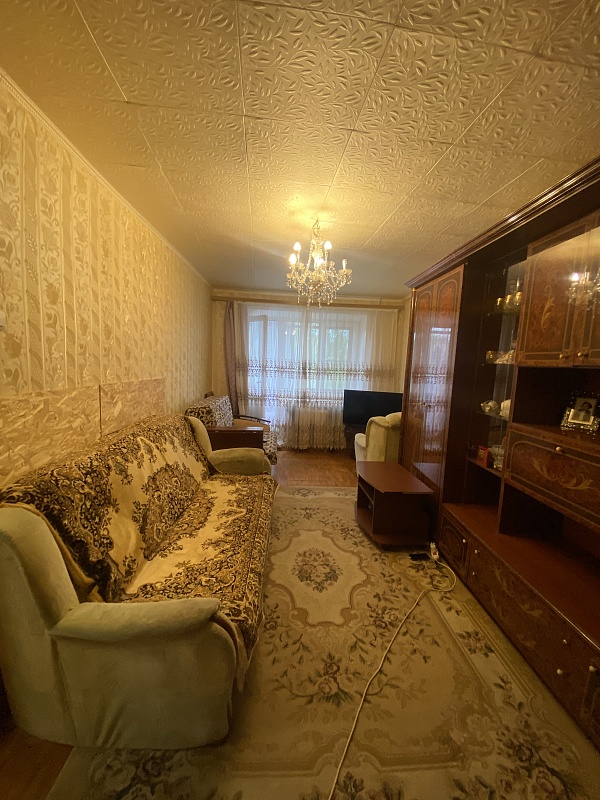 В квартире остаётся часть мебели (кухонный гарнитур, прихожая, спальный гарнитур, стенка в комнате), диван.