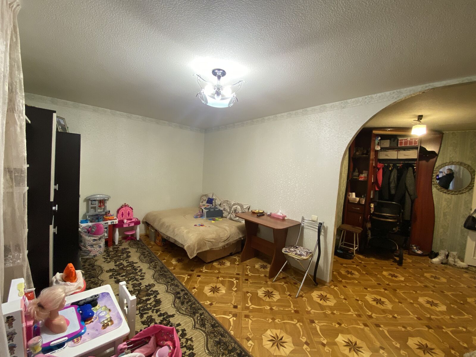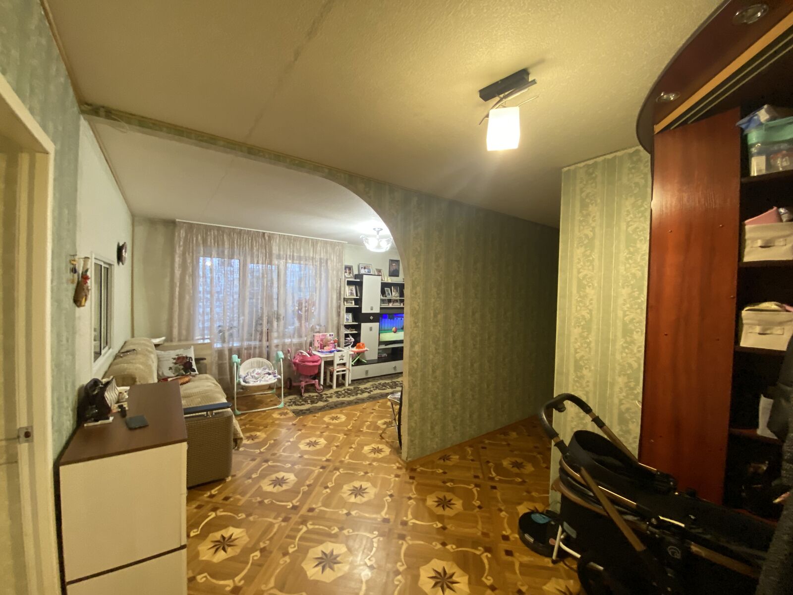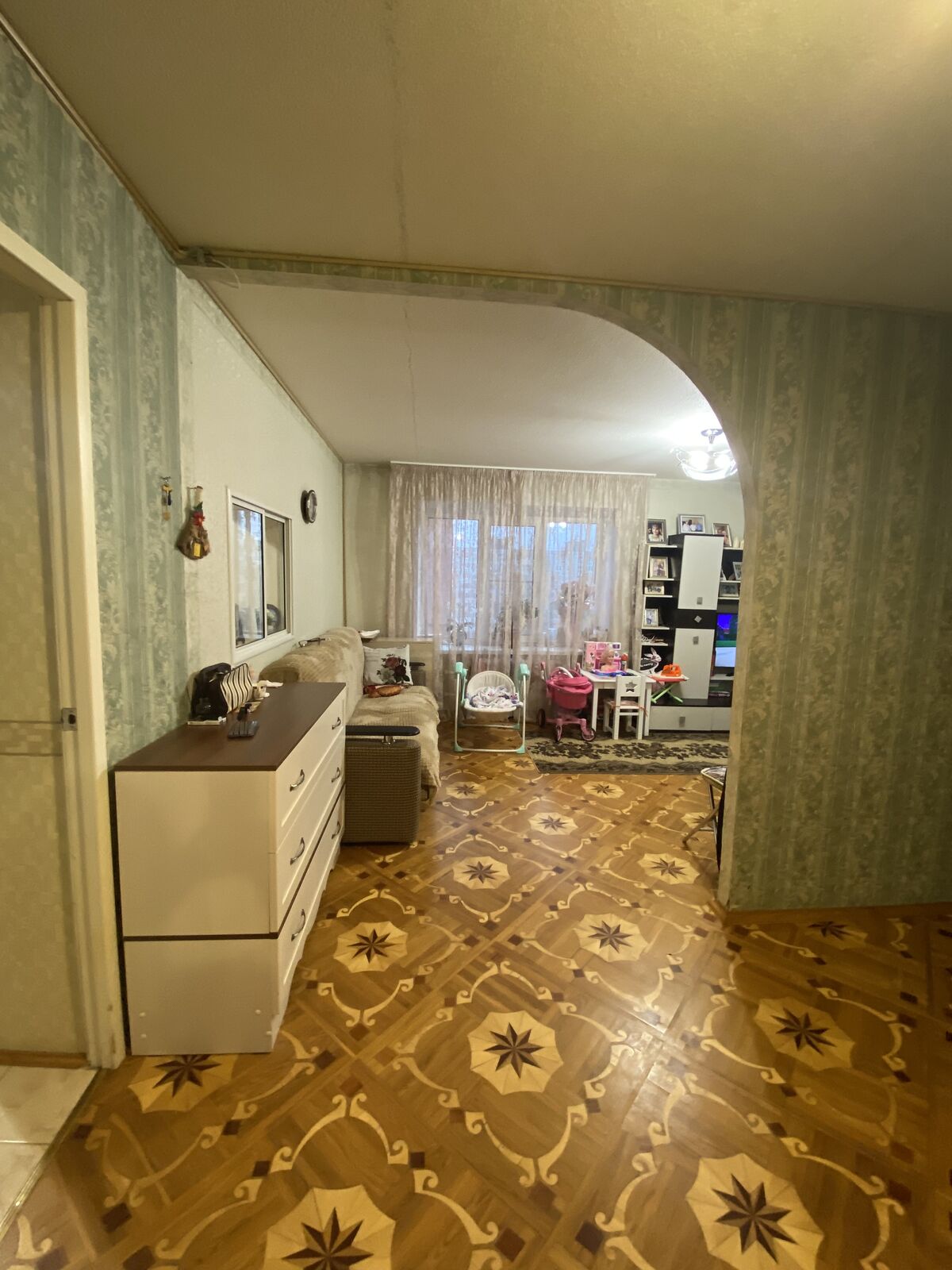 В квартире произведён хороший ремонт, санузел раздельный, на кухне и с/у на полу плитка, в комнатах- паркетная доска, окна пластиковые.