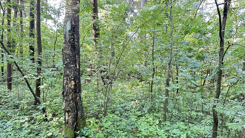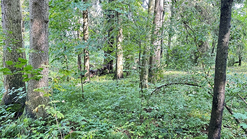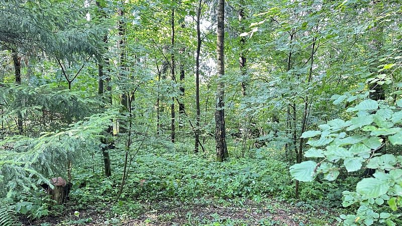 Участок с межеванием (его кадастровый номер 50:05:0050402:23), для ИЖС. На участке взрослые лесные деревья.