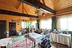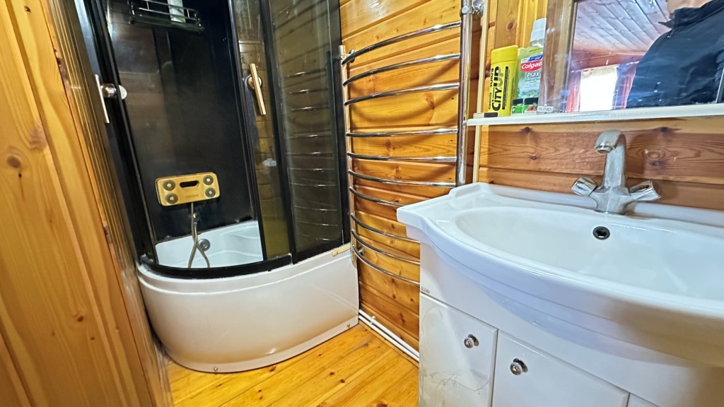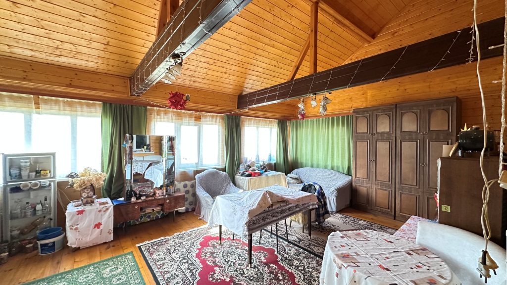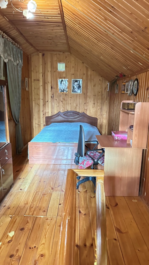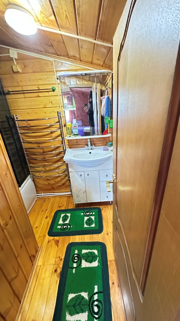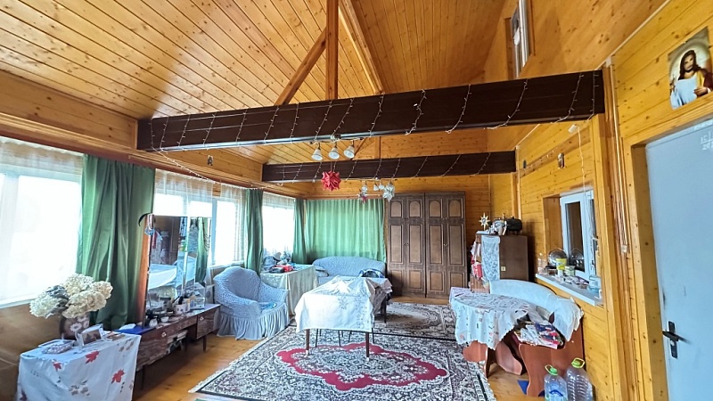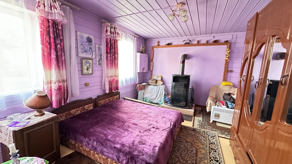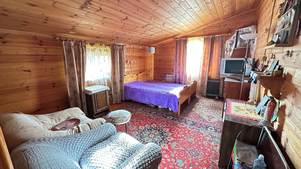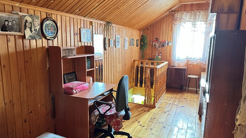 По планировке: в доме на 1-м этаже прихожая, большая теплая и светлая веранда, холл с лестницей на 2-й этаж, кухня с техникой, с/у, спальня с печкой, холл с лестницей на 2-й этаж, а также небольшой погребок; на 2-м этаже: комната над кухней, и еще одна спальня с раздельным с/у и душевой над спальней на 1-м этаже. К каждой комнате на 2-м этаже своя лестница, тем самым комнаты максимально изолированы друг от друга.