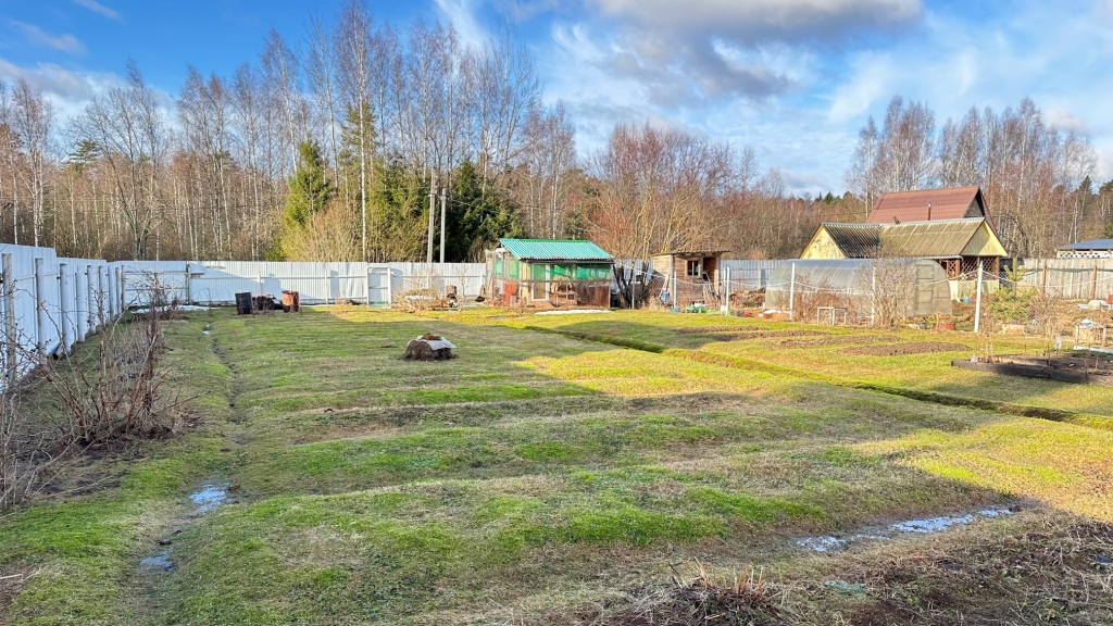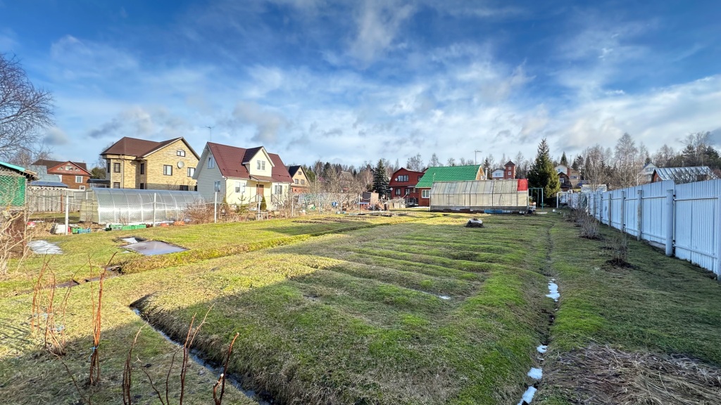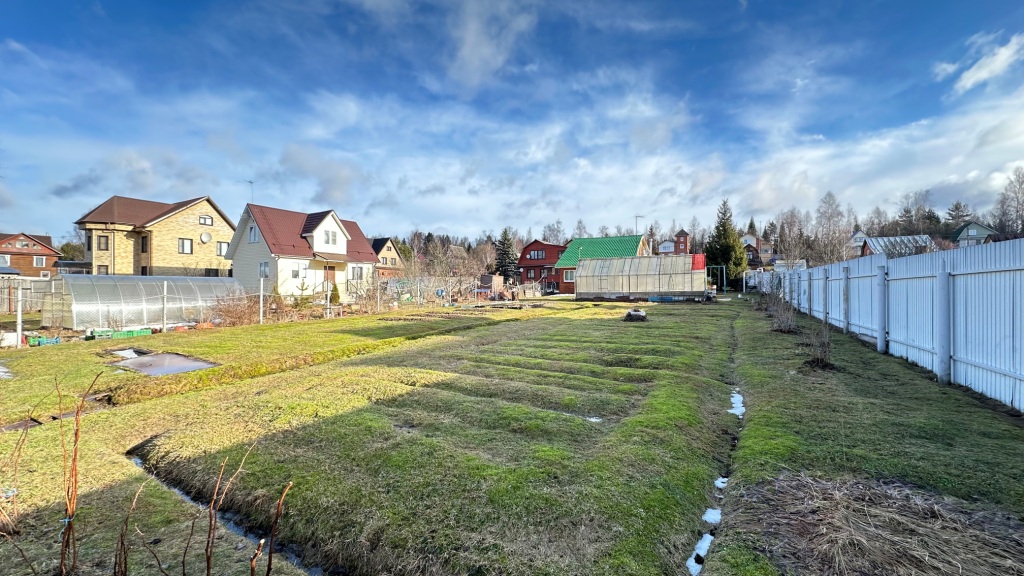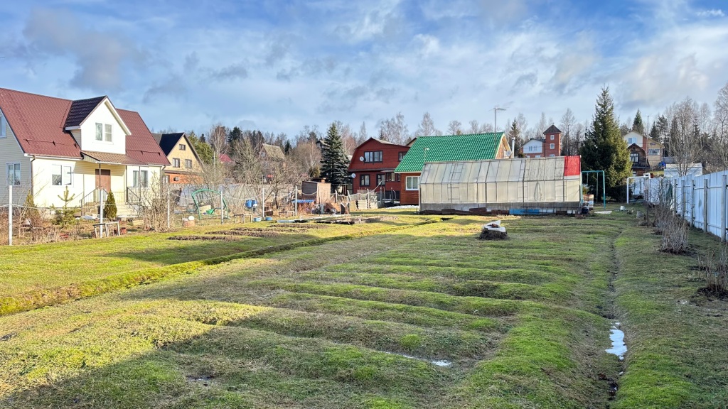 Участок ухоженный, ровный, правильной прямоугольной формы, размером 20х80м, угловой, имеет только одного соседа, расположен рядом с пожарным прудом и лесом.