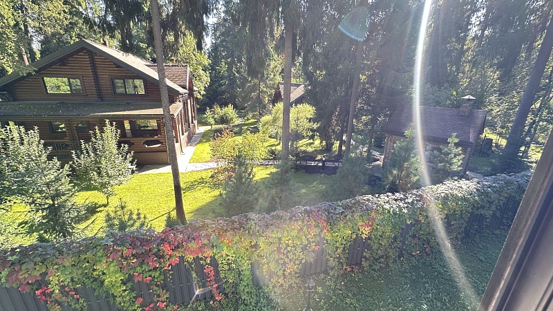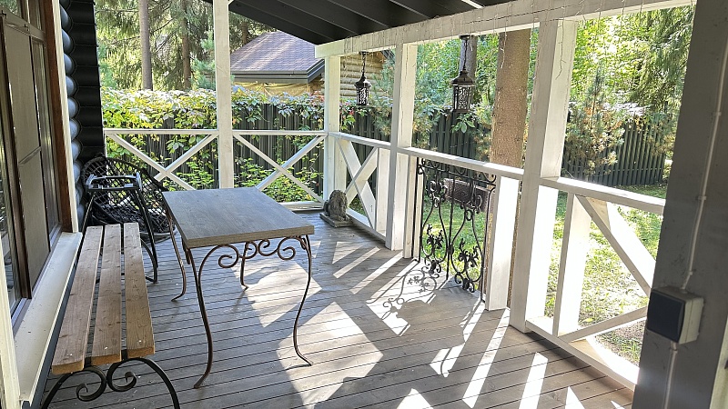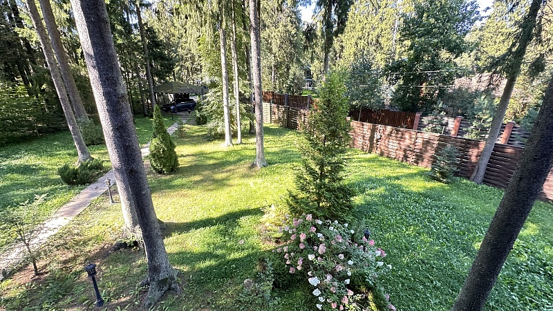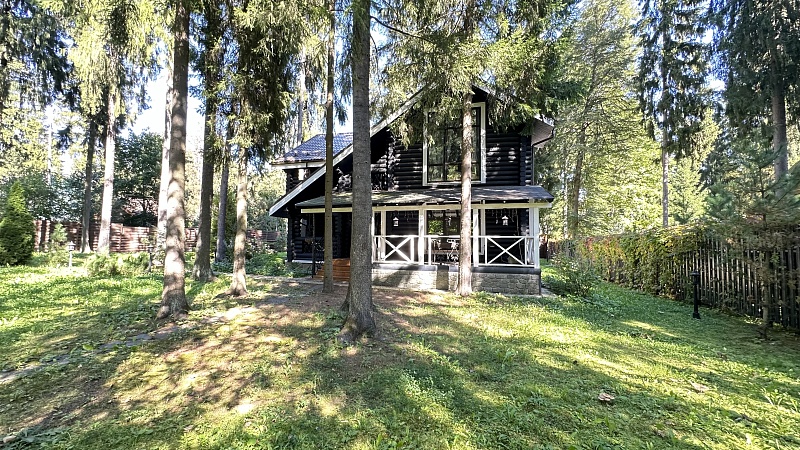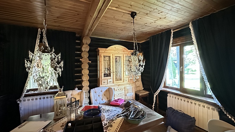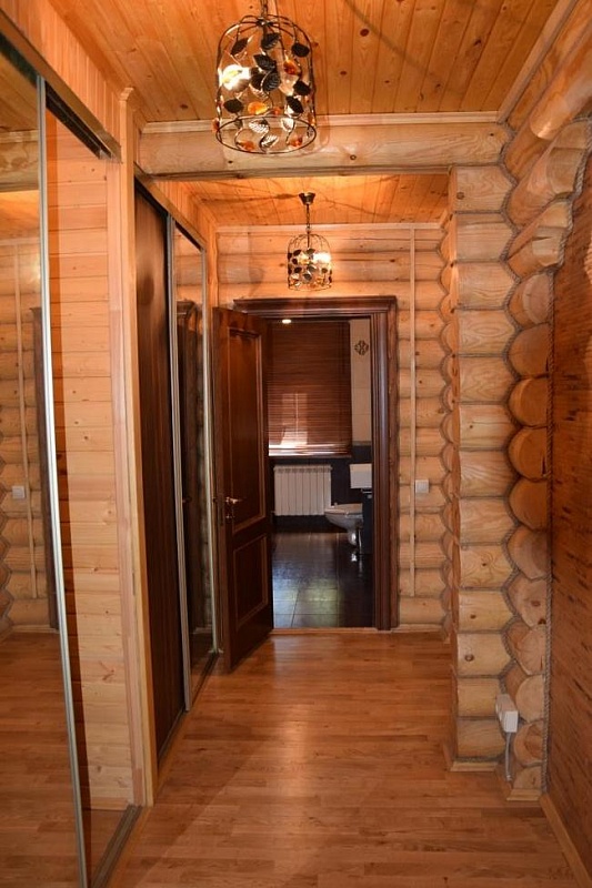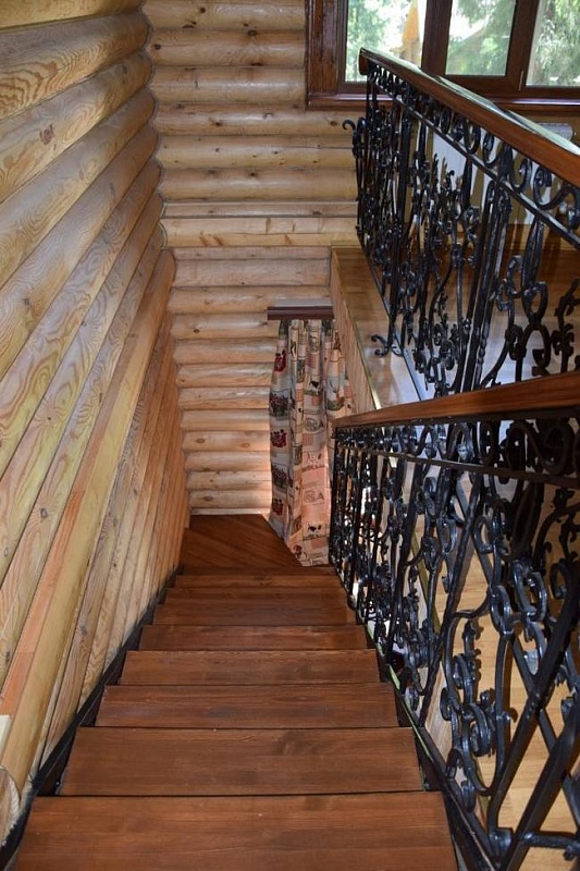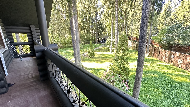 Дом 2010 г.п., 2-х этажный, из оцилиндрованного бревна, на ленточном фундаменте. В доме на 1-м этаже: прихожая с гардеробной, большая кухня-столовая с каминным залом, гостевая комната, и с/у с душевой кабиной; на 2-й этаж ведет шикарная кованная лестница, на этаже: большой холл, 3 изолированные спальни, большая ванная комната с душевой кабиной, просторные балконы с видом на участок.