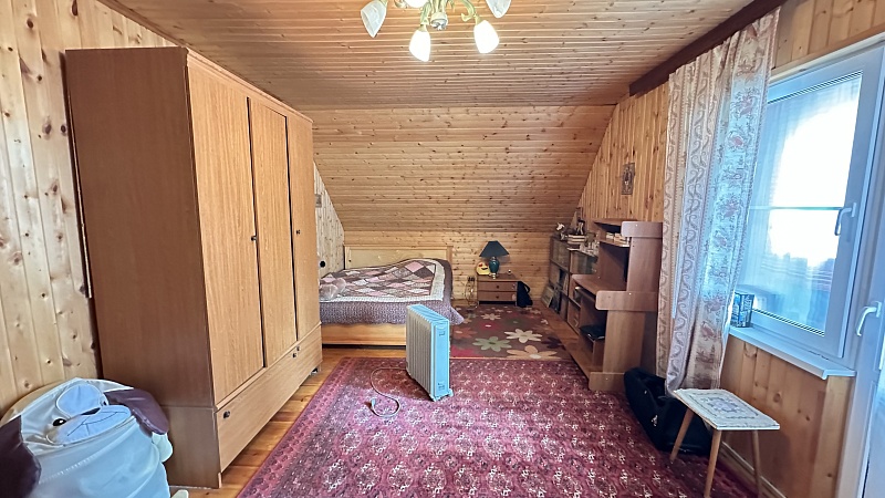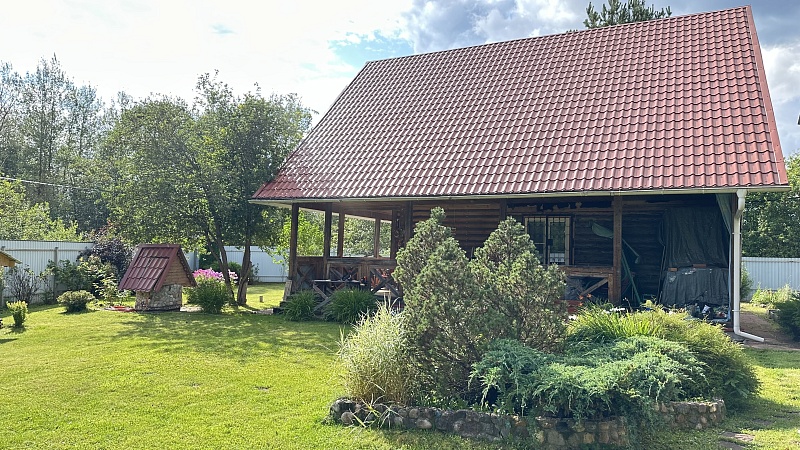На участке 2-х этажный бревенчатый дом 1996 г.п., в 2008 была сделана брусовая пристройка с большой верандой, в настоящее время общей площадью с верандой 185 кв.м., фундамент – ленточный бетонный, кровля- металлочерепица.