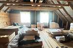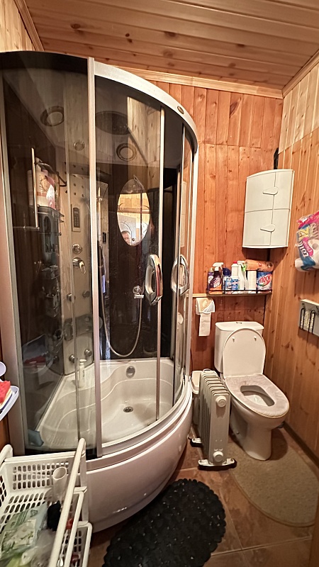 В доме на 1 этаже: тамбур, кухня, с/у с душевой кабиной и 3 комнаты, а также веранда; на 2-м этаже: комната и большое неразделенное помещение без отделки.