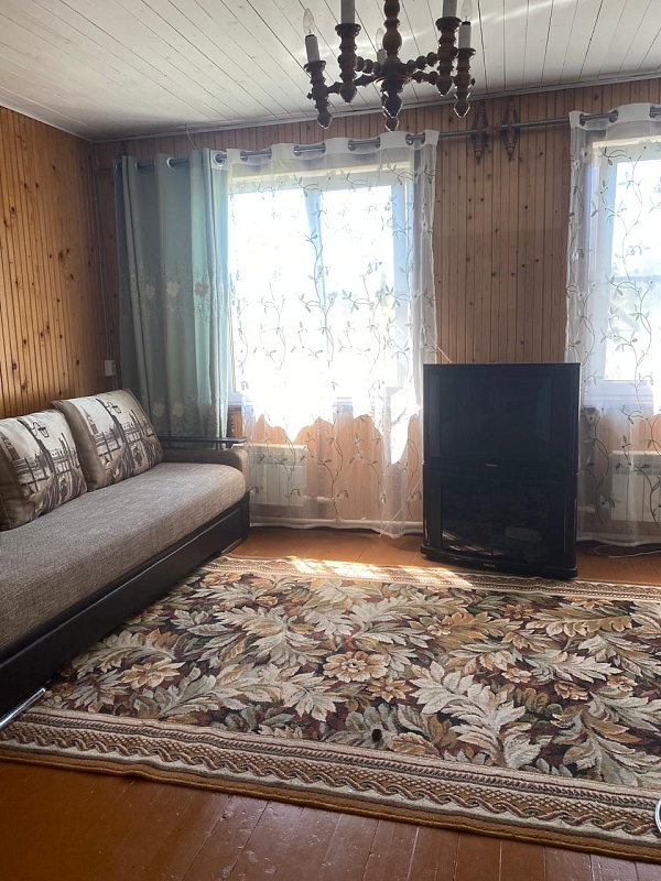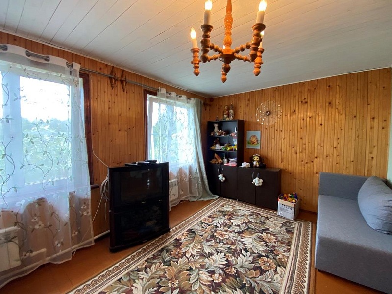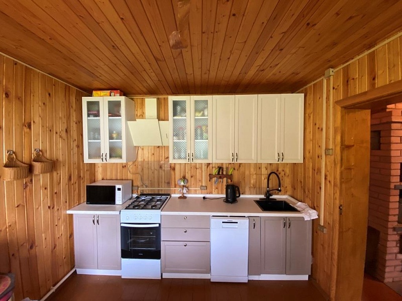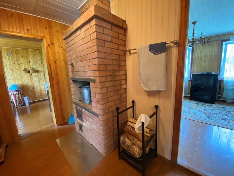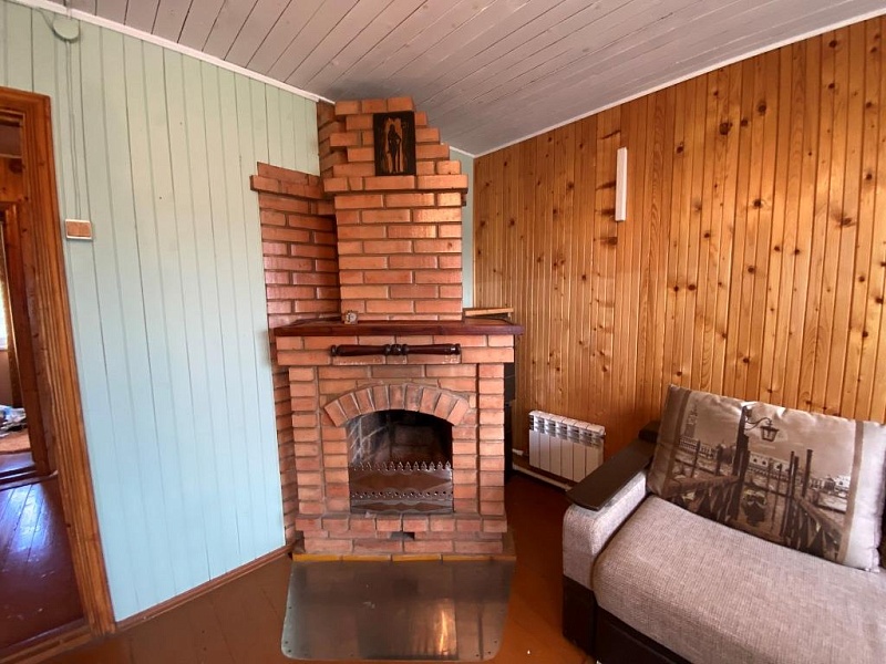 Дом теплый, на ленточном фундаменте. Дом два этажа, в доме санузел, прихожая, оснащенная техникой кухня, гостиная с камином и печью, две спальни, также отапливается электрическим котлом, батареи с антифризом разведены по дому, крыша утеплена.