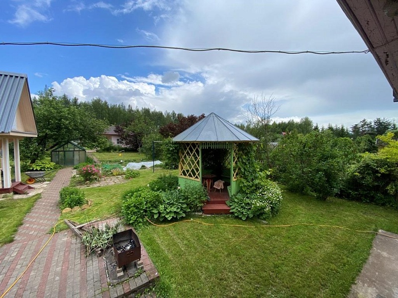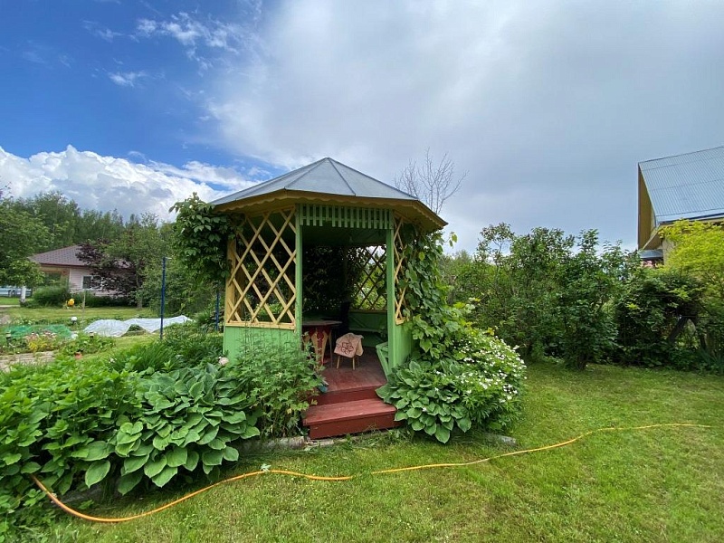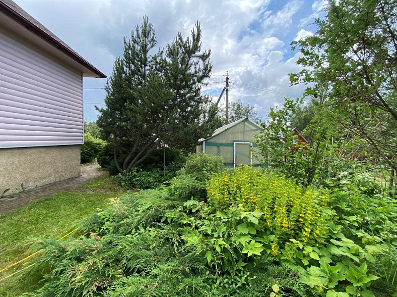 На участке выделены зона с хвойными посадками: горная сосна, 2 кедра, можжевельники, зона отдыха: беседка, мангал, есть 2 стационарных сварных парника и несколько грядок, ягодные культуры и плодовые деревья. Все дорожки и межрядья выложены брусчаткой, стоянка на 2 машины. Участок выровнен и находится на возвышенности. Асфальтированная дорога. Рядом лес, озеро. кад. № участка 50:05:0040502:62, дом: 50:05:0040502:163