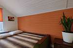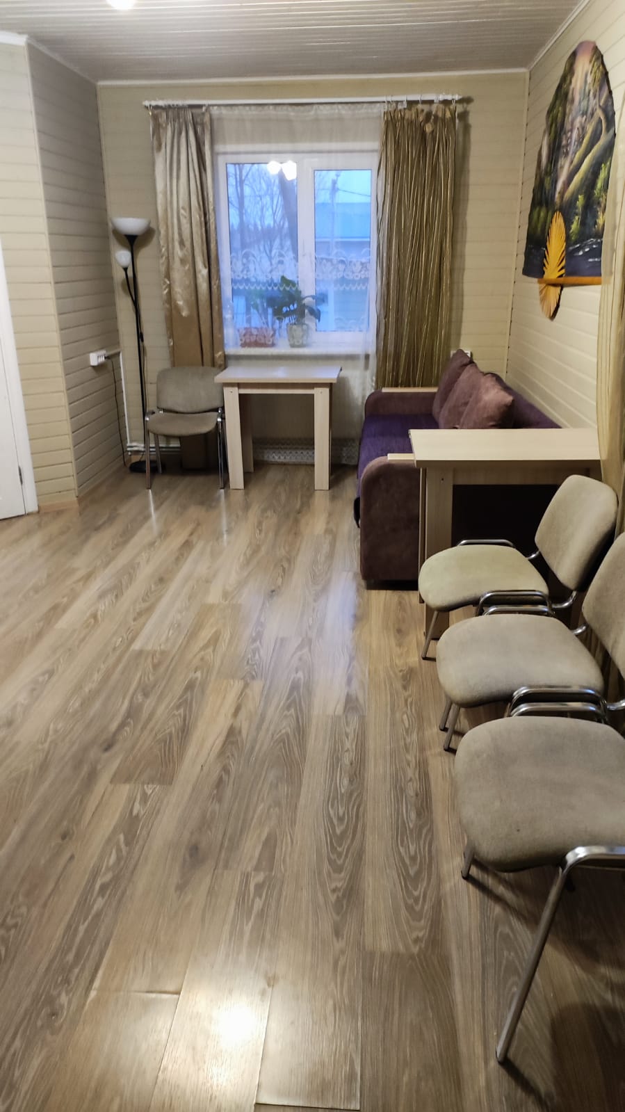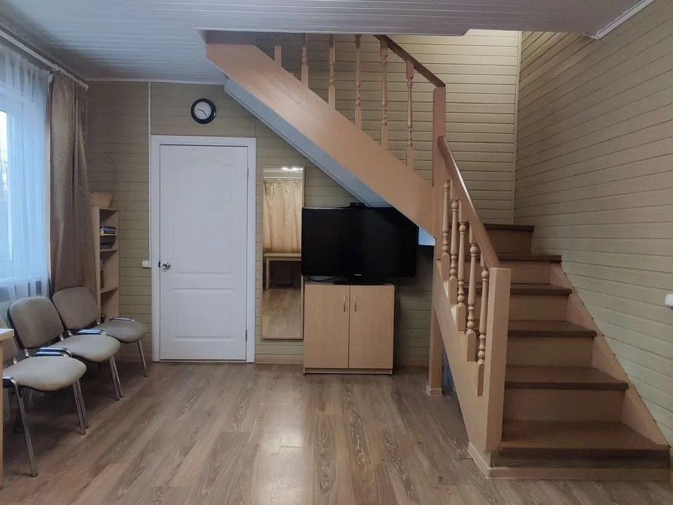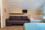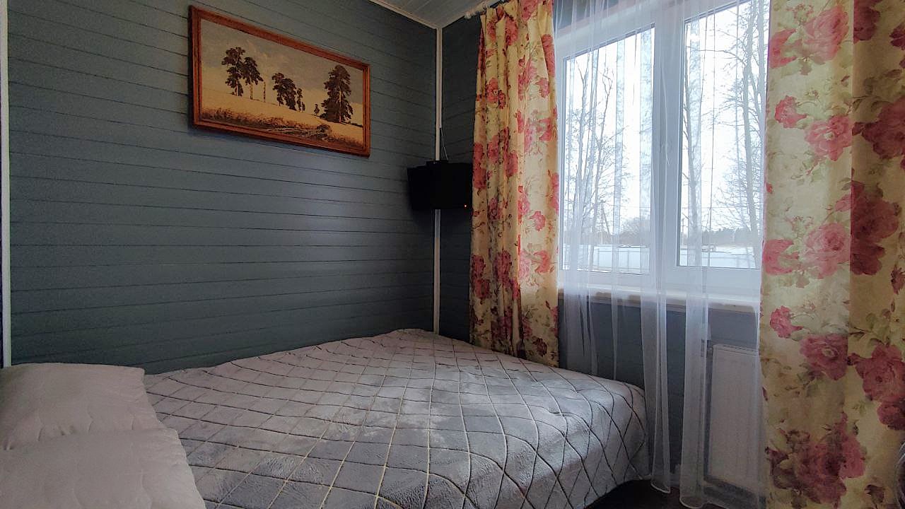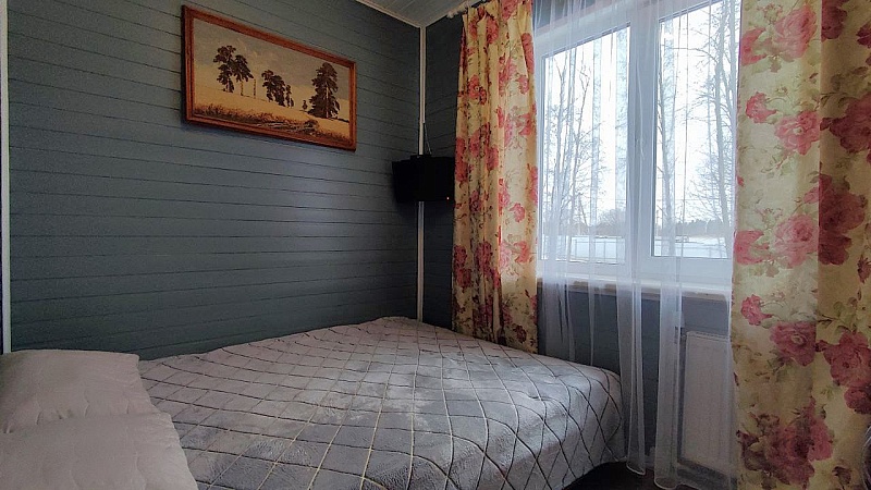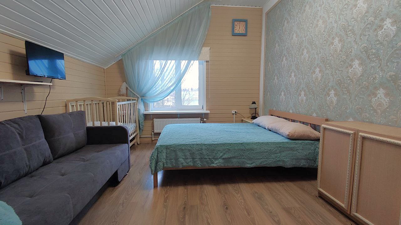 В доме: на 1 этаж: гостиная, кухня, небольшая спальня, санузел, веранда. Веранда не отапливаемая, закрытая по периметру мягкими окнами; на 2-м этаже: 3 изолированные спальни и туалет.