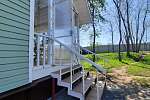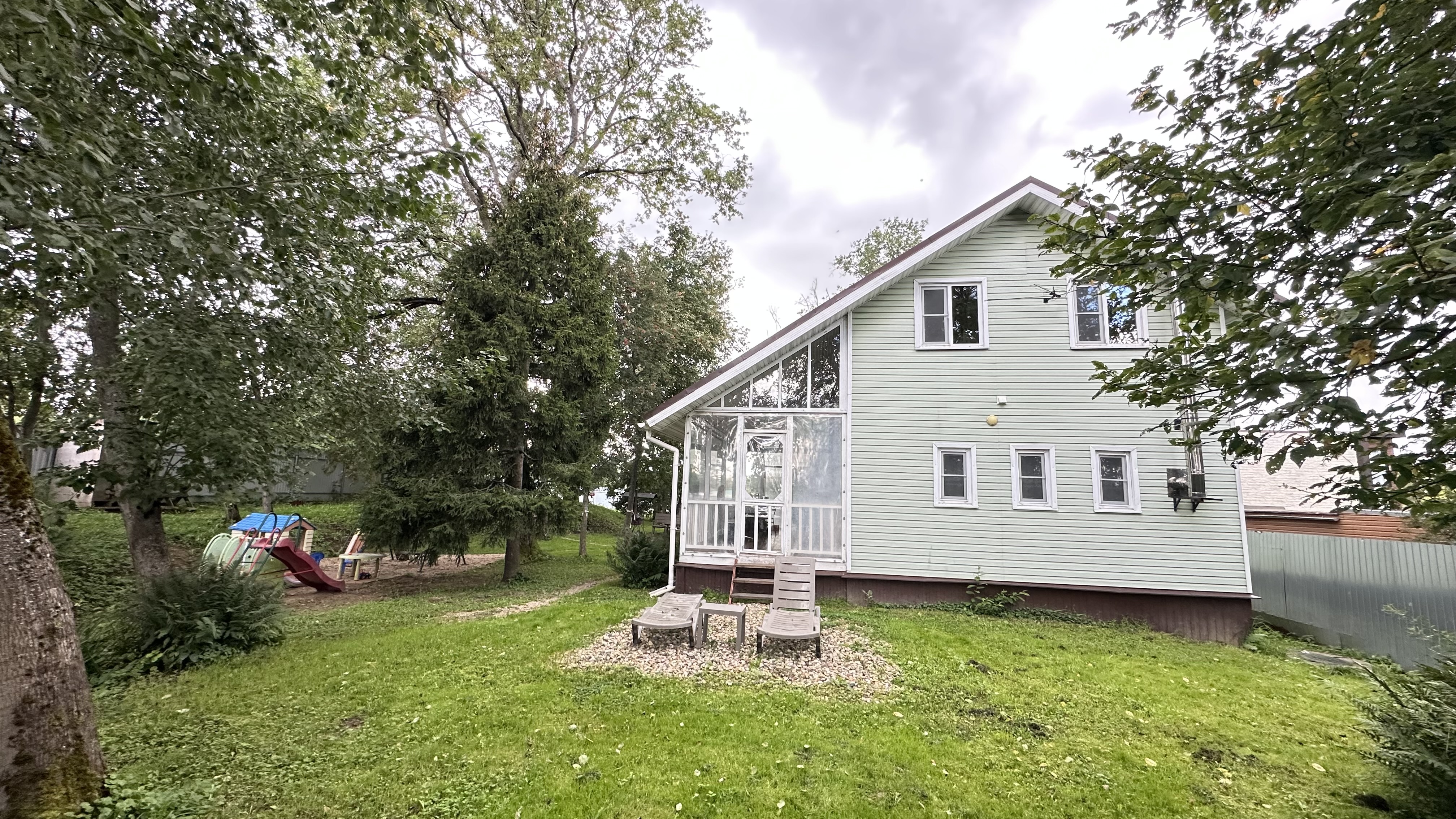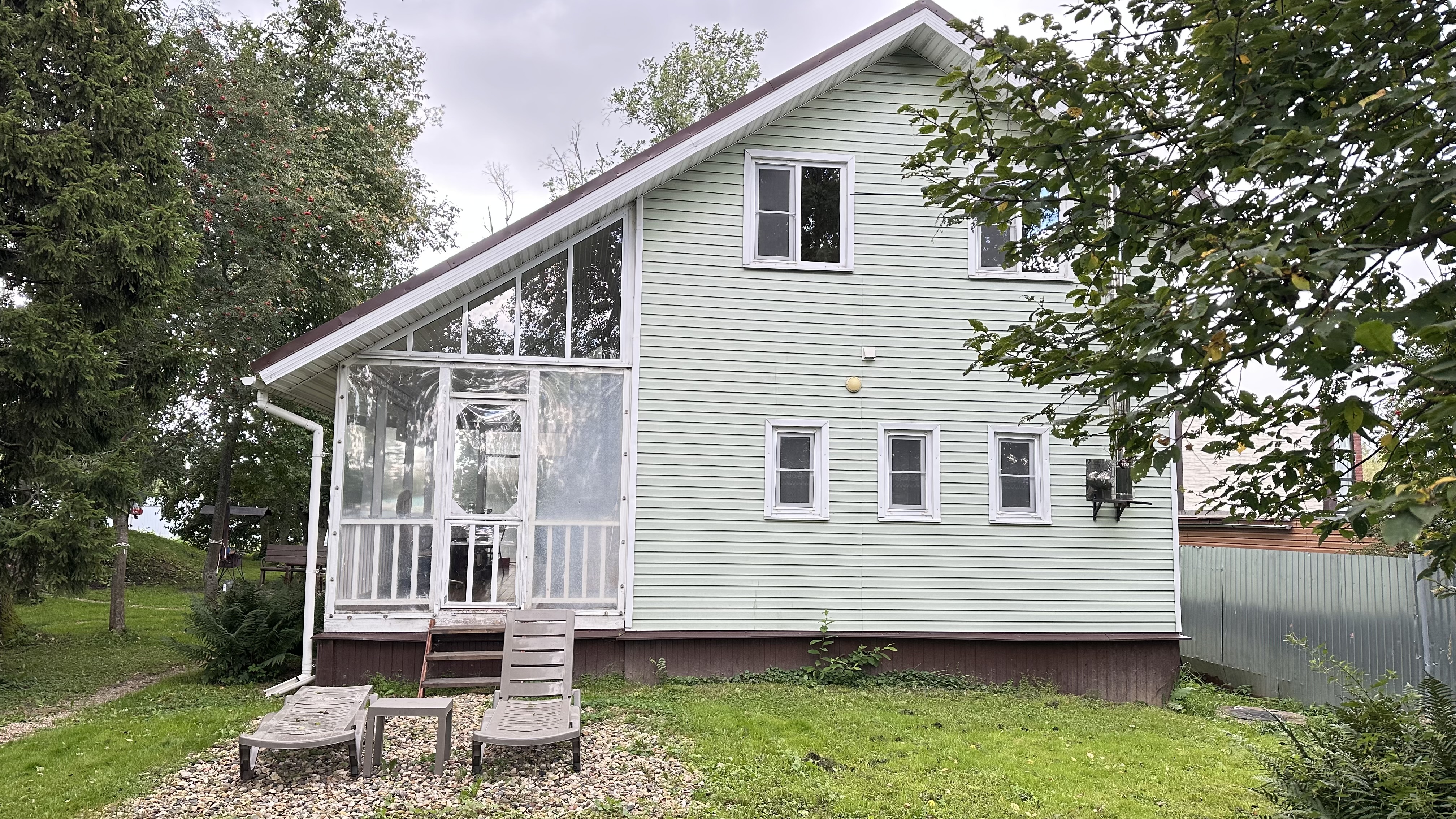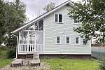 На участке современный 2-х этажный каркасный дом с большой верандой 25 кв.м., жилой отапливаемой площадью 98,9 кв.м. Дом 2017 г.п., фундамент – винтовые сваи, утеплен минватой (в стенах и кровле 15 см толщиной, а в полу 20 см) и обшит сайдингом, кровля- металлочерепица.