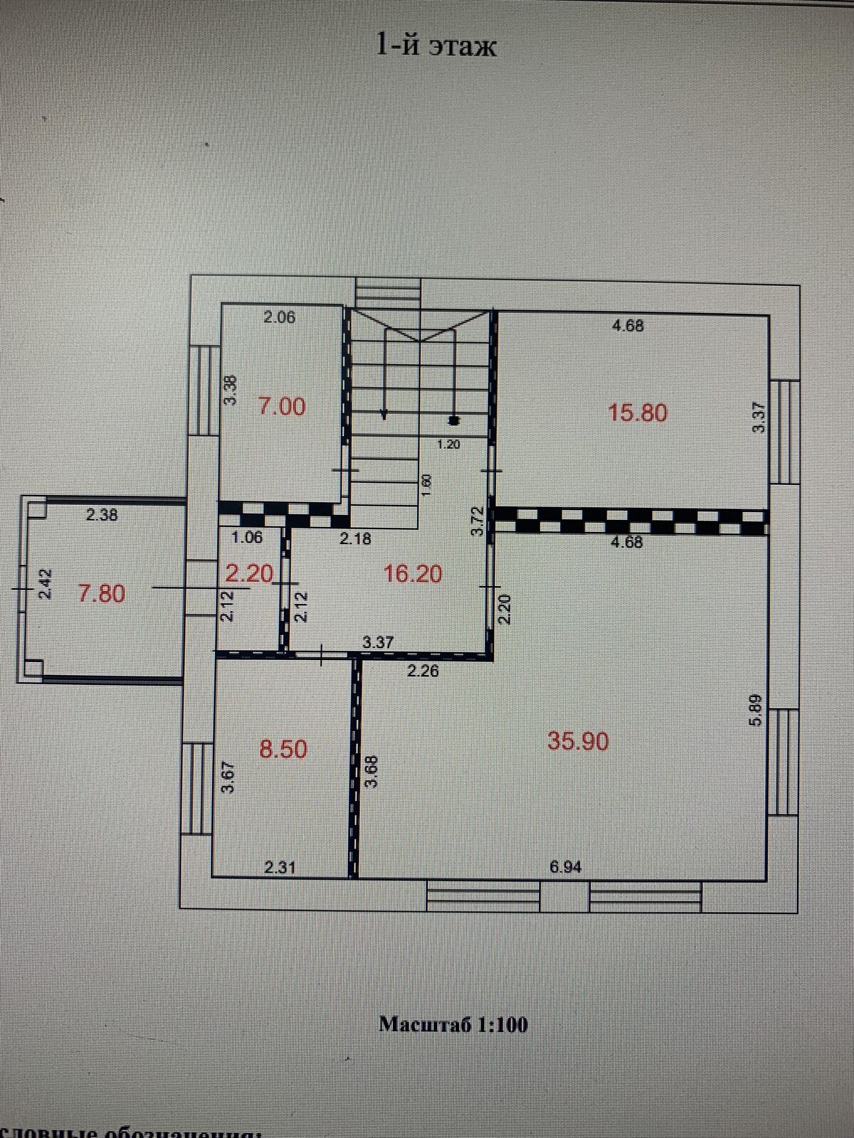 В доме на 1-м этаже: неотапливаемое крыльцо – 7,8 кв.м., прихожая – 2,2 кв.м., коридор с (планируемой) лестницей – 16,2 кв.м., с/у, котельная – 8,5 кв.м., кухня совмещенная с гостиной – 35,9 кв.м., спальня - 15,8 кв.м; на 2-м этаже: коридор – 10,9 кв.м., с/у – 7,4 кв.м., 3 спальни (16,4+19,4+27,4) кв.м.