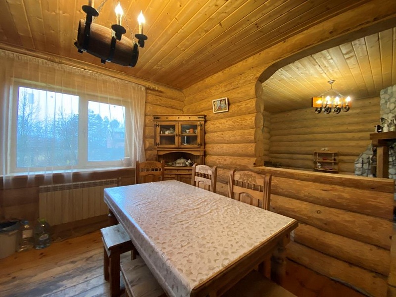 Современный жилой дом 2017 г.п., площадью 265.5 кв.м., по ЕГРН: Жилое строение (садовый дом), назначение не жилое, из бревна, на хорошем фундаменте бетонные блоки, есть цокольный этаж, кровля – мягкая черепица. По планировке: 1 этаж: открытая веранда, кухня-гостиная, спальная комната, санузел с душевой кабиной и подсобное помещение; 2-й этаж; три спальные комнаты одна с балконом, санузел с душевой кабиной, подсобное помещение; цокольный этаж: комната для хранения продуктов, котельная и большая комната. Коммуникации: дом отапливается шикарным камином, твердотопливный котёл - батареи разведены по всему дому, электричество (15 кВт), вода – скважина (глубиной 30 метров, заведена в дом), канализация – септик, газ есть в СНТ, возможно подключение. На въезде в СНТ автоматические ворота. Несколько семей проживают круглый год. Красивое, очень тихое место, рядом лес и река, подъезд к СНТ по асфальтированной дороге.