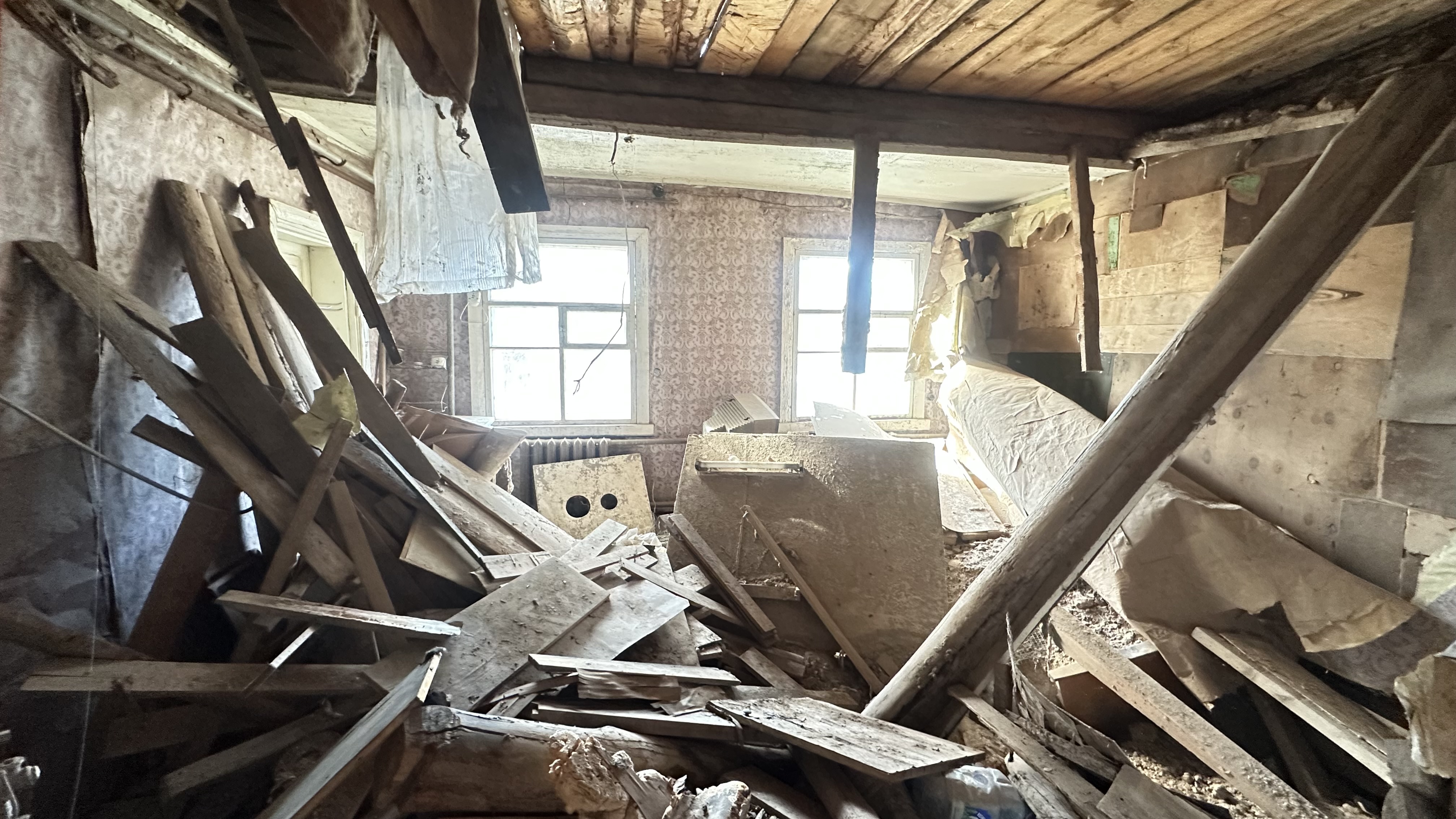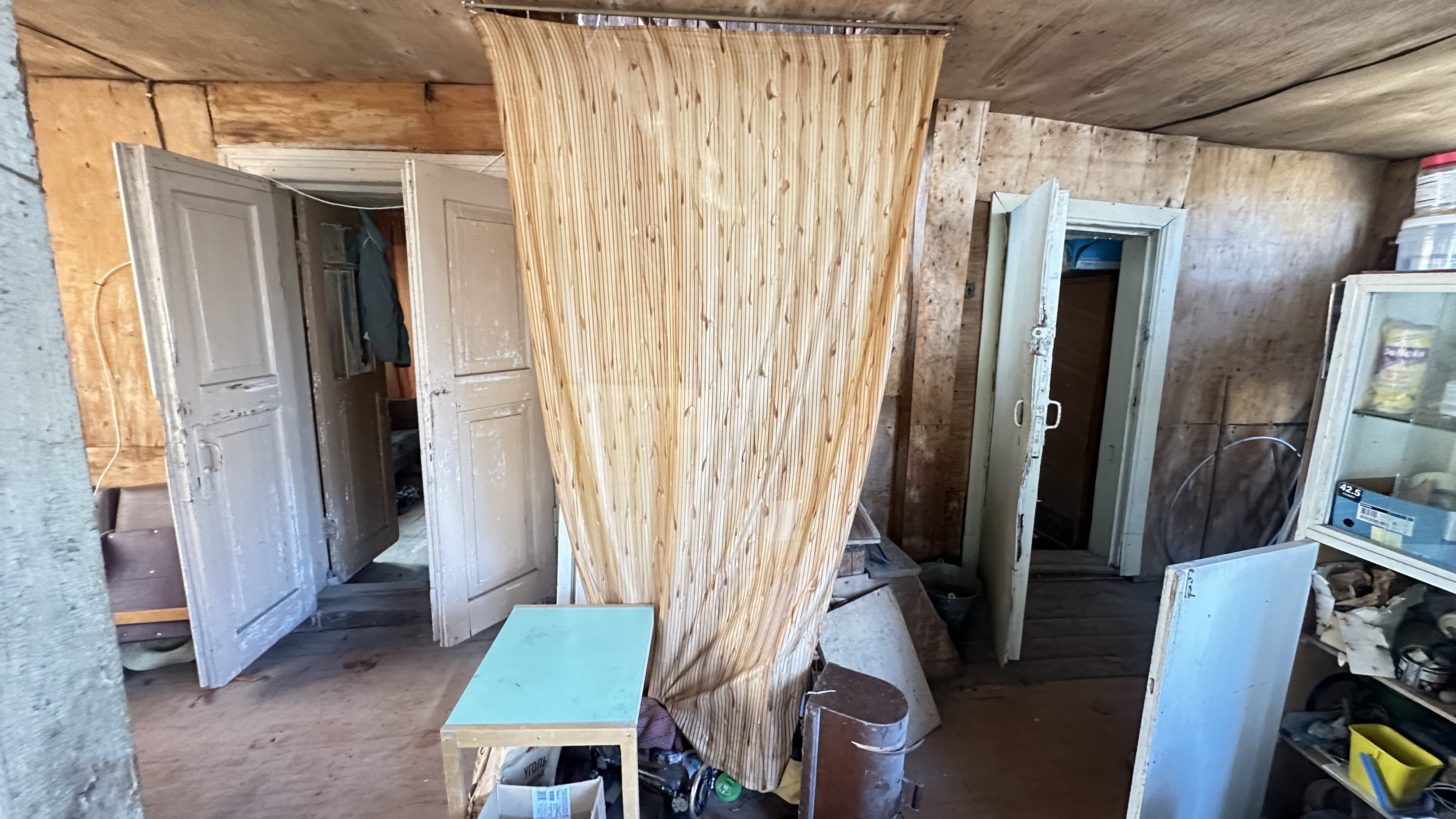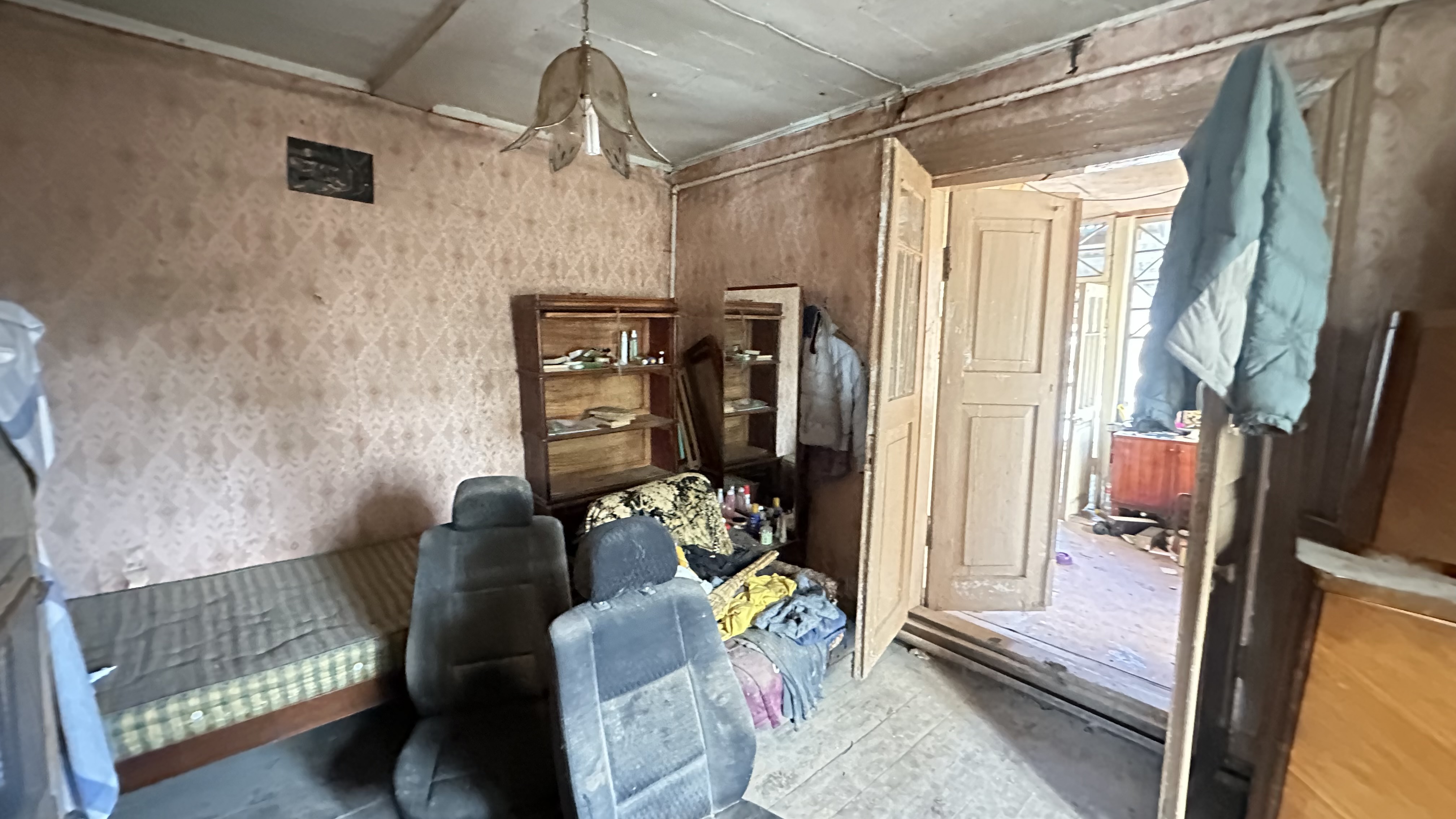 Дом 1953 г.п., бревенчатый, 53,9 кв.м., который состоит из веранды, и трех комнат. Дом в ветхом состоянии. Подведено электричество 15 кВт (три фазы) и центральный водопровод, и газопровод.