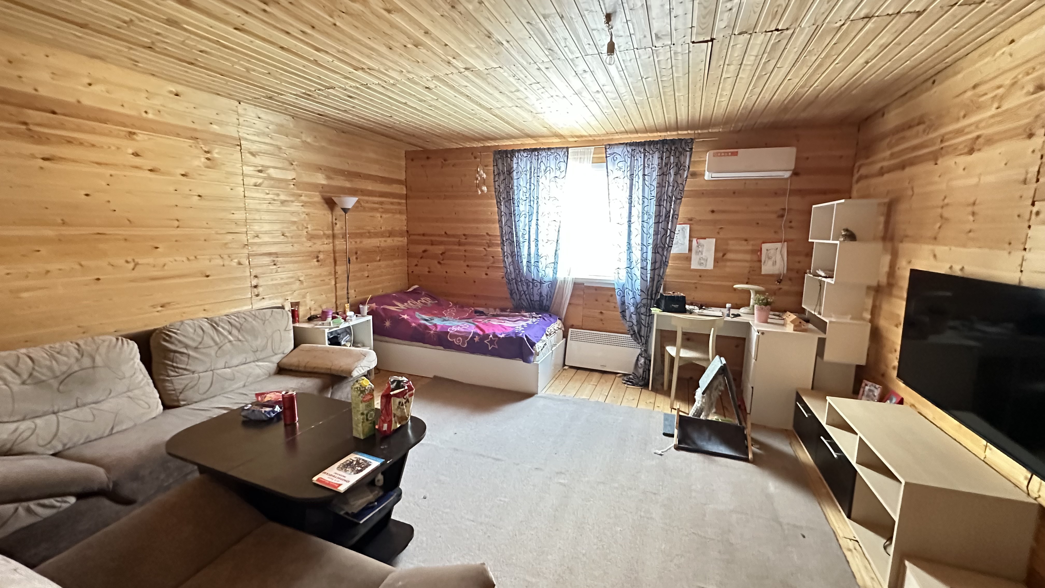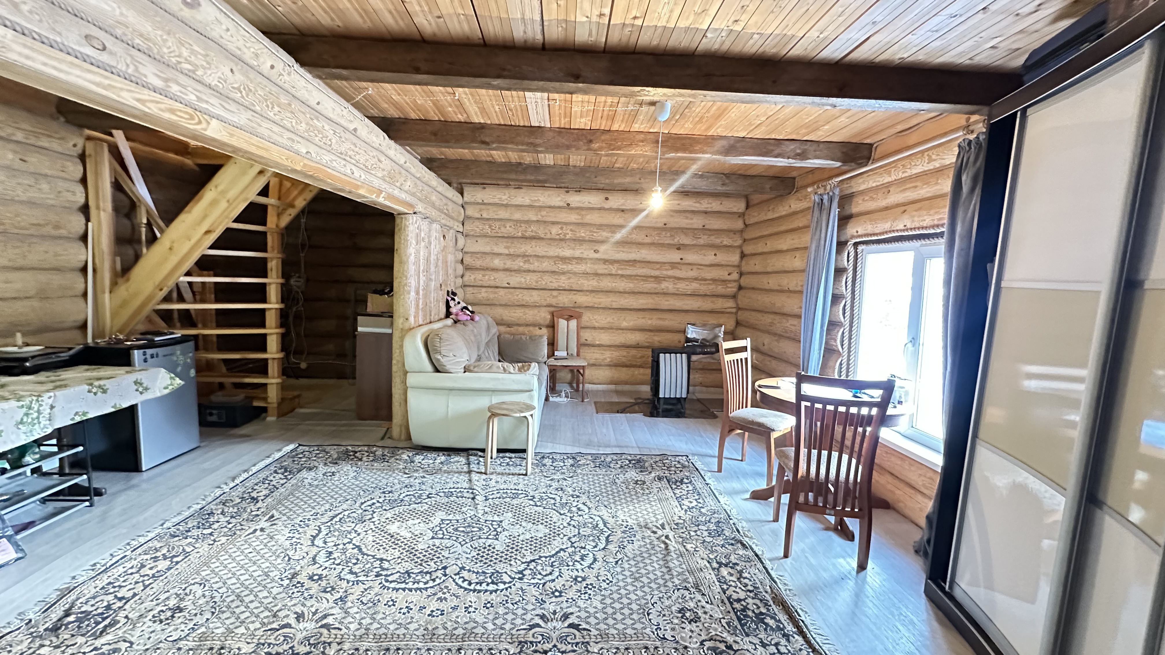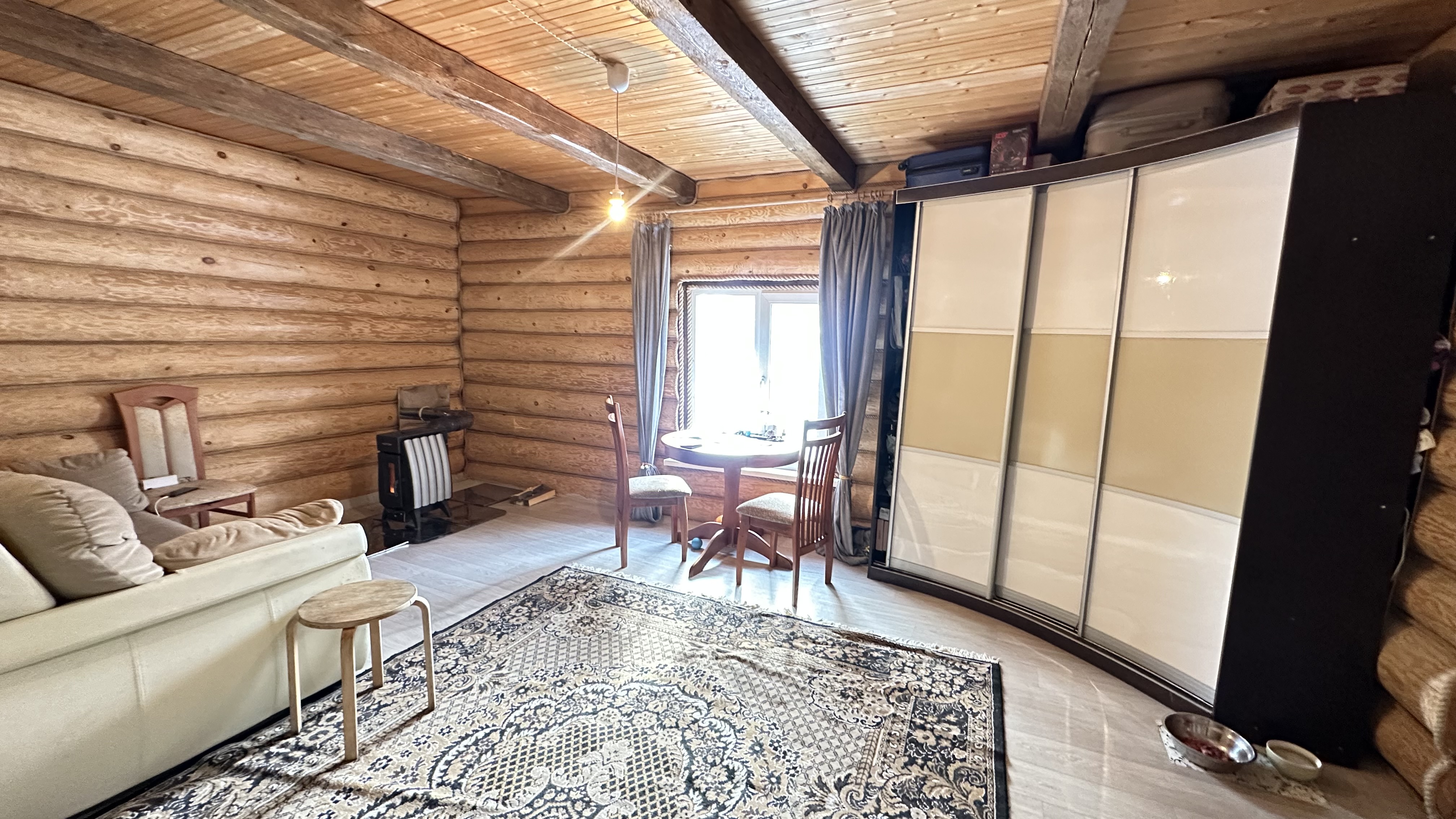 На участке 2-х этажный жилой дом, на ленточном фундаменте, 1-й этаж: сруб 6Х8 м, 2-й мансардный этаж каркасный утепленный, общая площадь 89,6 кв.м., окна ПВХ. По планировке: на 1-м этаже: прихожая, с/у с душевой кабиной, кухня, совмещенная с залом, на 2-м этаже: 2 изолированные спальни. Также к дому пристроена веранда.
