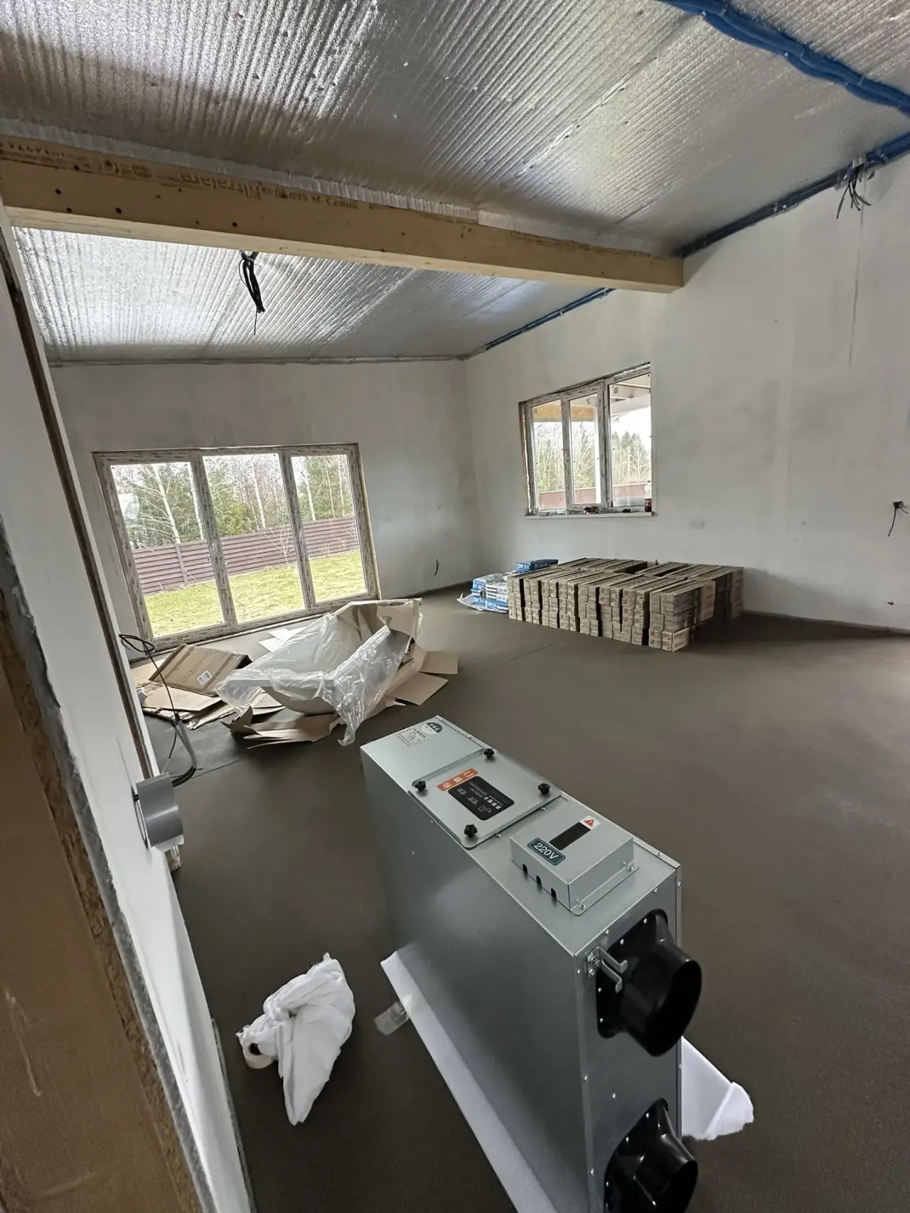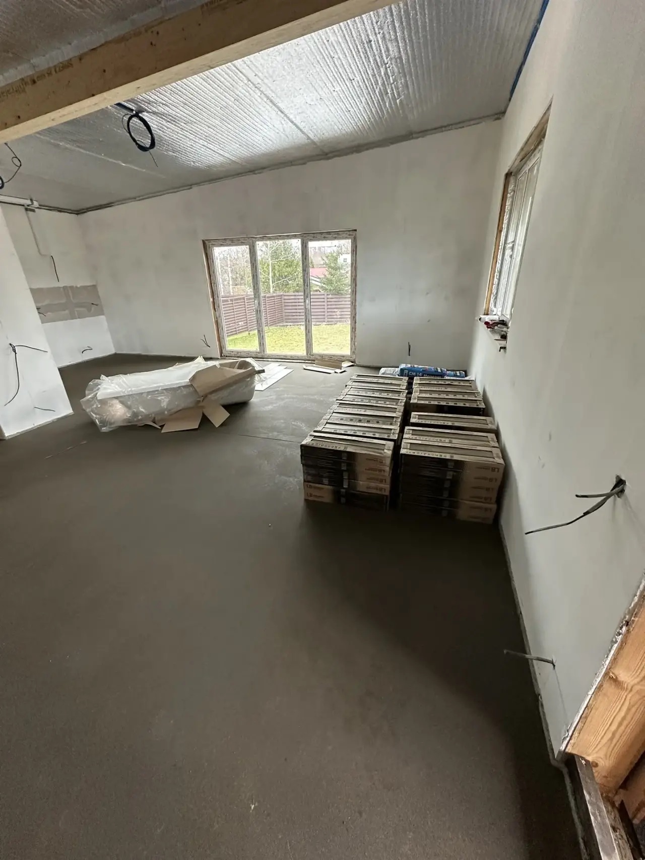 На фото также изображен точно такой же дом, недавно проданный, с внутренней отделкой. В настоящее время дом в стадии отделки (сделана стяжка, теплый пол водяной от электрического котла, вся инженерия выполнена), планируется примерно такая же отделка дома, как на фото. По мере его готовности к проживанию стоимость периодически будет меняться. Возможен вариант иной внутренней отделки.