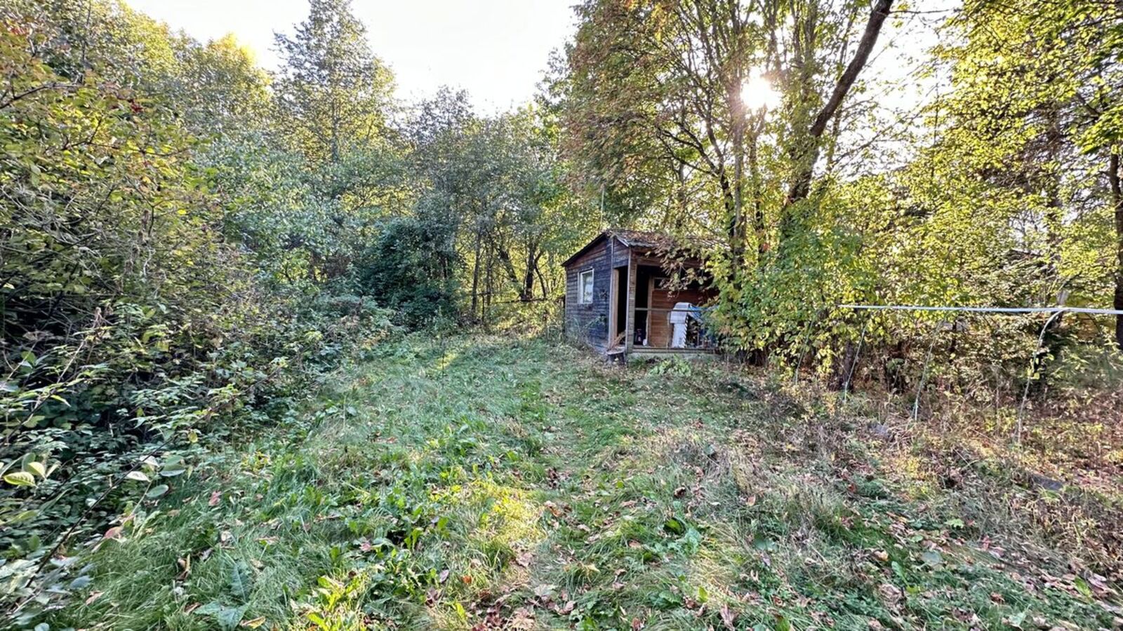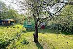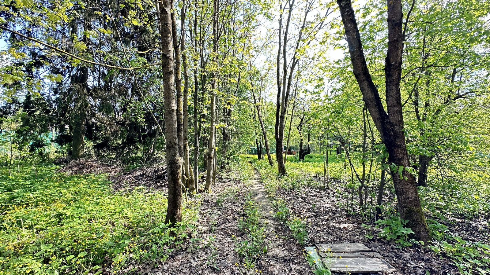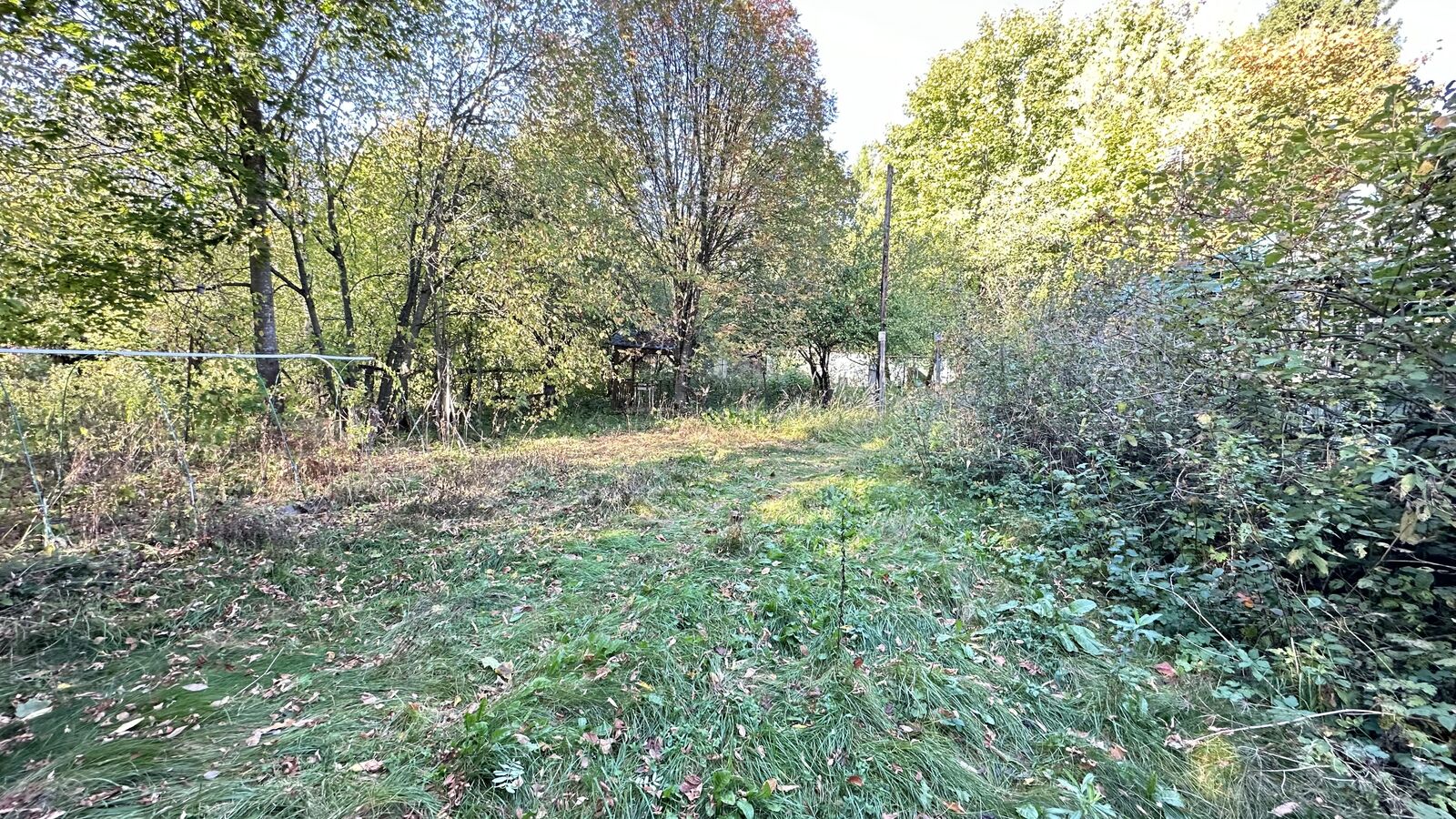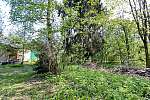 Участок отмежеван, прямоугольной формы, размером 48х43 м, ИЖС, огорожен забором. Также на участке яблони и взрослые лесные деревья.