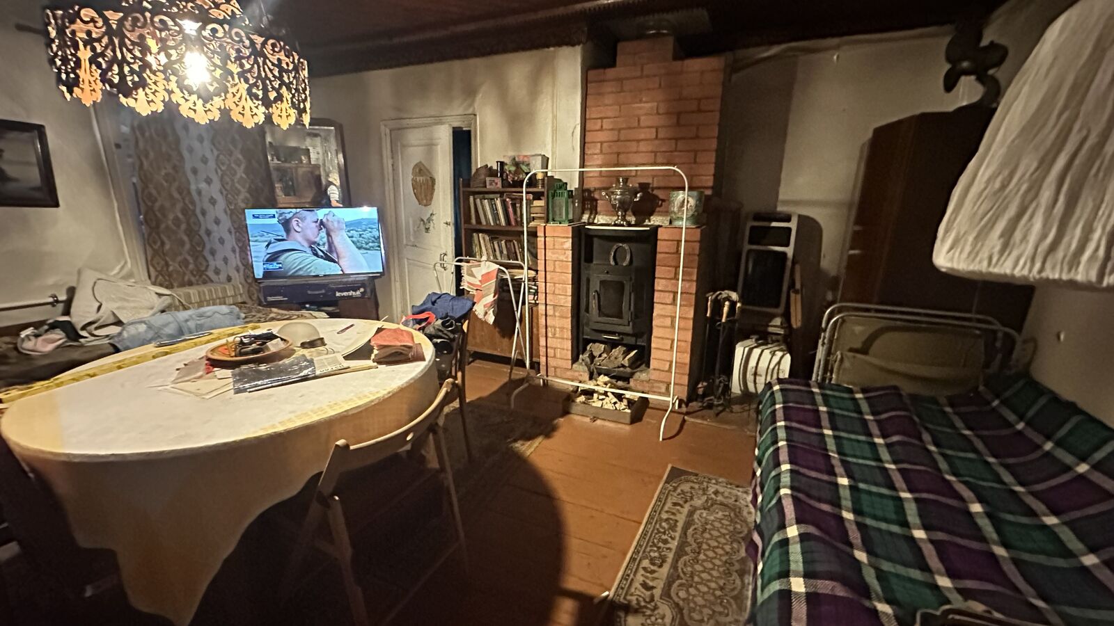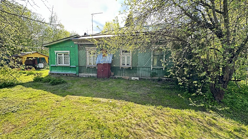 Дом 50-х г.п., бревенчатый, 73 кв.м., которая состоит из кухни и 5 небольших комнат. Отапливается печкой, подведено электричество и центральный водопровод, а газопровод рядом (возможно подключение).