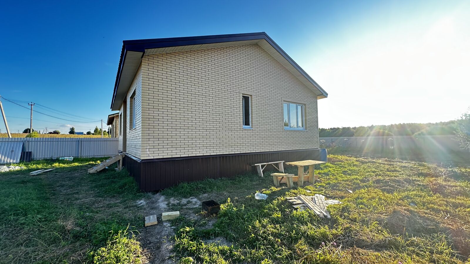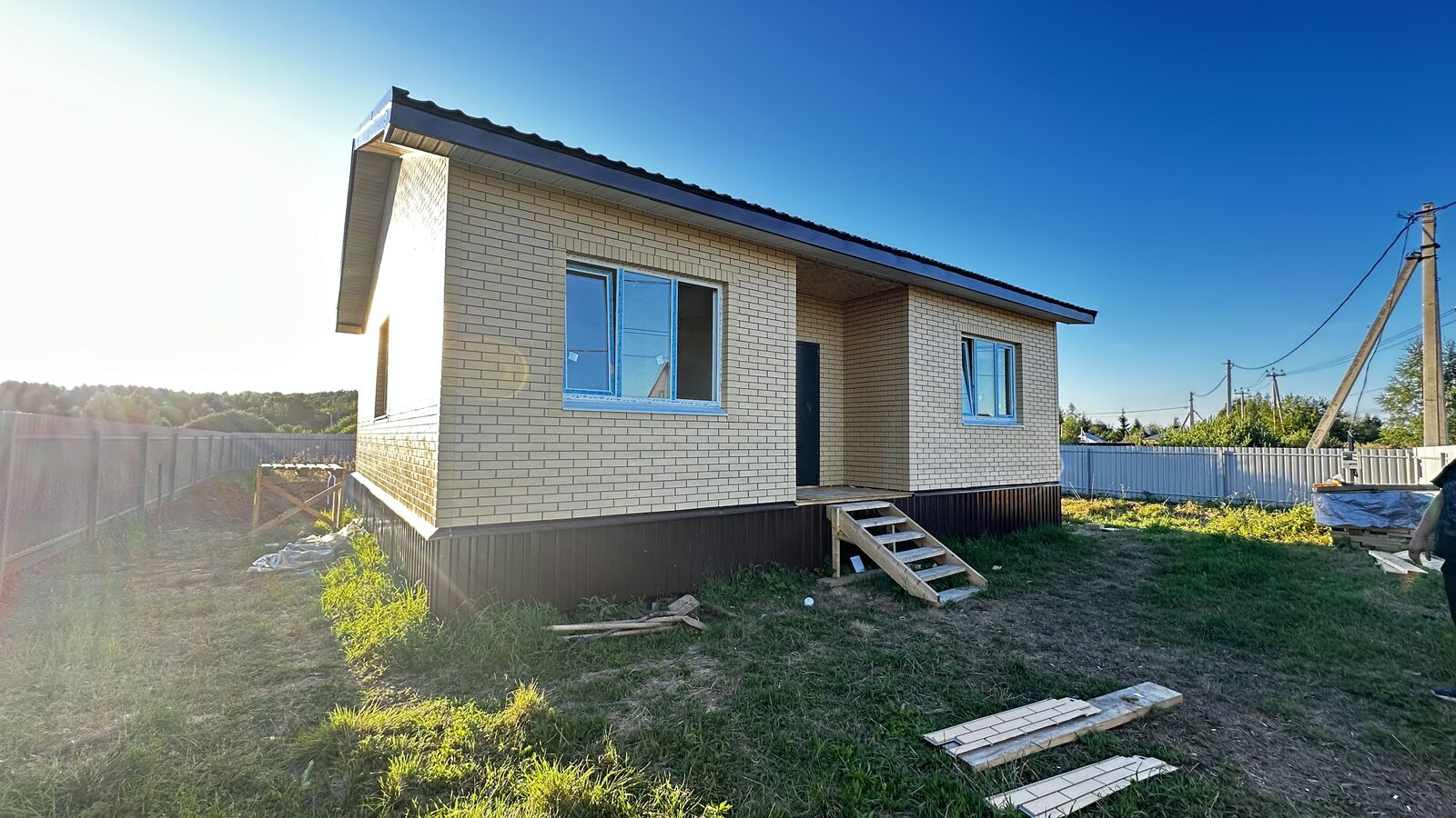 Снаружи дом обшит панелями под имитацию кирпича, внутри дом продаётся с отделкой: уложен ламинат, поклеены обои, натяжной потолок, установлены межкомнатные двери.