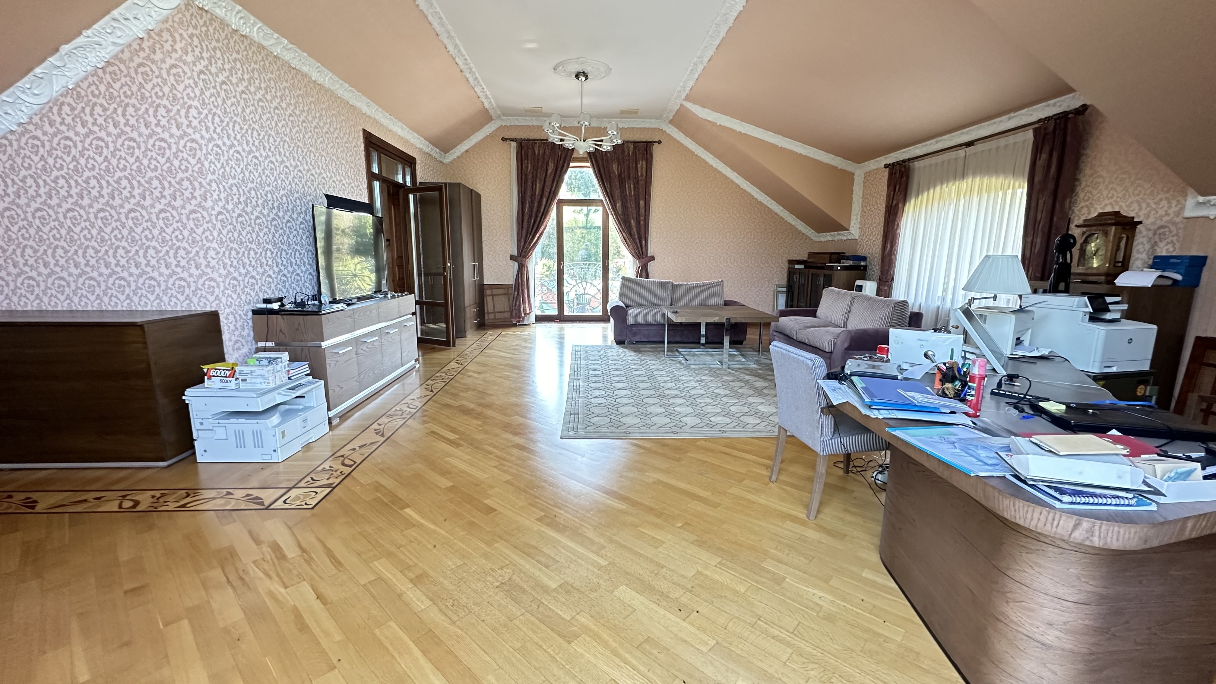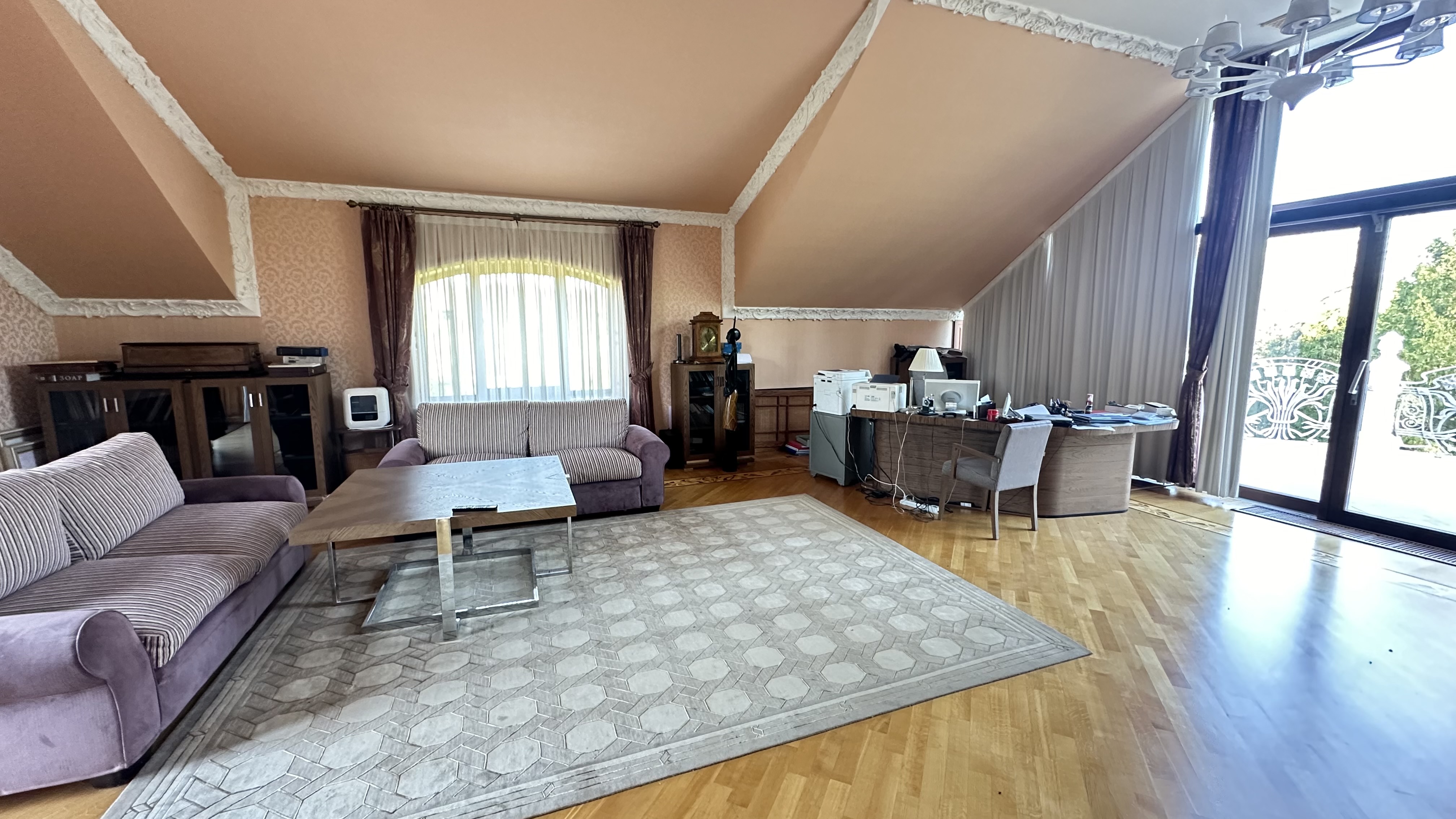 - 3-х уровневый кирпичный дом, 1993 г.п., общей площадью 400 кв.м.. По планировке: котельная на цокольном этаже; спортзал с бассейном, с/у с душевой и солярием на первом этаже; столовая с балконом, с/у, мастер-спальня с гардеробной и с/у на 2-м этаже; на 3-м этаже: просторный кабинет с панорамными окнами, балконом и большой открытой террасой;