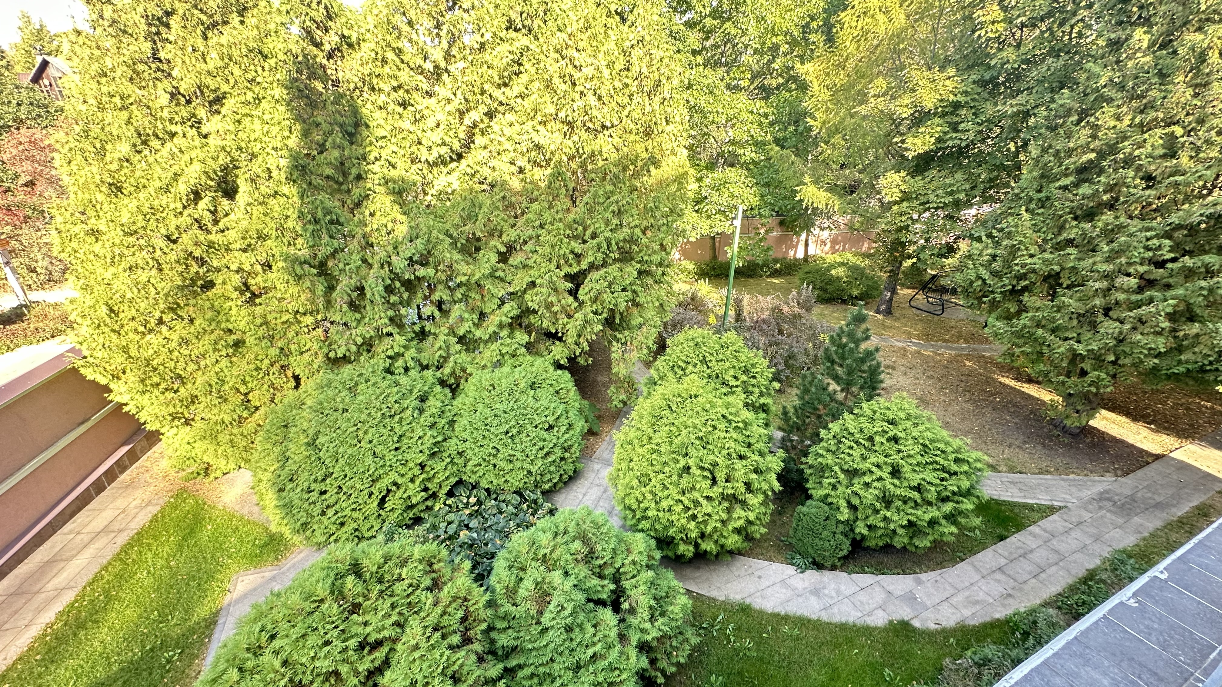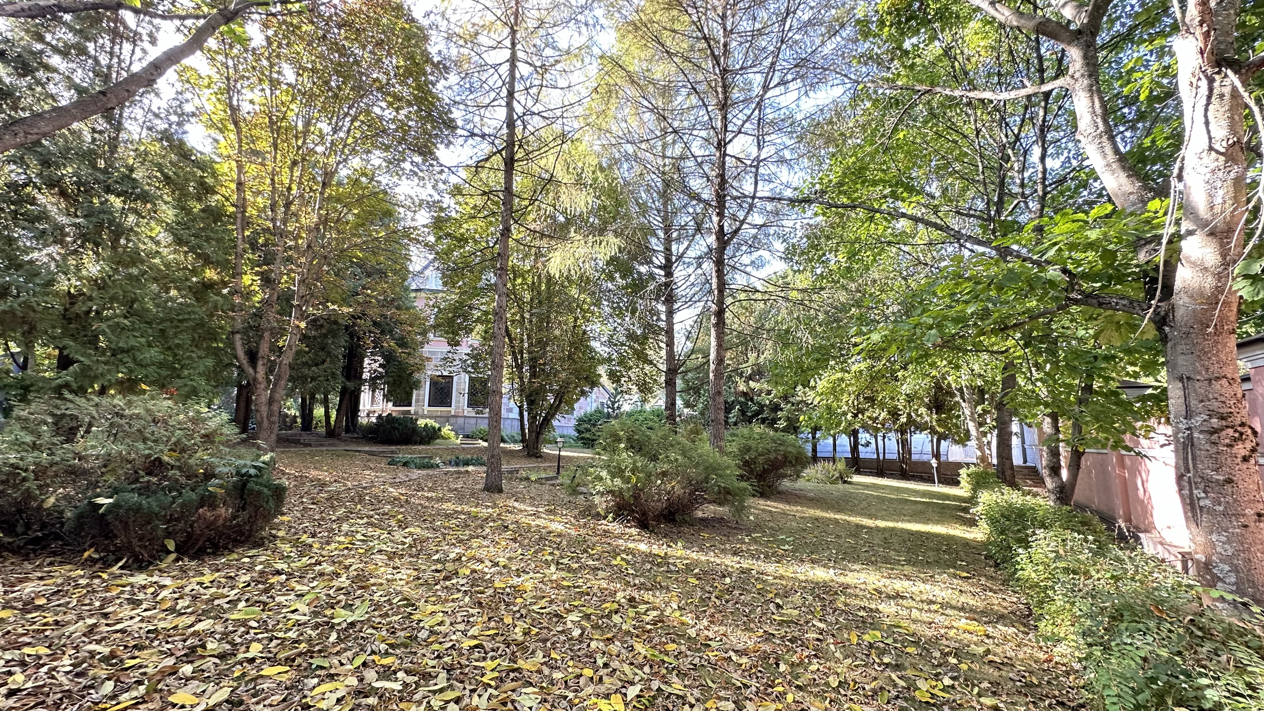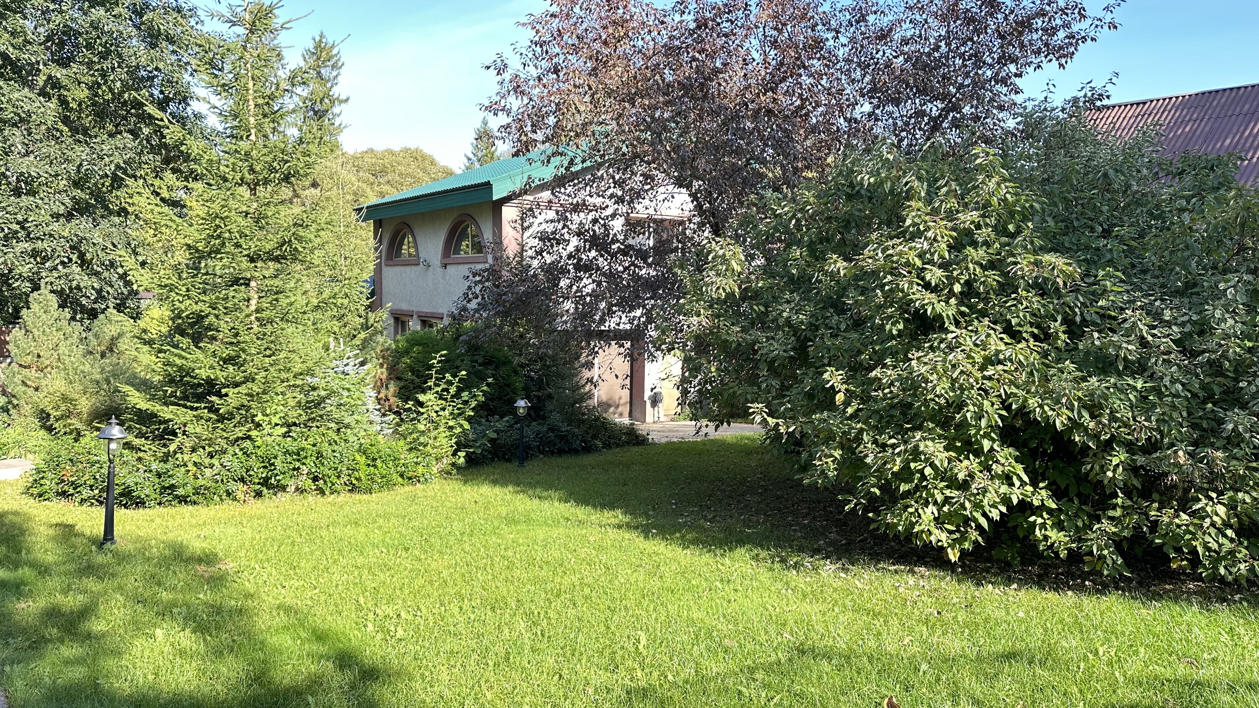 Участок прямоугольной формы, по документам состоит из 2-х (12 и 18 соток), с взрослыми лесными деревьями, ухожен, сухой, светлый и огорожен сплошным каменным забором с автоматическими воротами.
