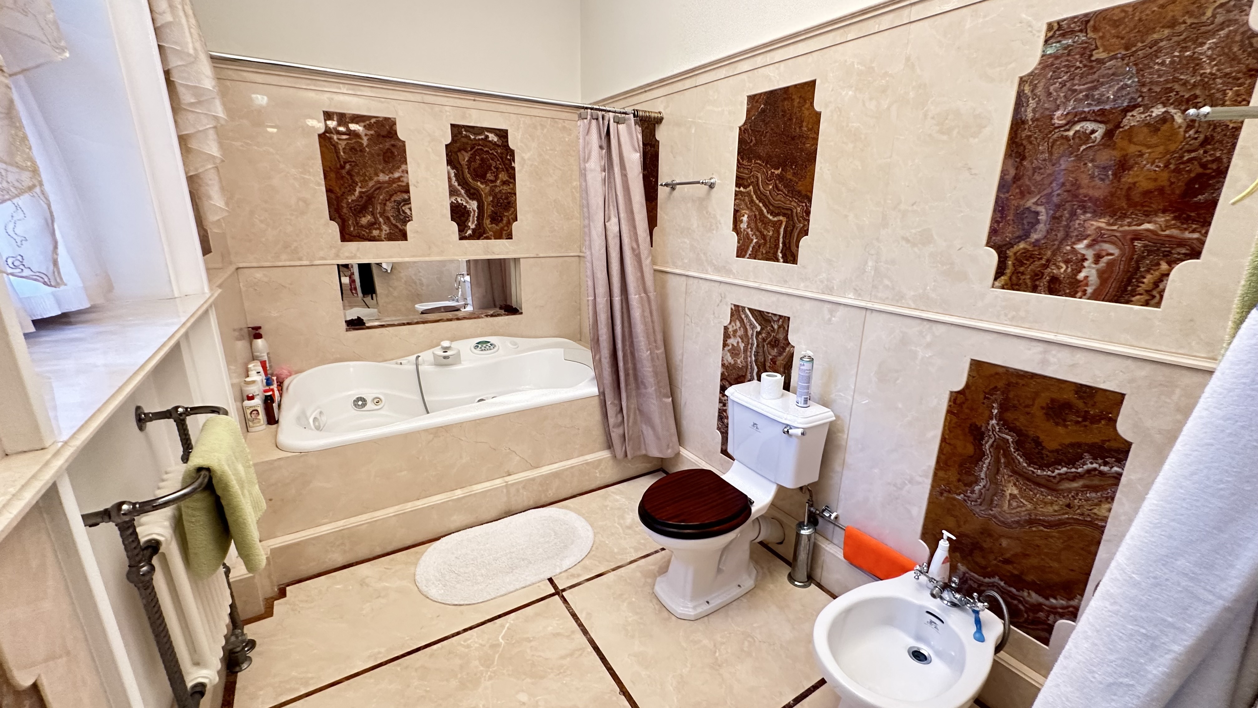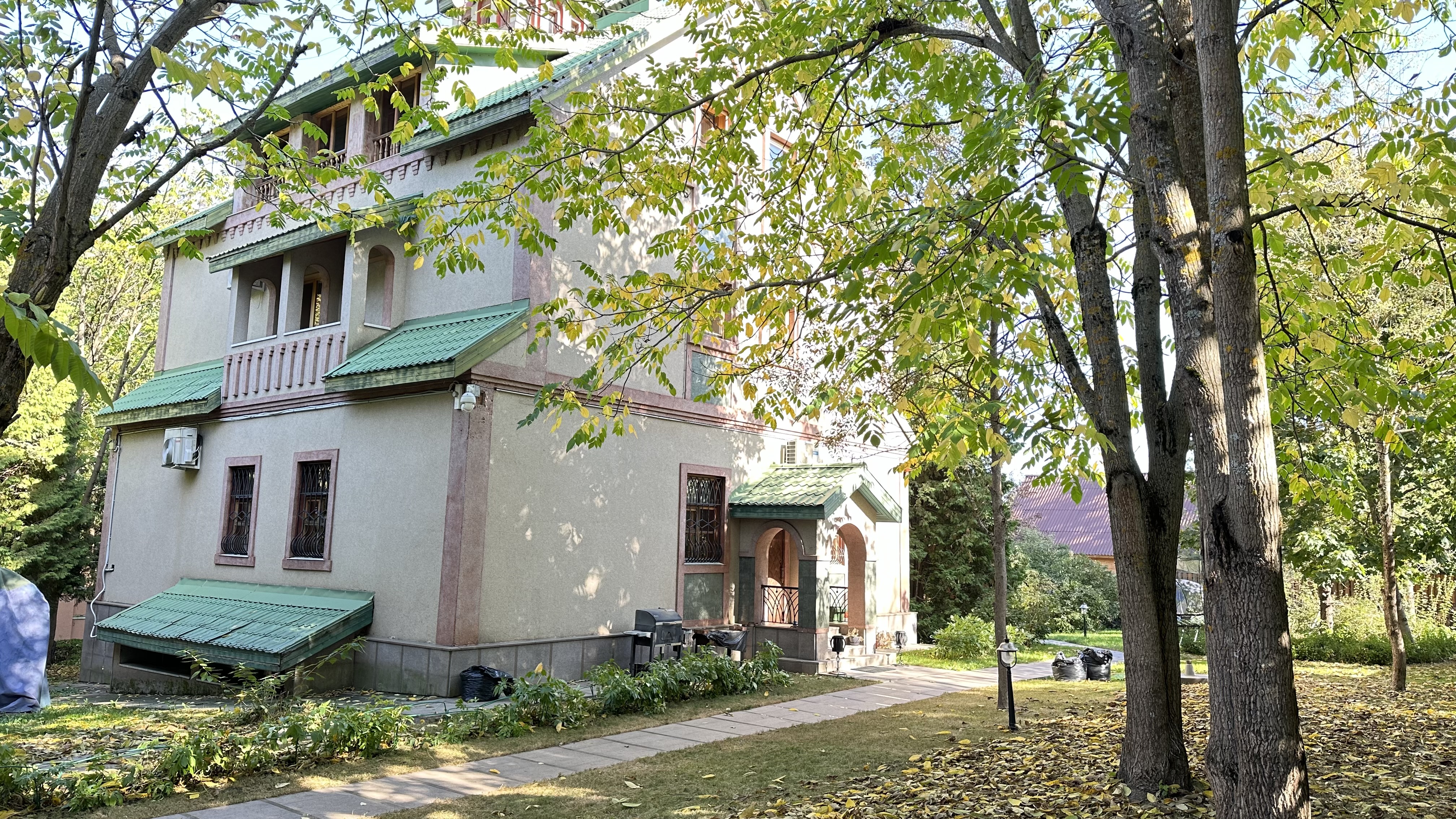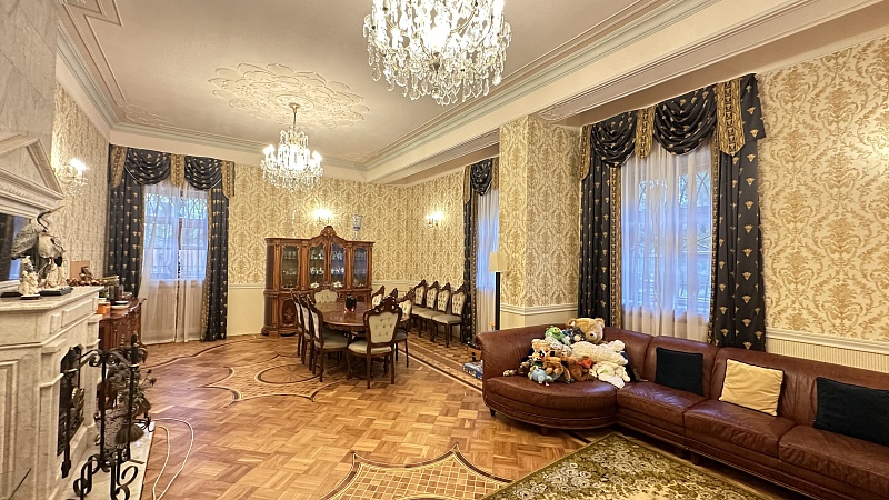 - 3-х уровневый кирпичный дом, 1995 г.п., общей площадью 408 кв.м.. Дом также с цокольным этажом, в нем баня с купелью, а также котельная. В доме 8 комнат (спальни, библиотека, кабинет), а также подсобные и с/у.
