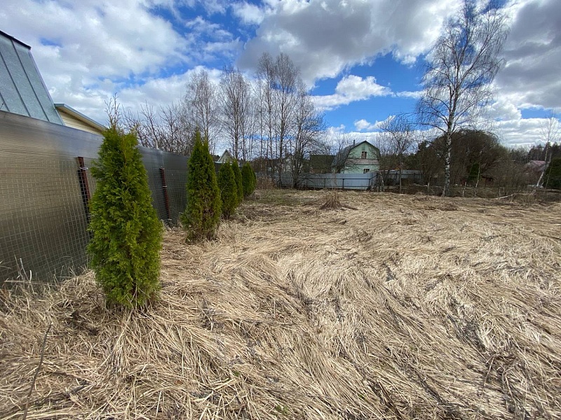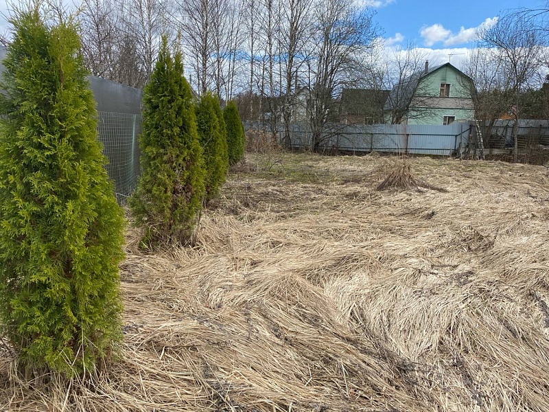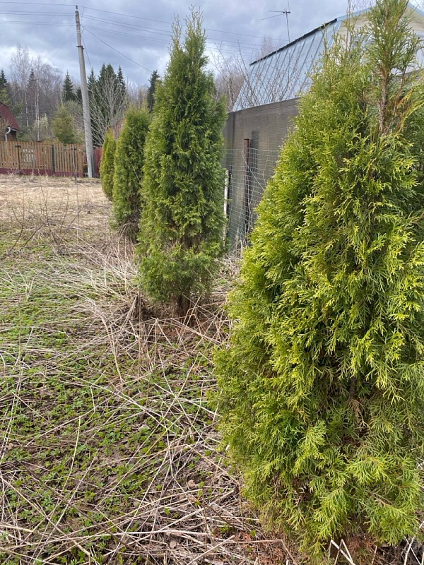 На участке высажены туи. Участок сухой и ровный. Сосед один.