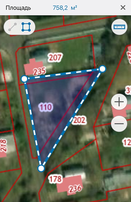 По фасаду есть забор и ворота. С длинной стороной треугольника граничит протока (удобно сделать водоотведение/ ливневку).